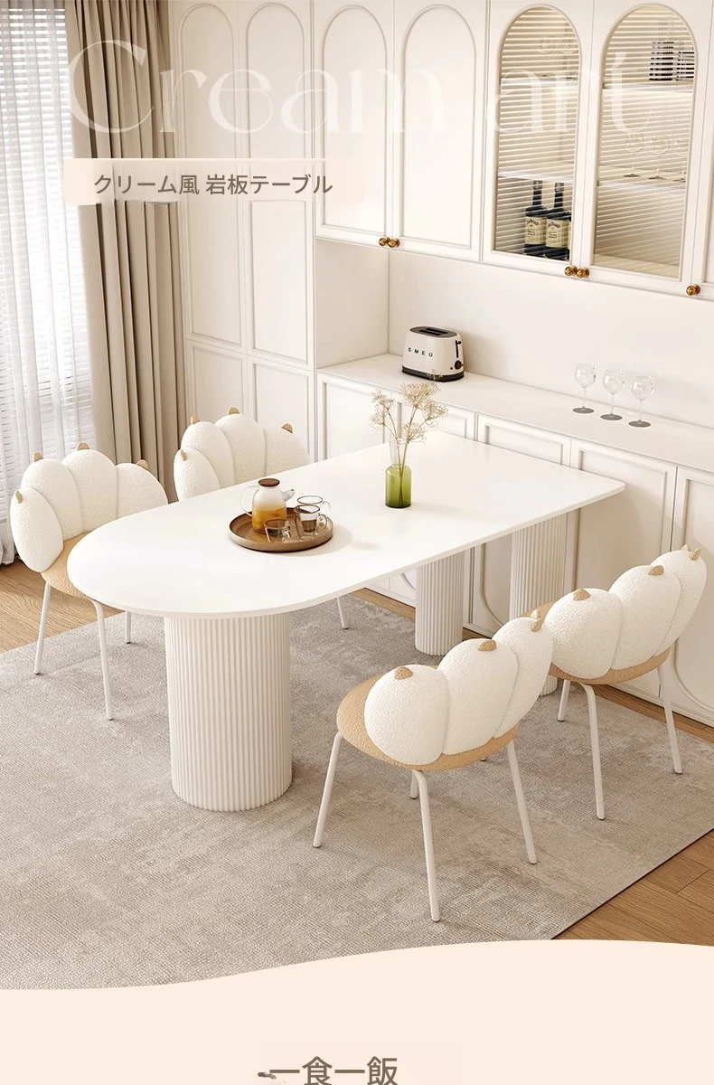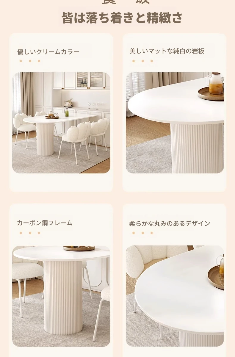 純白のストーンテーブル180cm+アイボリーキャットクロー椅子*4【回転不可】 アイボリーテーブル脚 純白のストーンテーブル180cm+アイボリーキャットクロー椅子*4【回転不可】 アイボリーテーブル脚