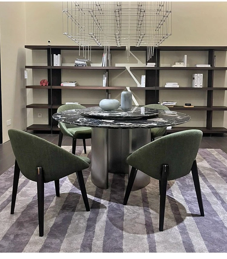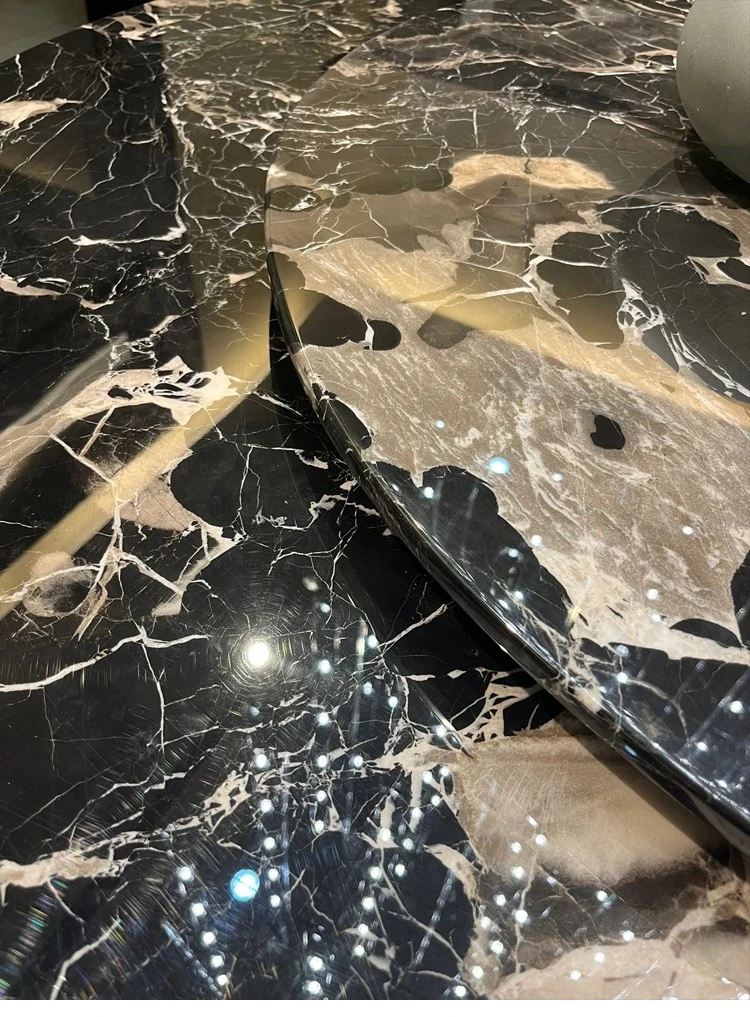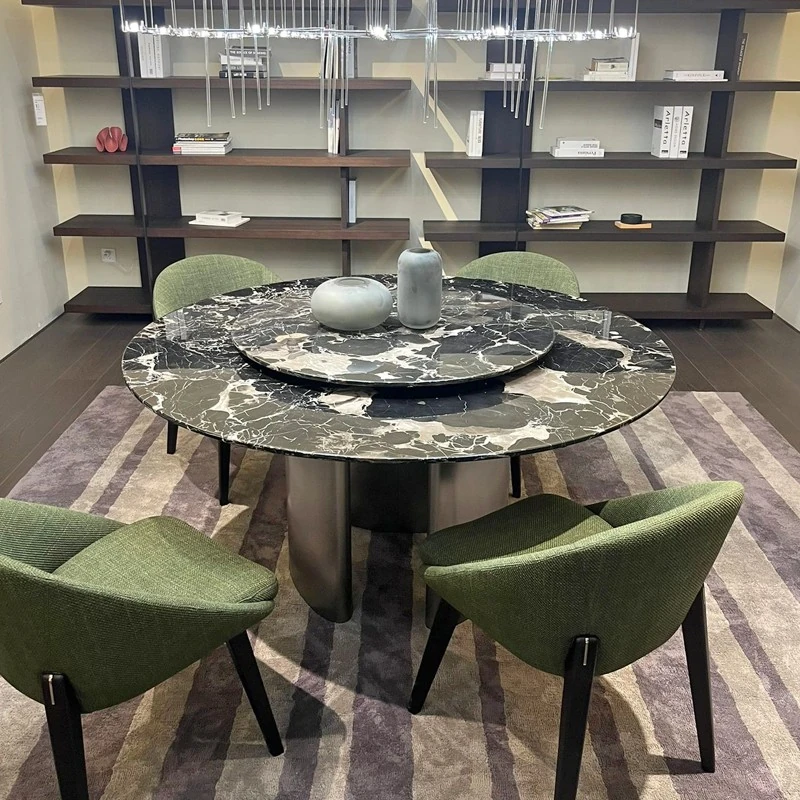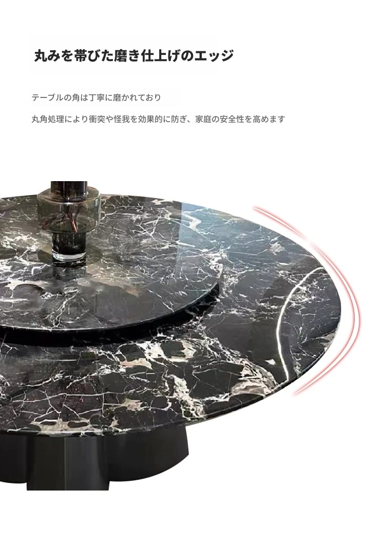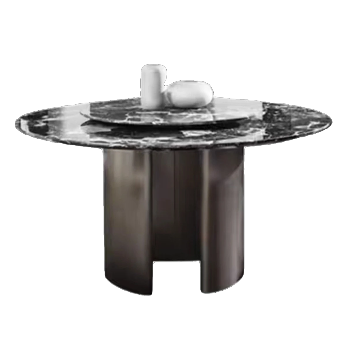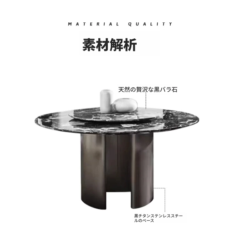 允馨高級イタリアンデザイン天然大理石ラウンドテーブル - ブラックローズ仕上げ、別荘や広々としたリビングにぴったり!贅沢な食事体験を提供する優雅な丸テーブルです。