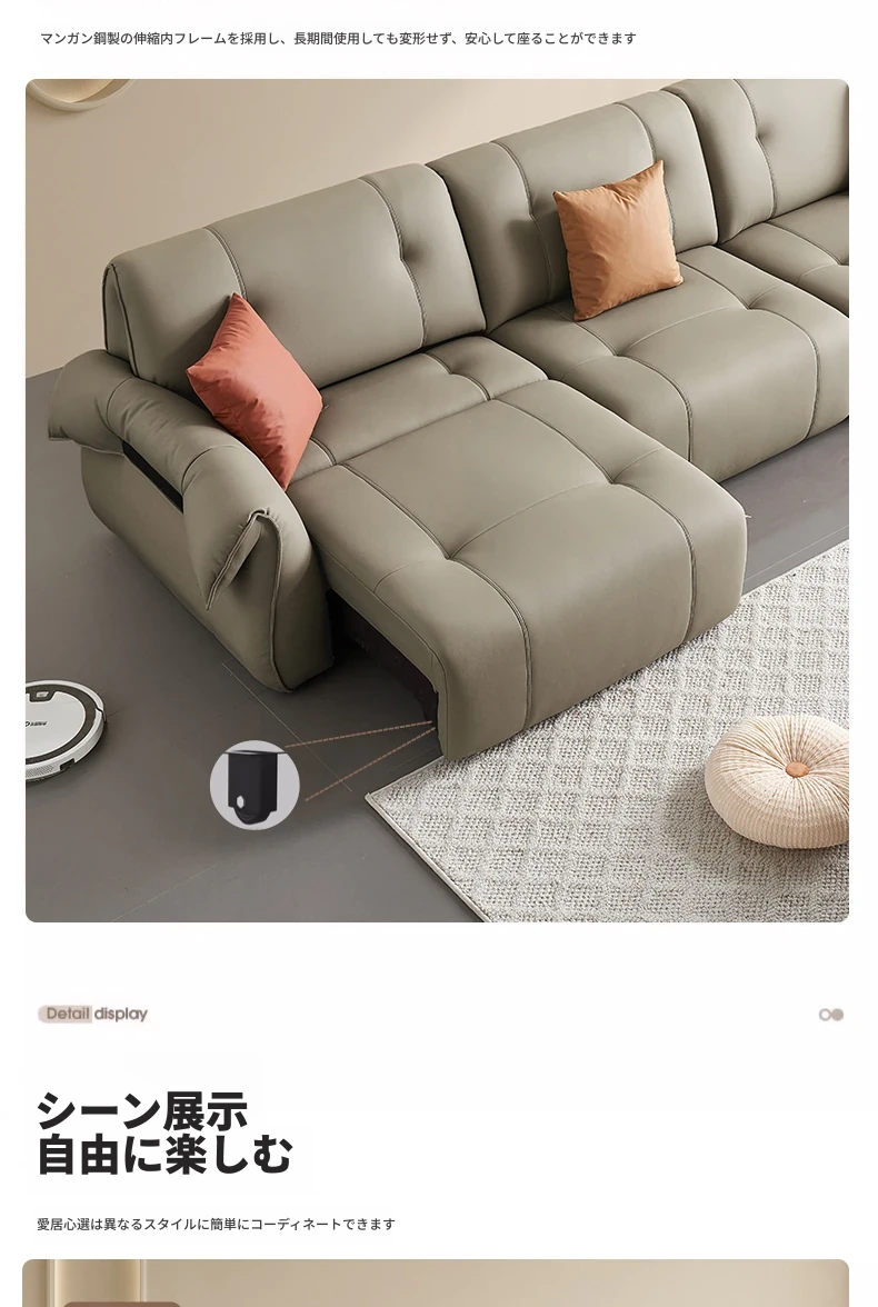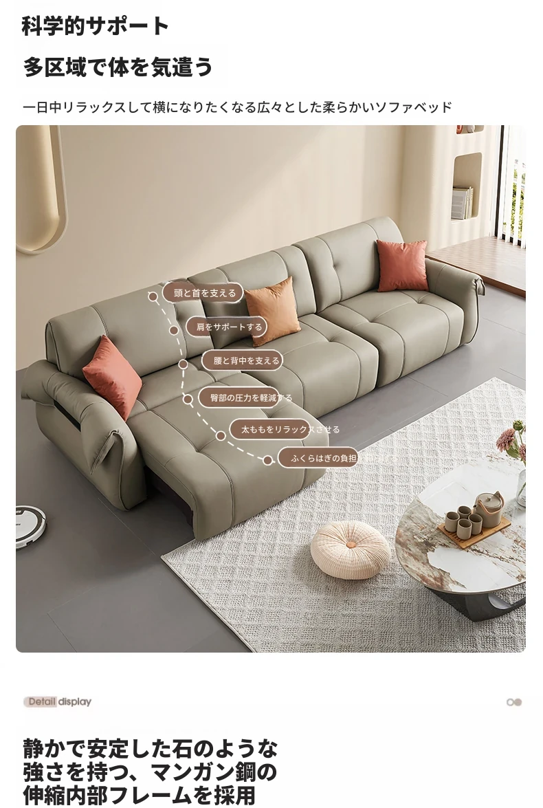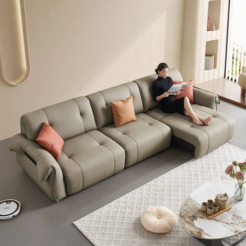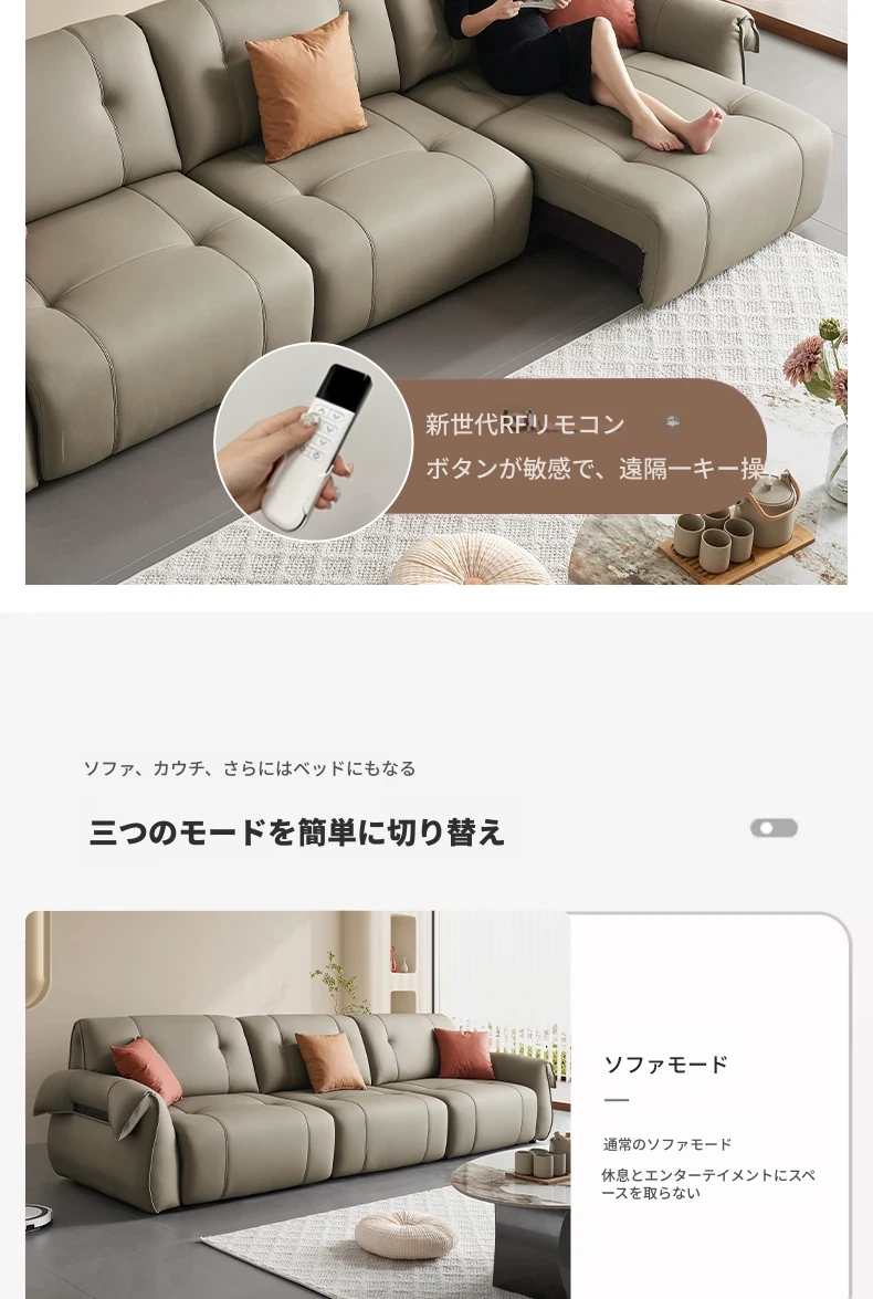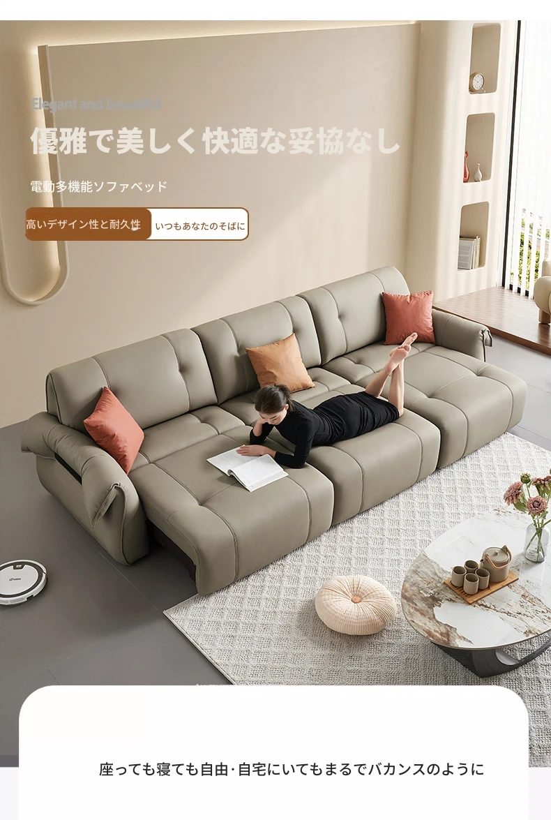 ユーフェイ イタリアンミニマリズム 高級本革 全電動 多機能2WAYソファベッド 小戸型向け 家庭用 スマートソファ - スペースを有効活用し、快適なリラックスタイムを実現!