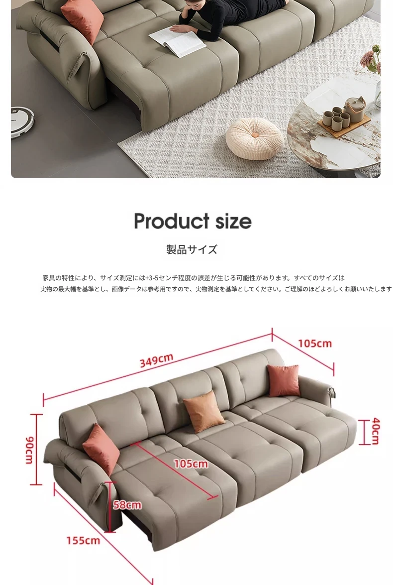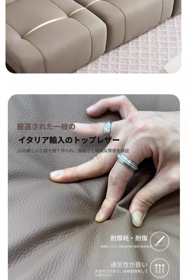 大三人掛け3.49メートル【イタリア製ボッゲン牛革+50D高反発ウレタン】全電動