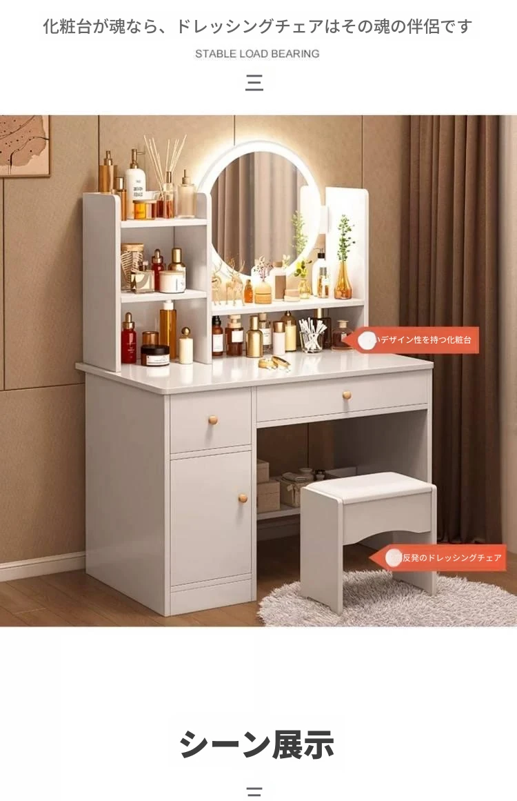 高級感漂う化粧椅子 - 女性にぴったりの軽やかさ!主寝室や宿舎に最適な美容・ネイル用のスタイリッシュな化粧台用スツール。あなたの美の時間を特別に演出します!