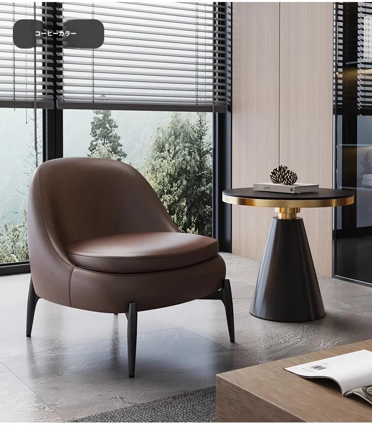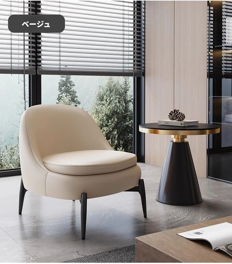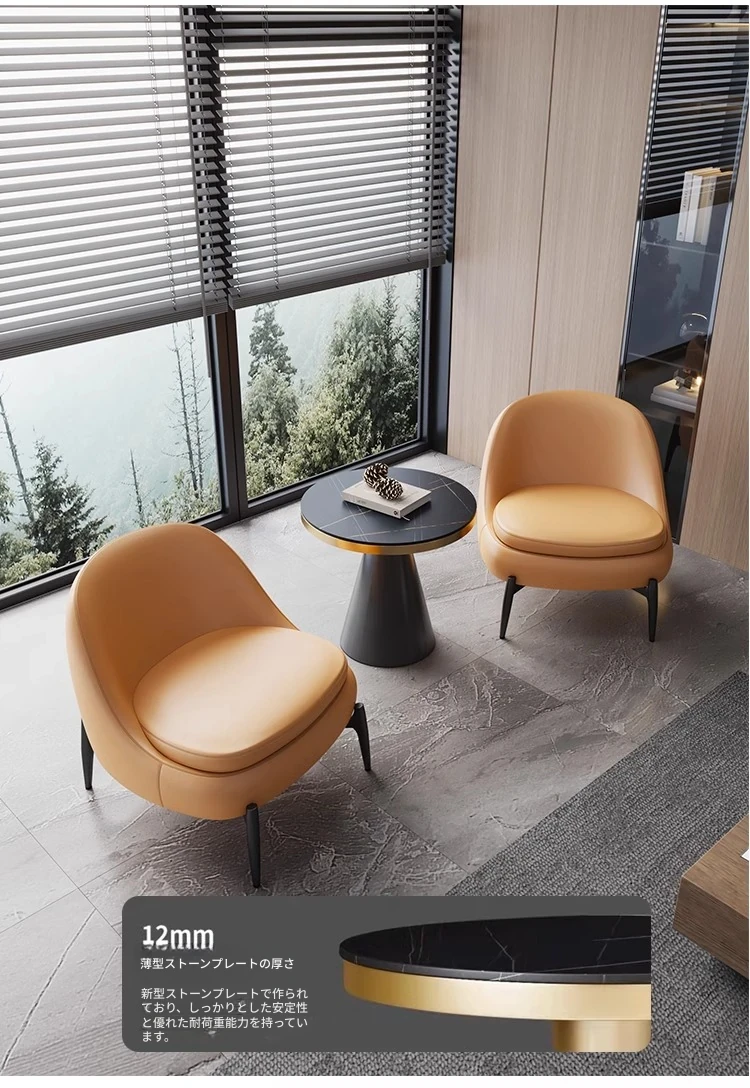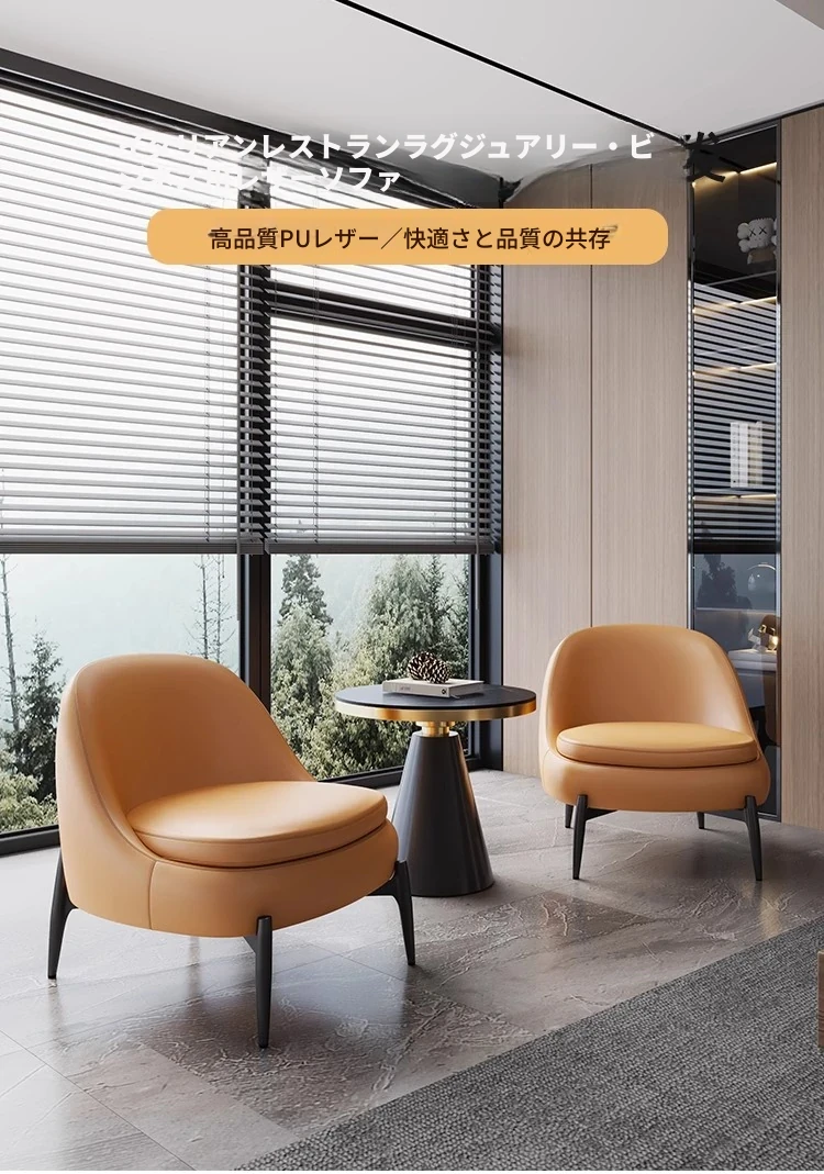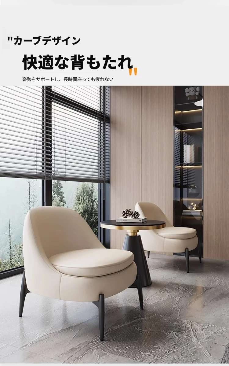 オーガニックデザインのシンプルで高級感あふれる一人掛けソファ&コーヒーテーブルセット - リラックスできるホテルロビーや販売オフィスの接客スペースに最適!