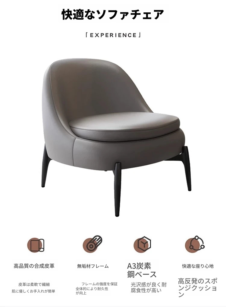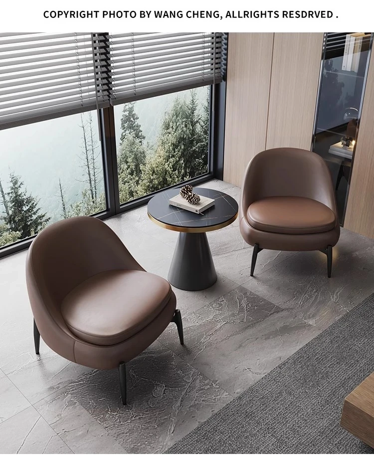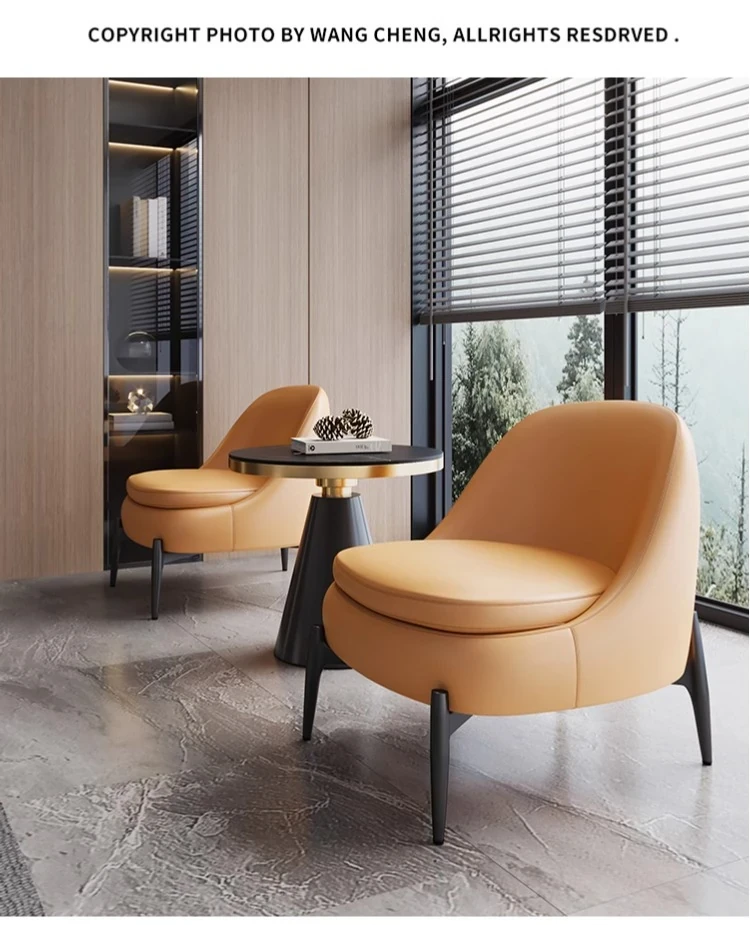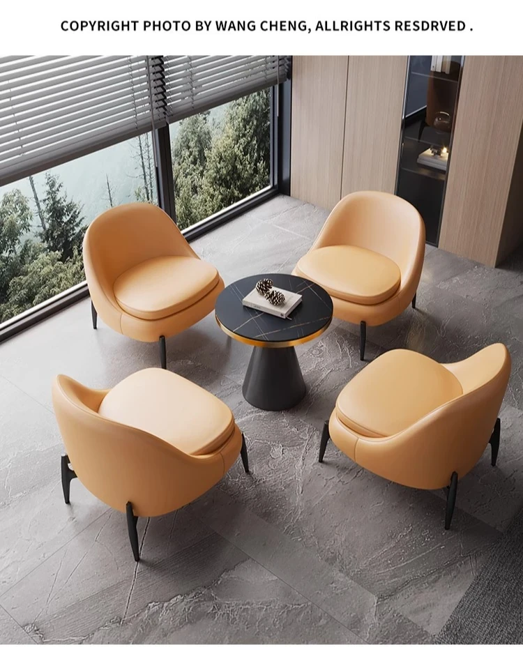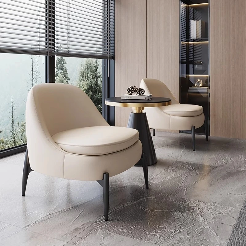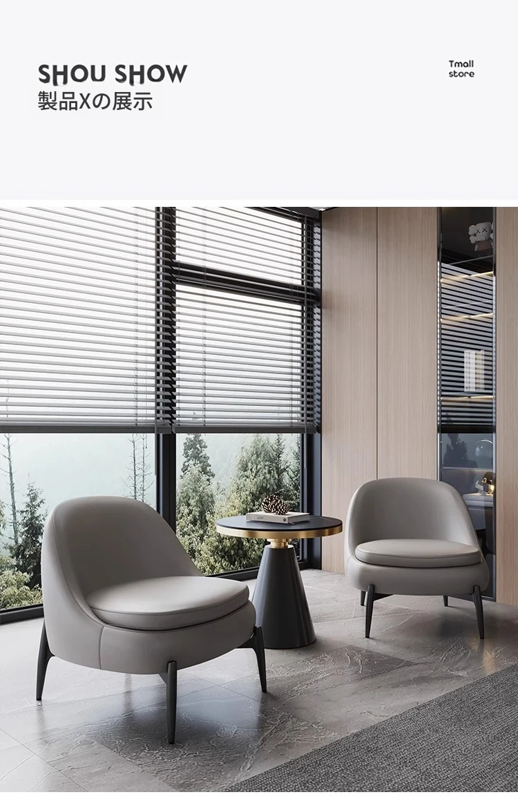 オーガニックデザインのシンプルで高級感あふれる一人掛けソファ&コーヒーテーブルセット - リラックスできるホテルロビーや販売オフィスの接客スペースに最適!