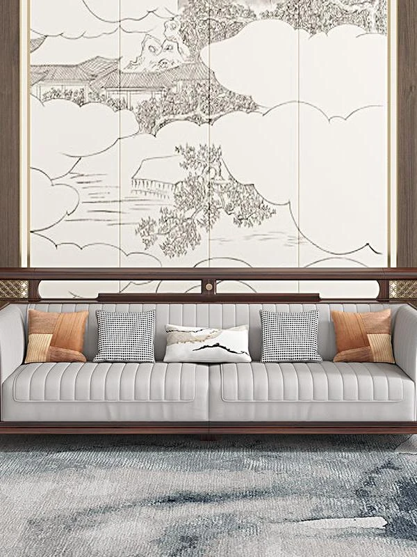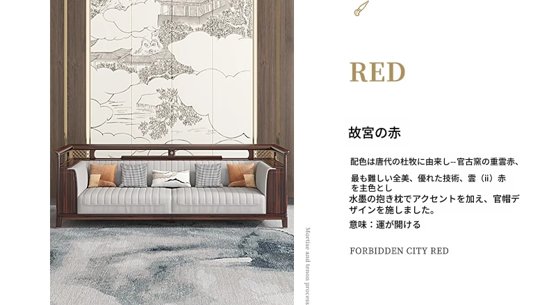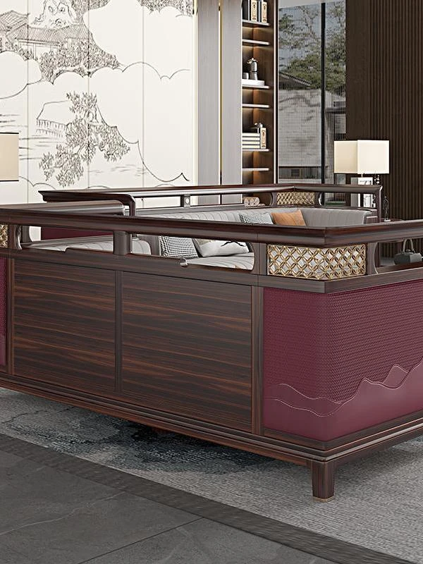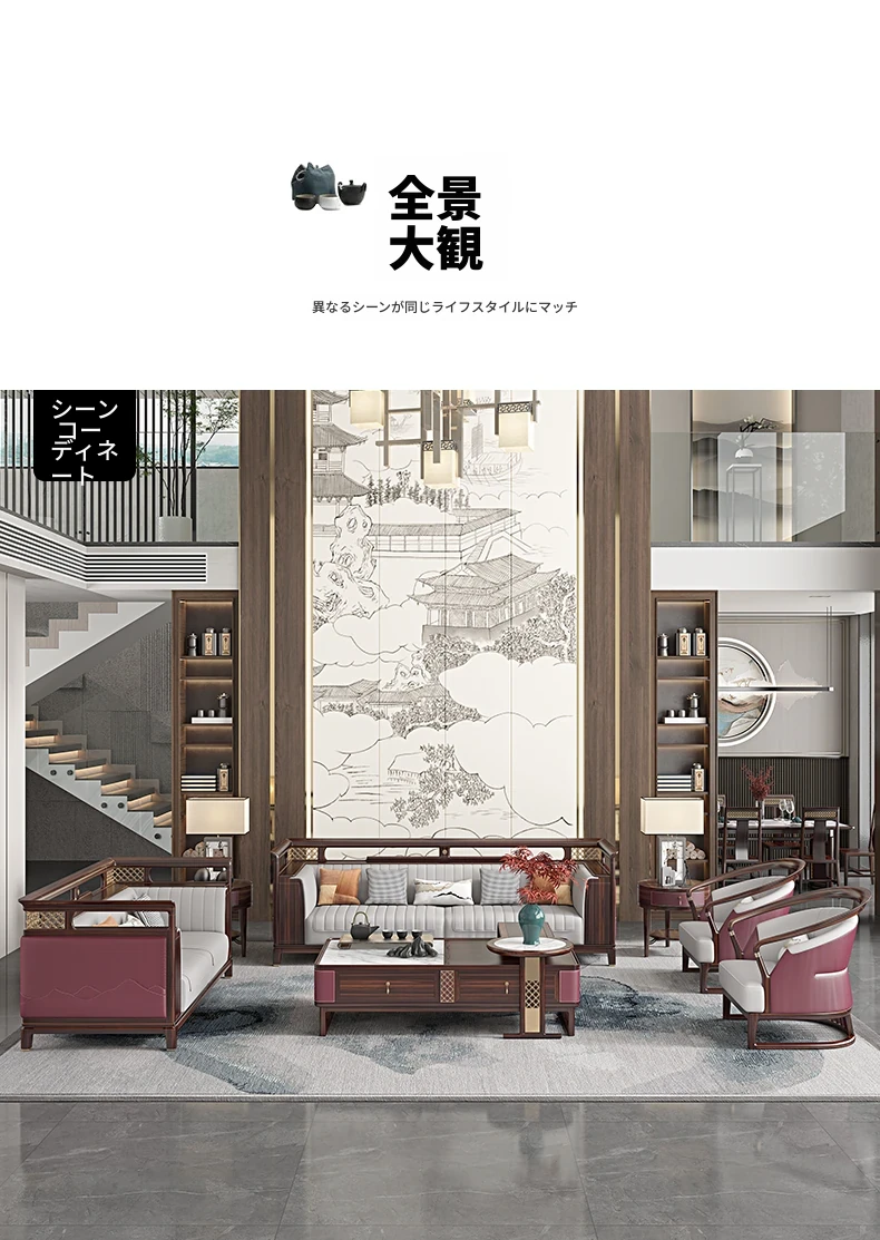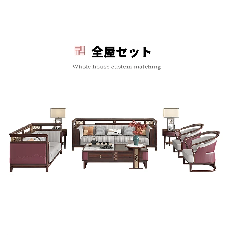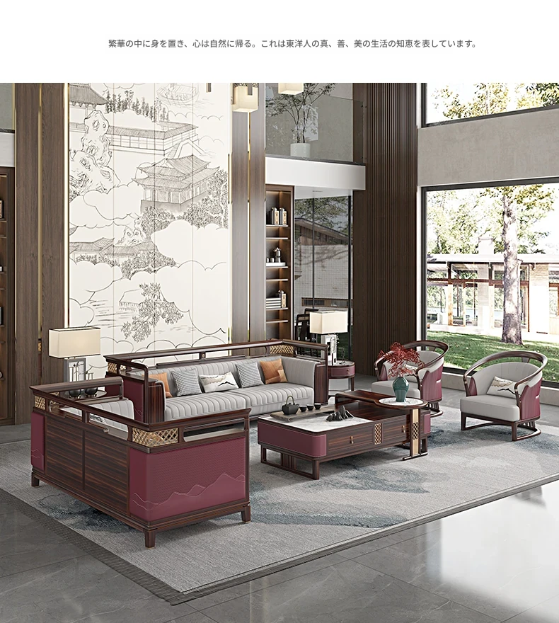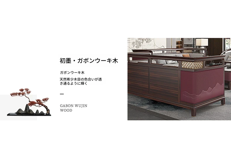 新中式デザインのウッディソファ - 高級感あふれるウコン材使用、リビングや別荘に最適な収納付きコンビネーションソファ。源泉工場直販でお得!