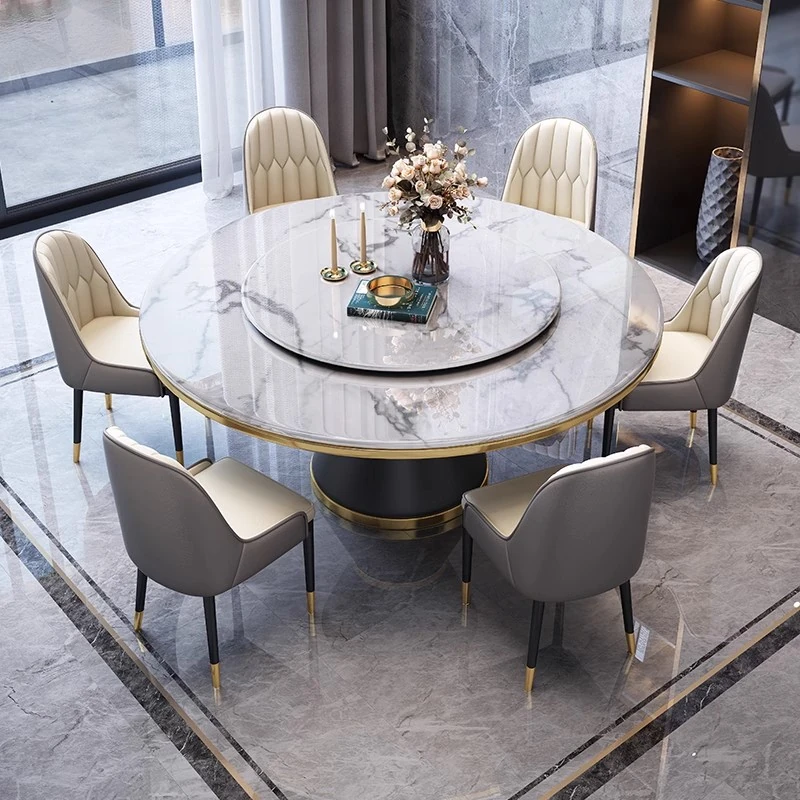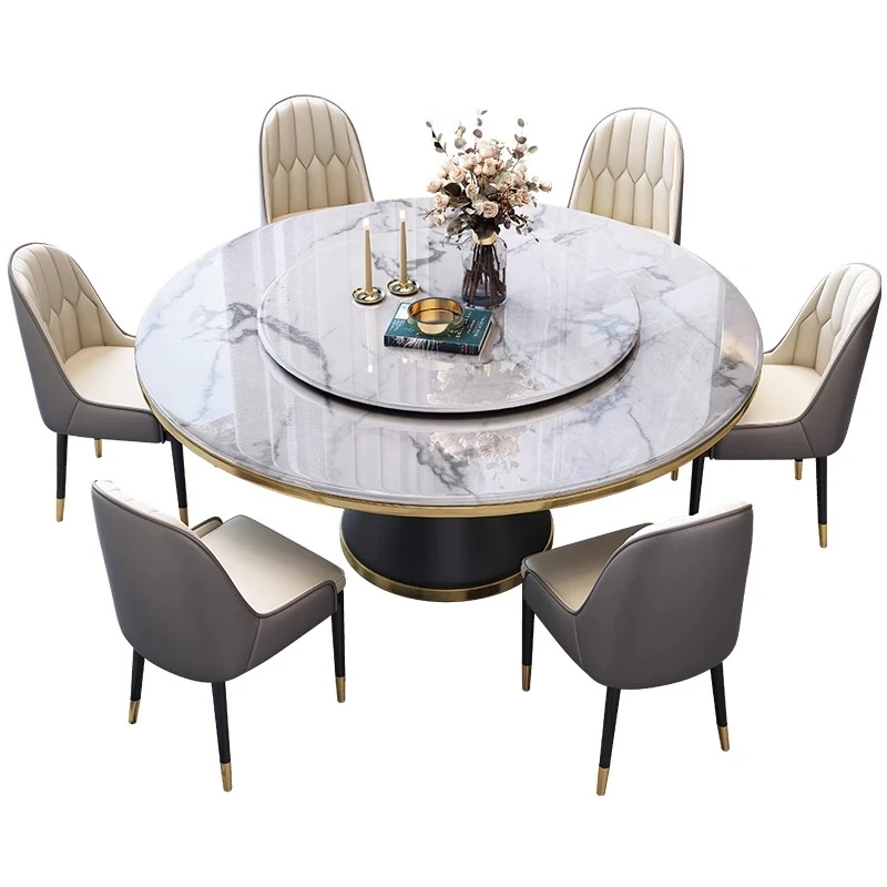【1.2メートル一卓六椅-岩板】回転台付き 【1.2メートル一卓六椅-岩板】回転台付き