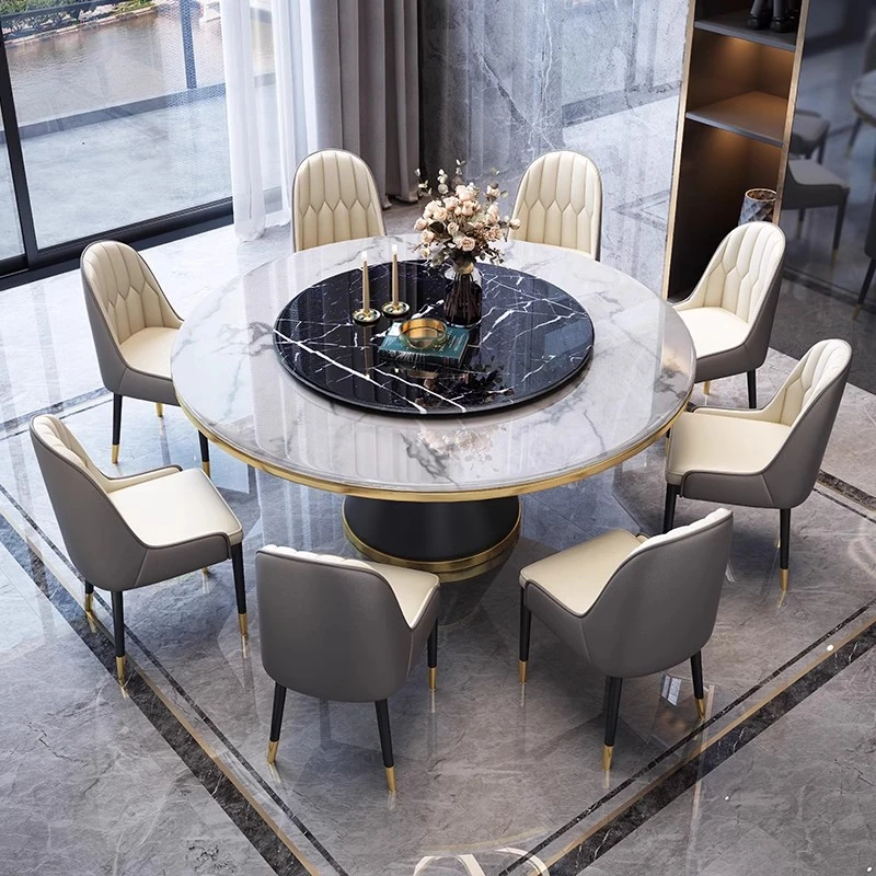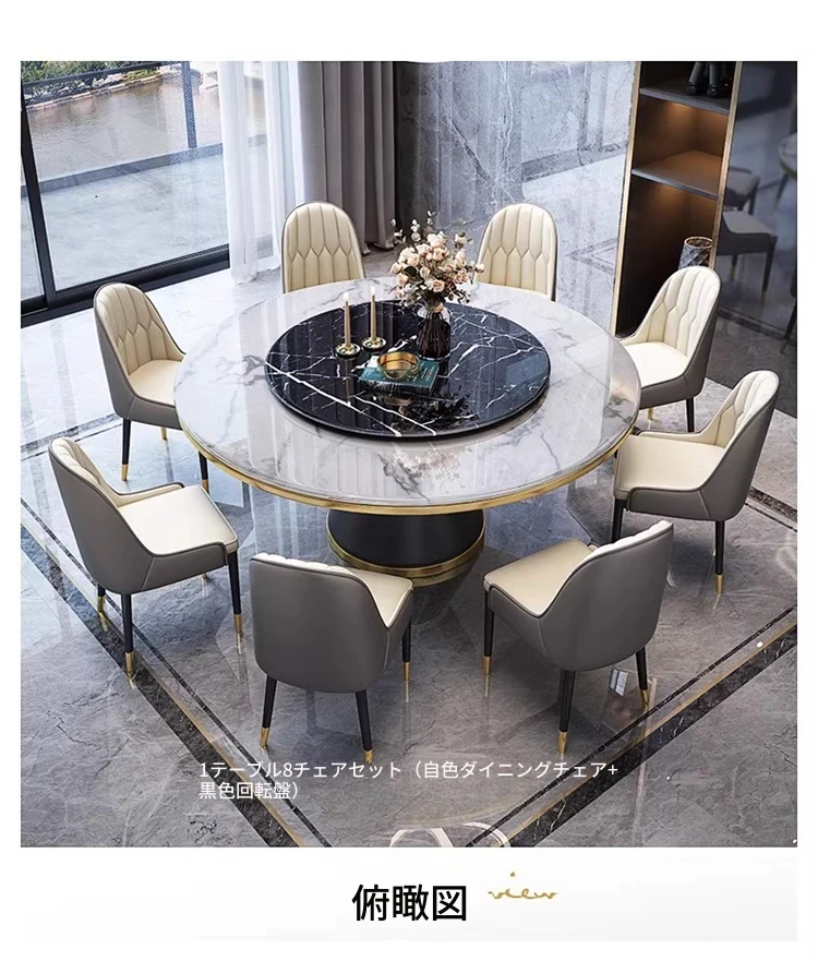 【1.5メートル一卓八椅-大理石】回転台付き 【1.5メートル一卓八椅-大理石】回転台付き