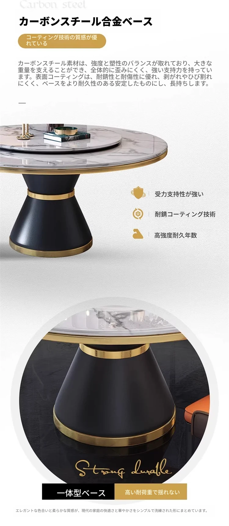 【1.2メートル単独食卓-岩板】回転台付き 【1.2メートル単独食卓-岩板】回転台付き