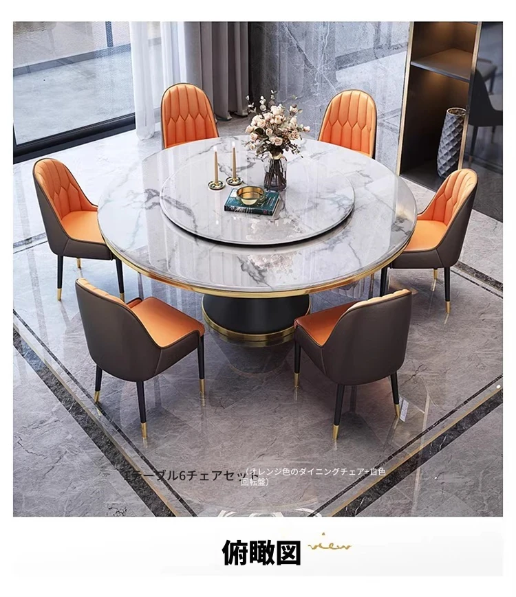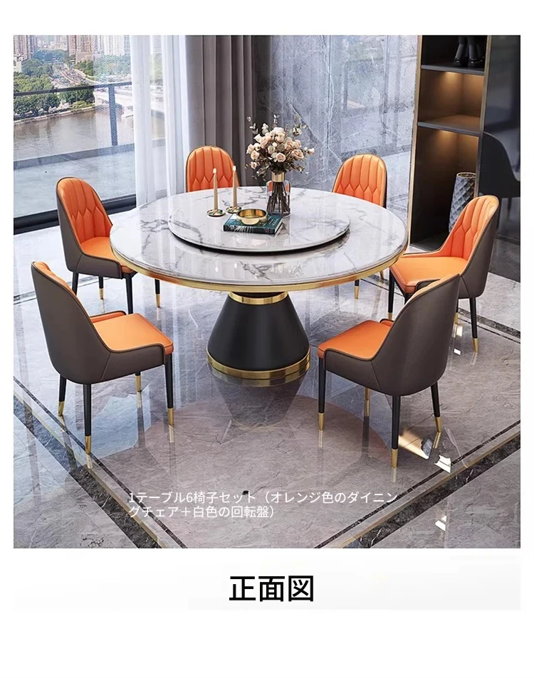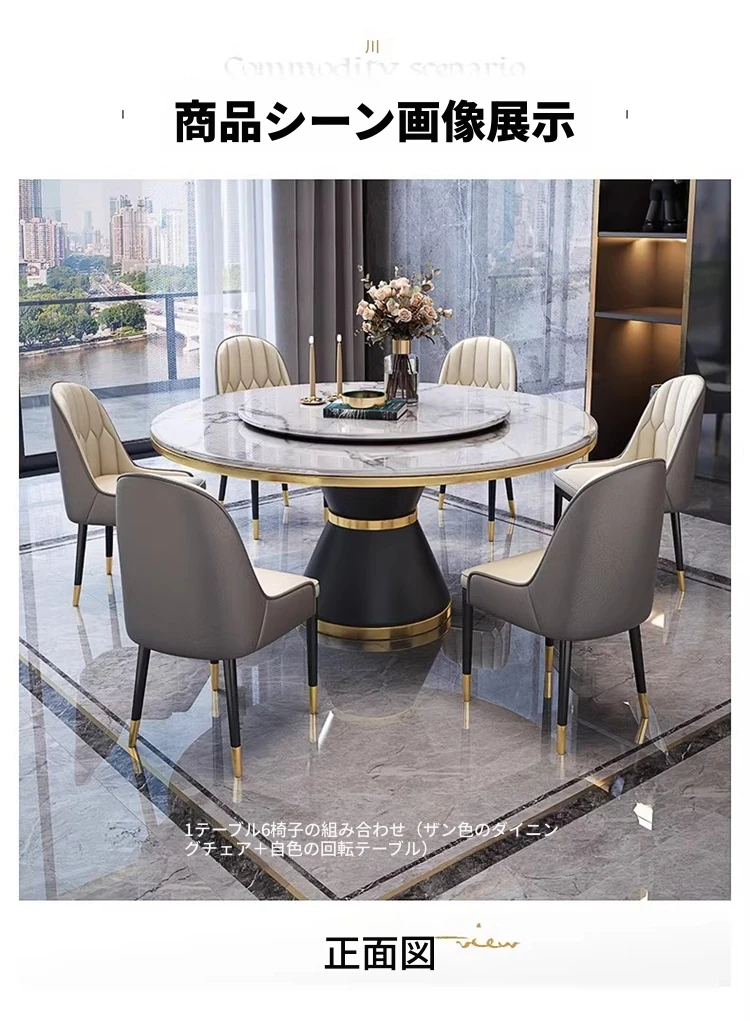 【1.5メートル一卓六椅-大理石】回転台付き 【1.5メートル一卓六椅-大理石】回転台付き