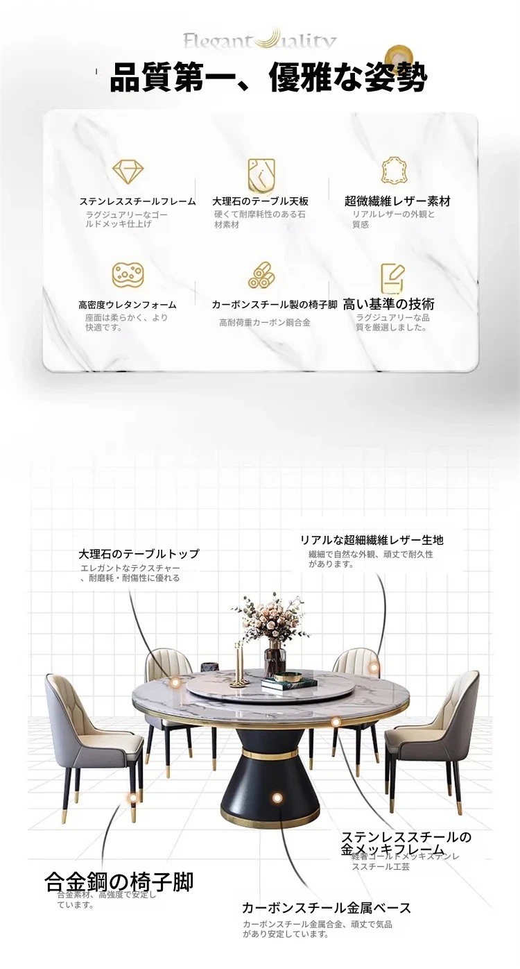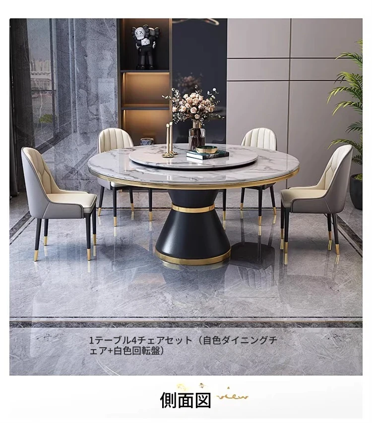 【1.5メートル一卓四椅-大理石】回転台付き 【1.5メートル一卓四椅-大理石】回転台付き