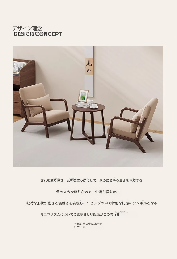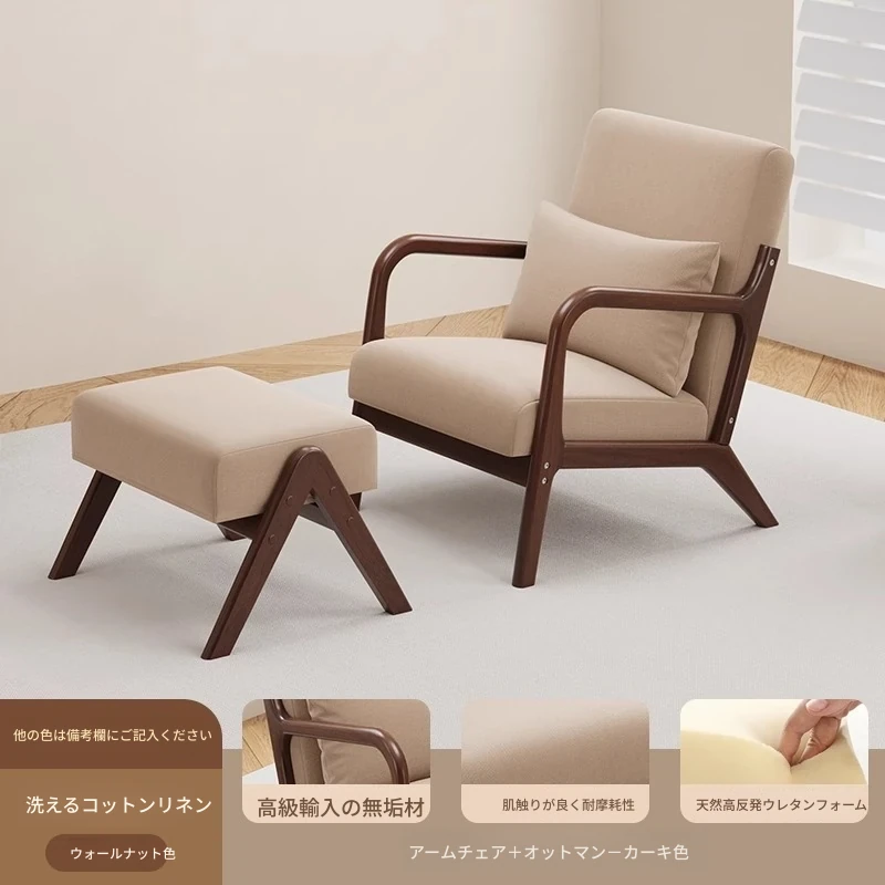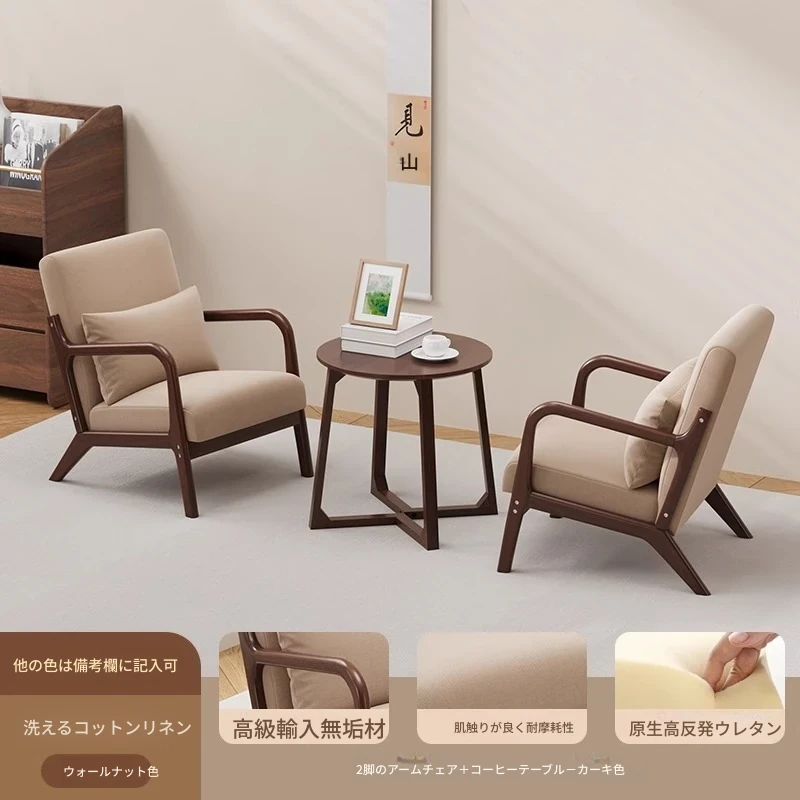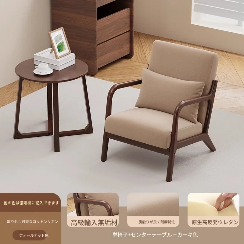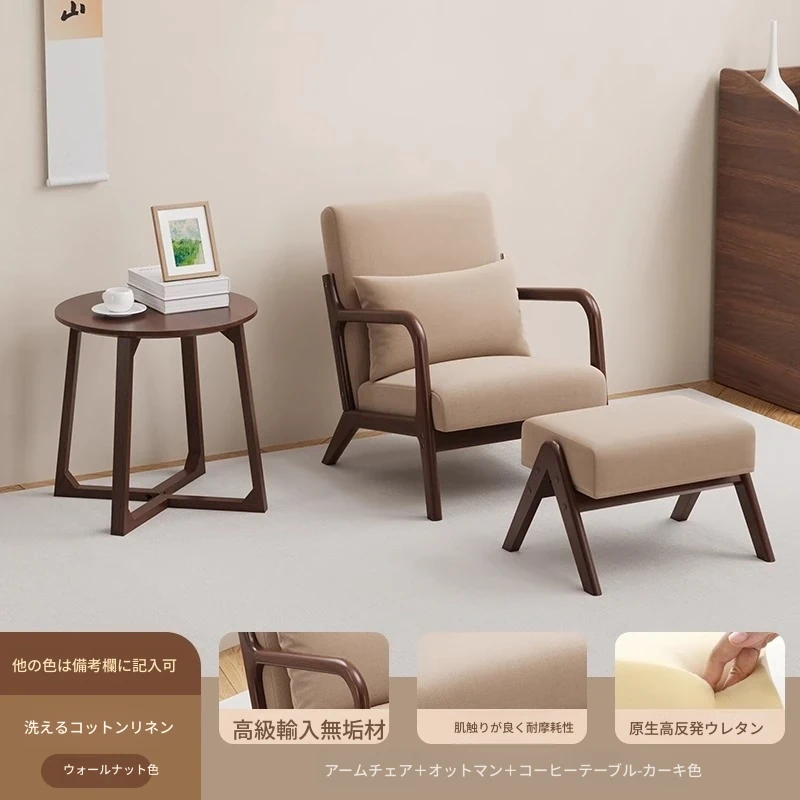 クルミカーキコットンリネン1人用+コーヒーテーブル+オットマン