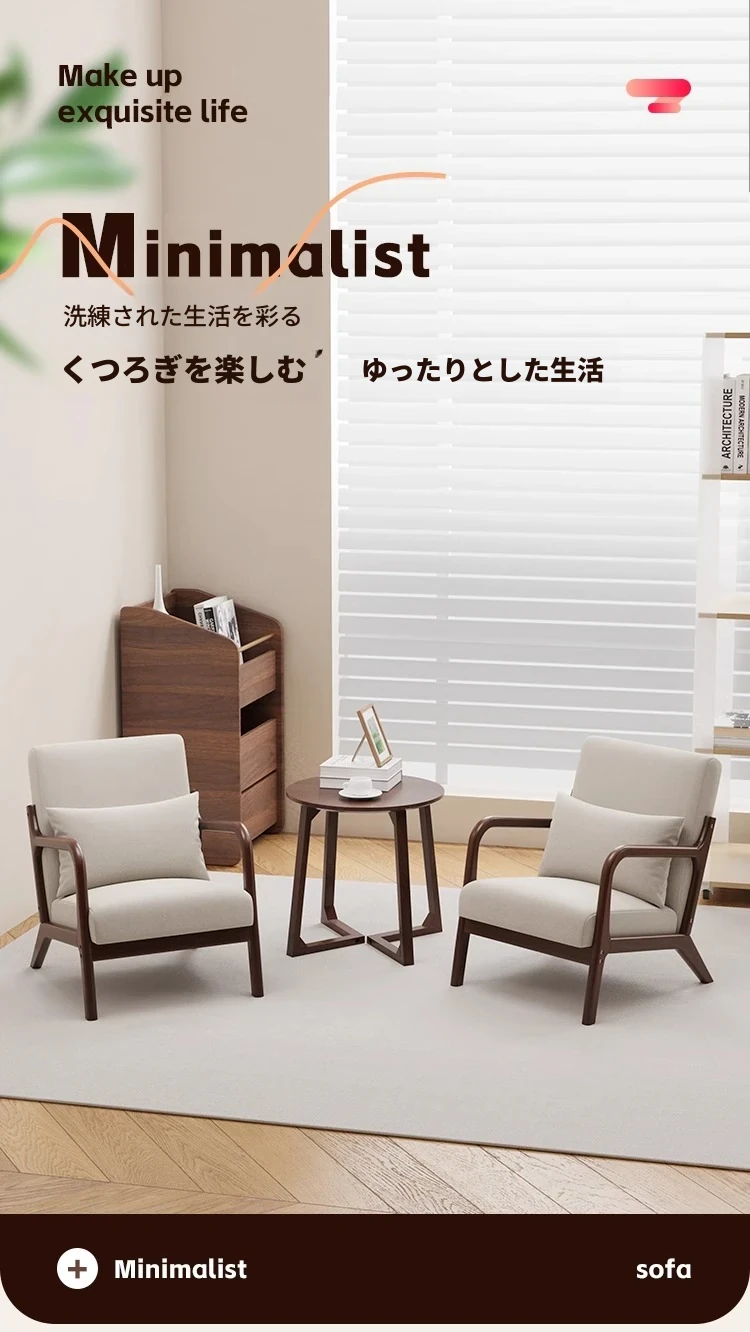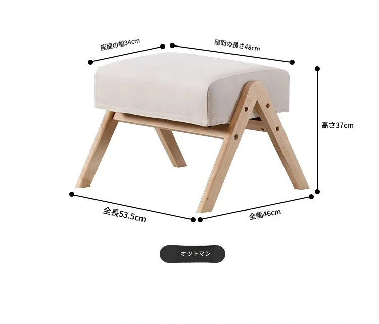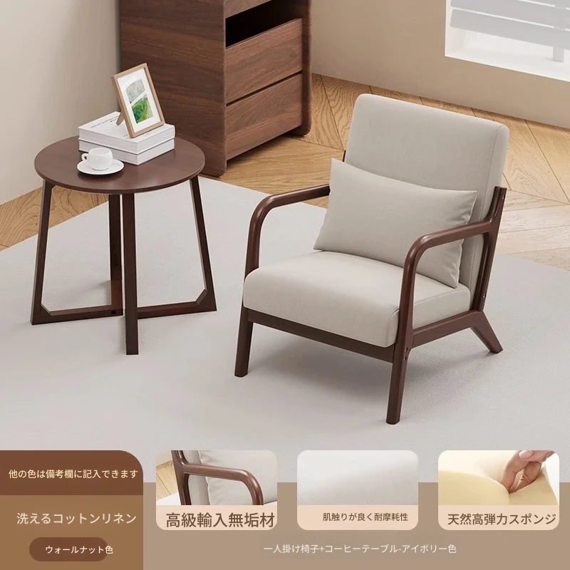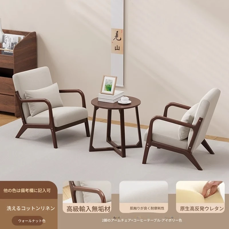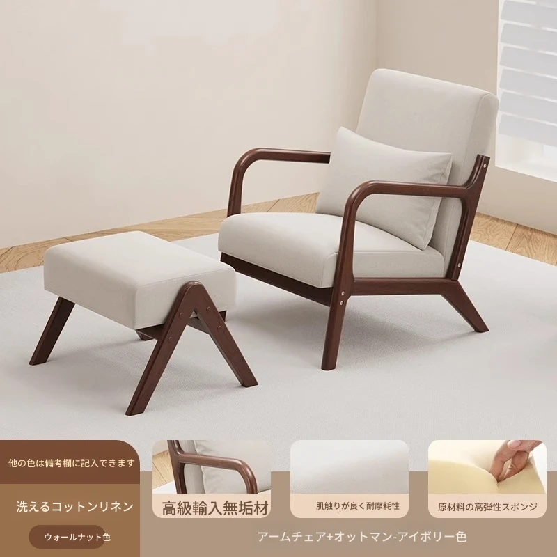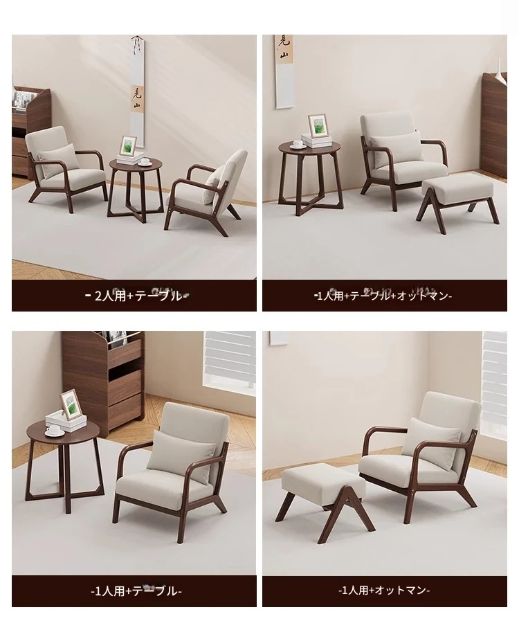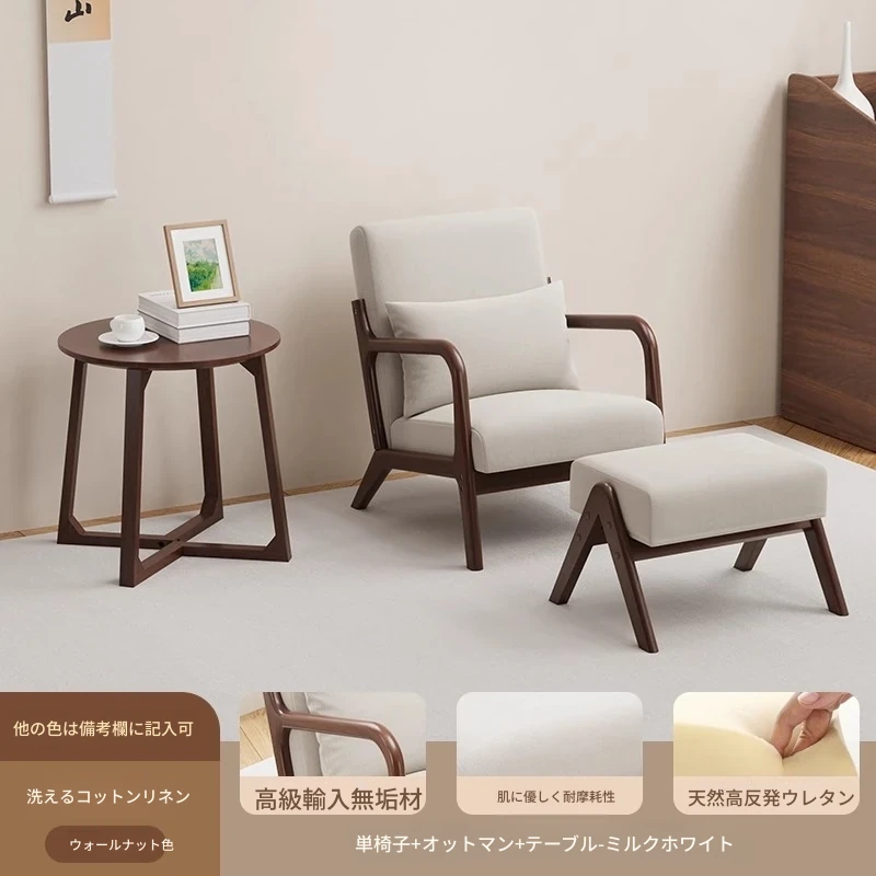 クルミアイボリーコットンリネン1人用+コーヒーテーブル+オットマン