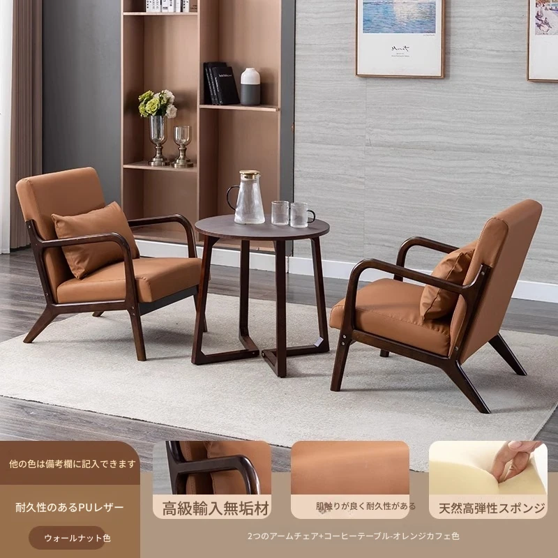 クルミオレンジコーヒーPUレザー2椅子1テーブル