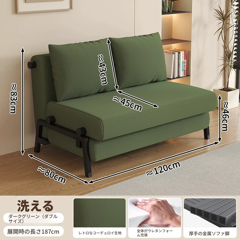 幅120cmの着脱可能なアップグレード版+背もたれ調整可能(ダークグリーン)