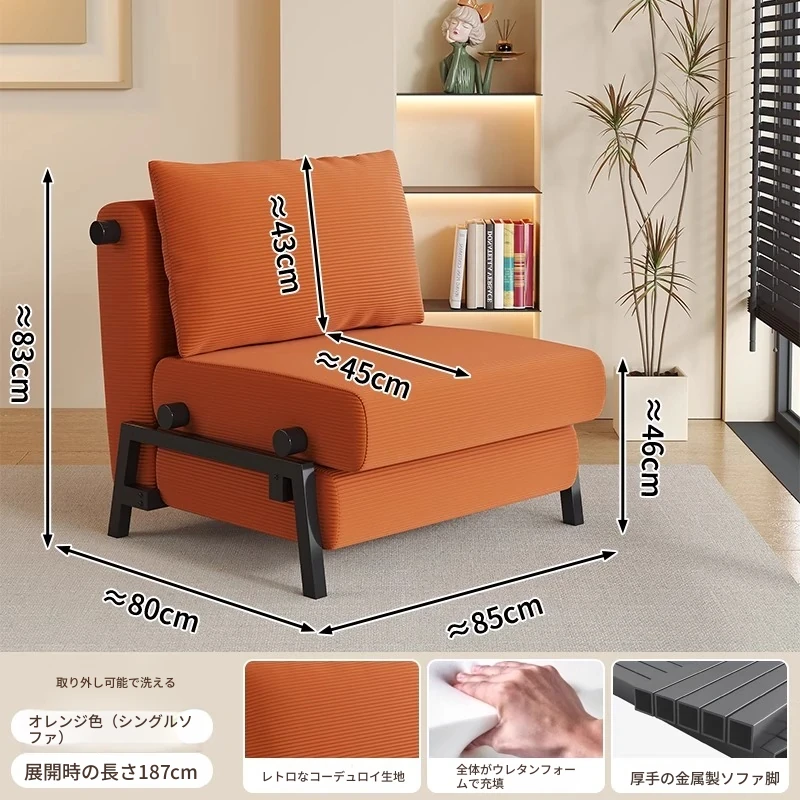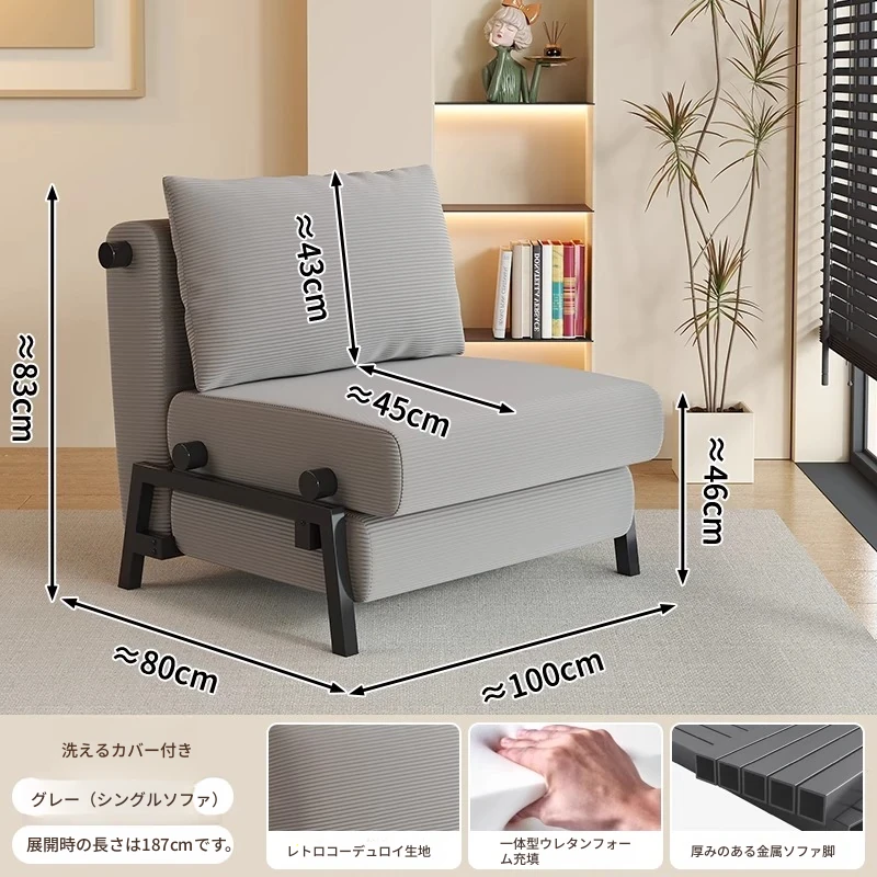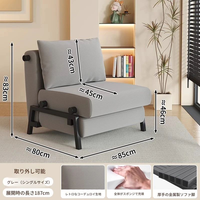 エスマイ折りたたみソファベッド|多機能プルアウトデザイン|家庭用・リビング・バルコニーに最適|シングルサイズ|スリムでスタイリッシュな一体型ソファ!おしゃれで便利な空間を演出します!