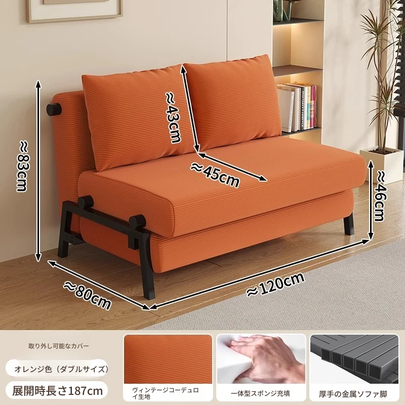 幅120cmの着脱可能なアップグレード版+背もたれ調整可能(オレンジ)