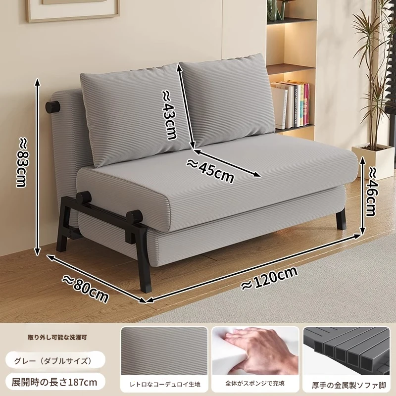 幅120cmの着脱可能なアップグレード版+背もたれ調整可能(グレー)