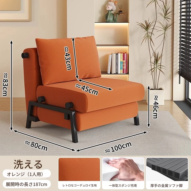 幅100cmの着脱可能なアップグレード版+背もたれ調整可能(オレンジ)