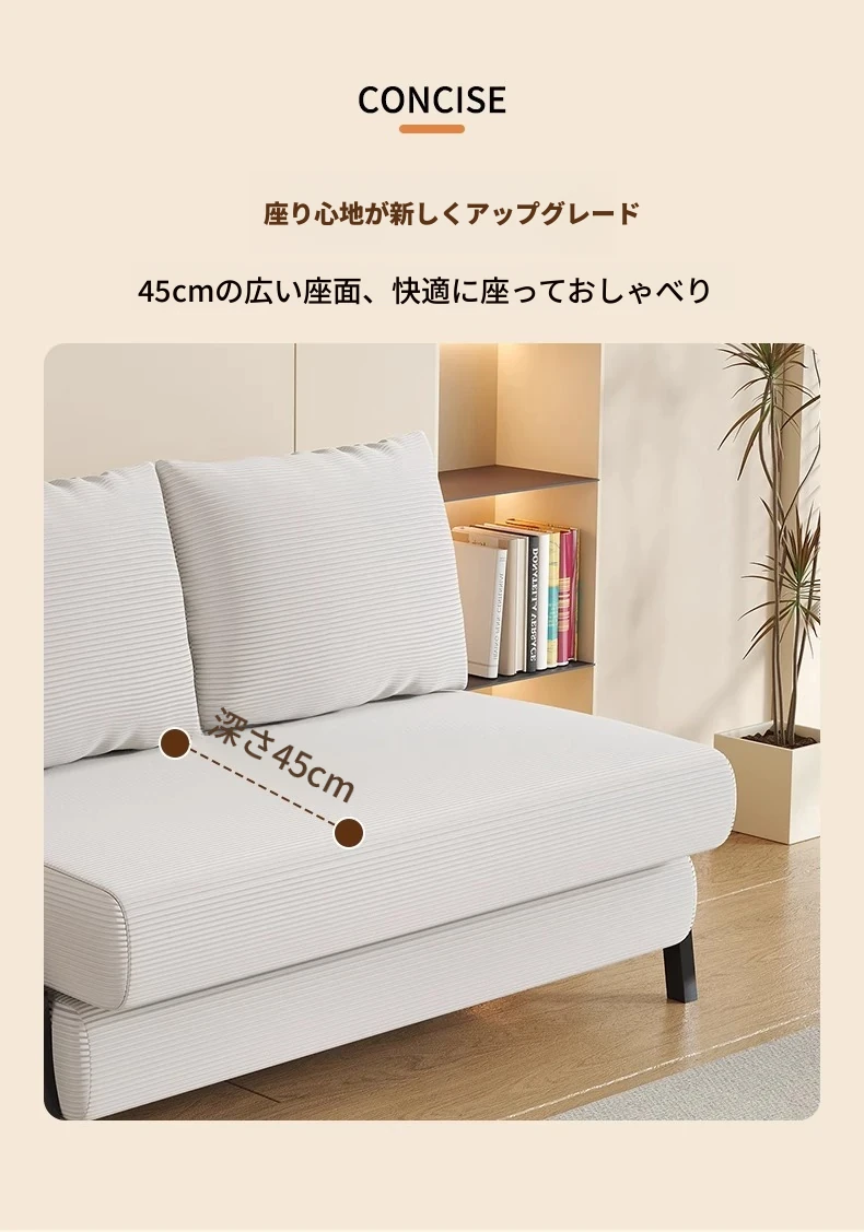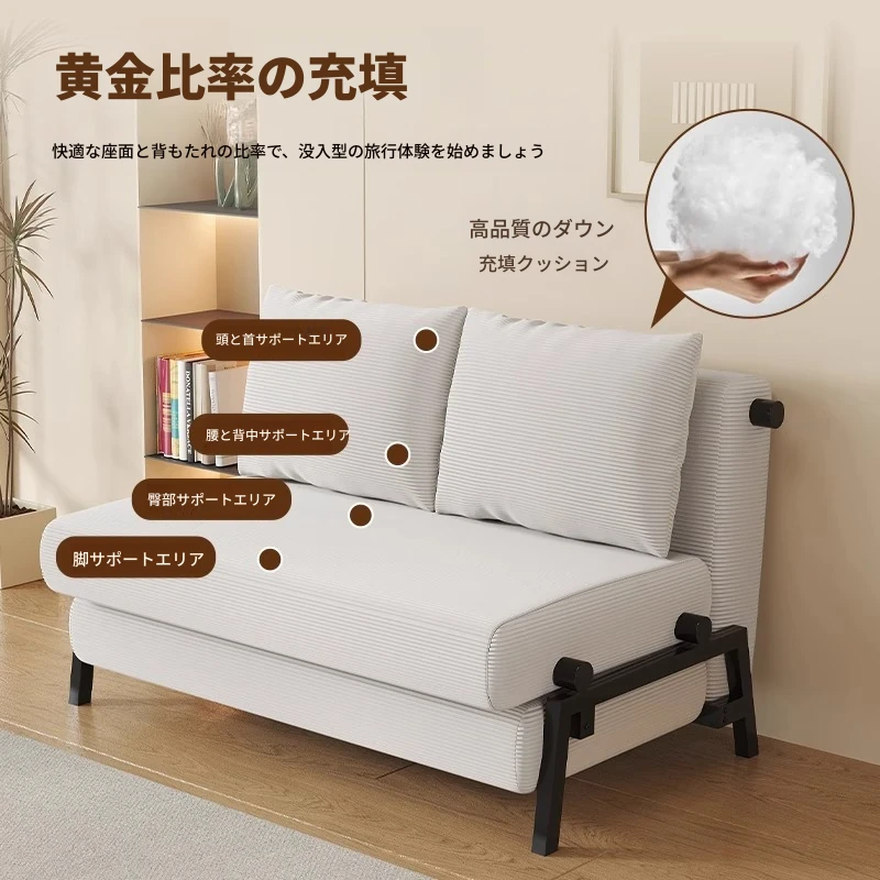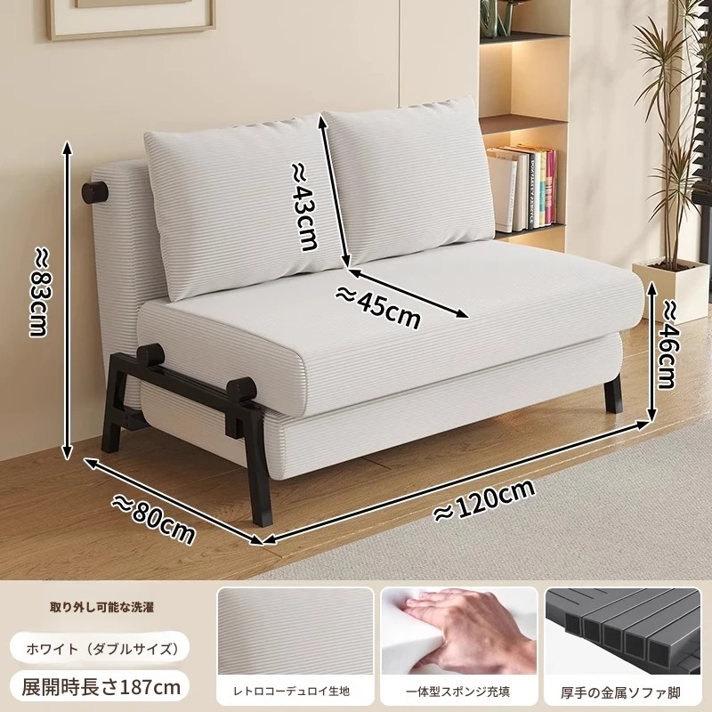 幅120cmの着脱可能なアップグレード版+背もたれ調整可能(クリームホワイト)