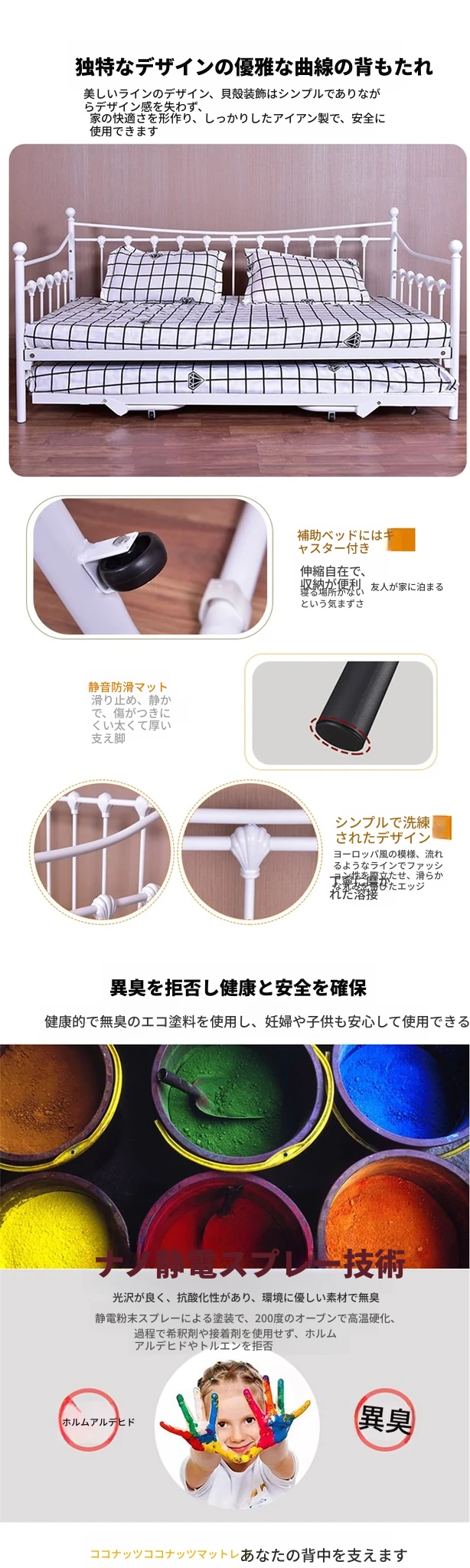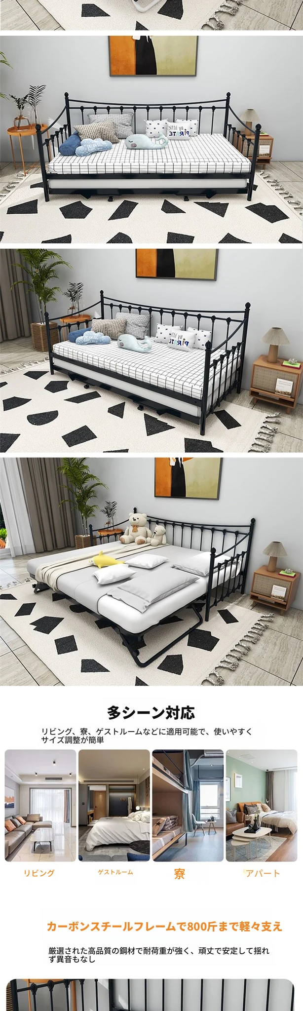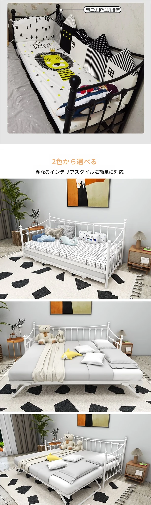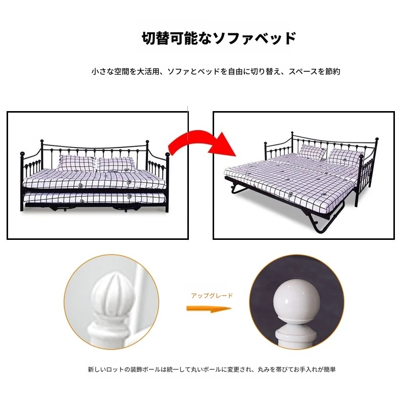 欧風アイアンソファベッド - 移動可能な引き出し付き二段ベッド、1.8mの大きなベッドで、快適さとスタイルを兼ね備えた看護用ベッドにも最適!おしゃれで機能的な空間を演出します。