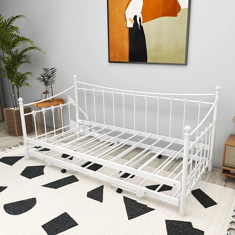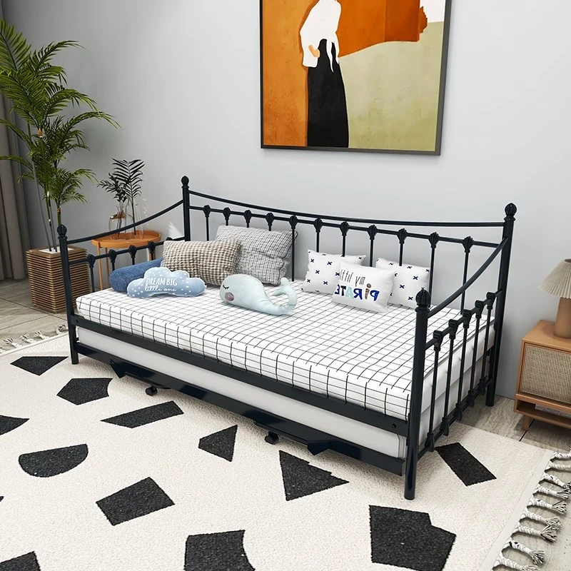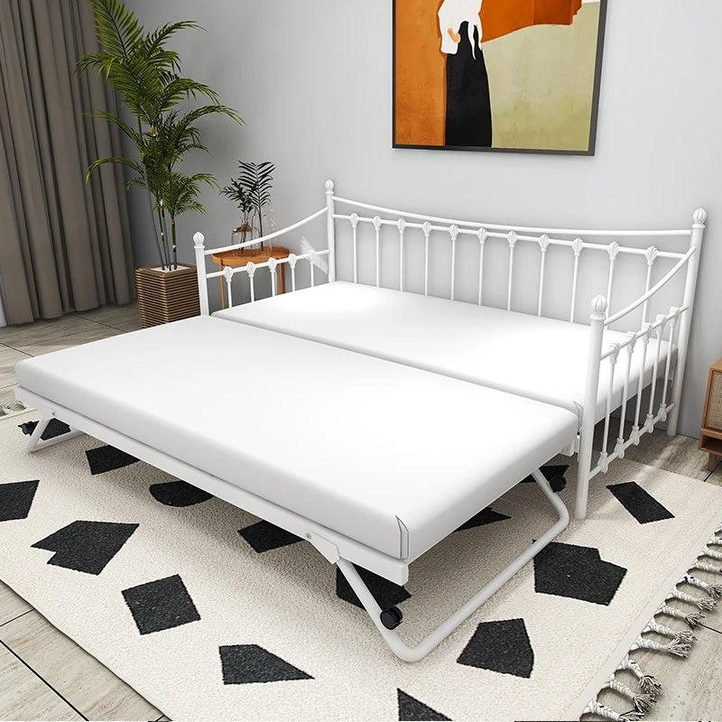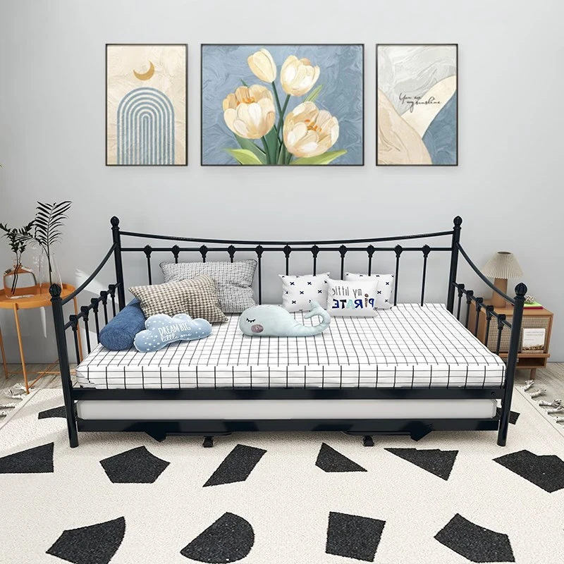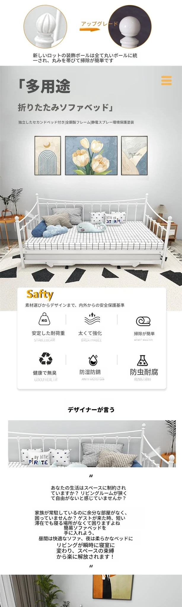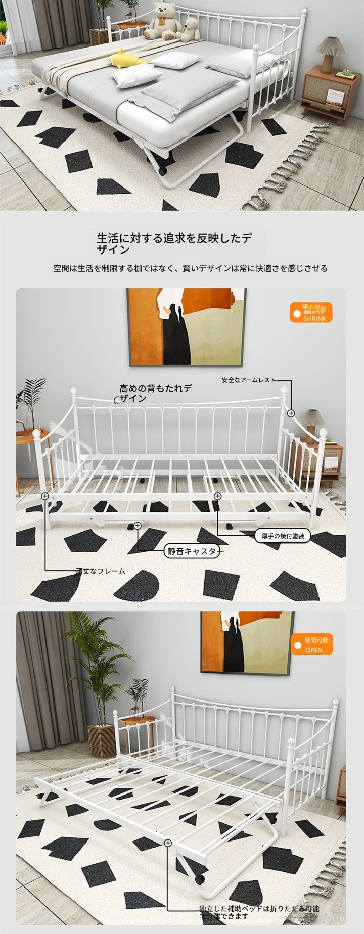 欧風アイアンソファベッド - 移動可能な引き出し付き二段ベッド、1.8mの大きなベッドで、快適さとスタイルを兼ね備えた看護用ベッドにも最適!おしゃれで機能的な空間を演出します。
