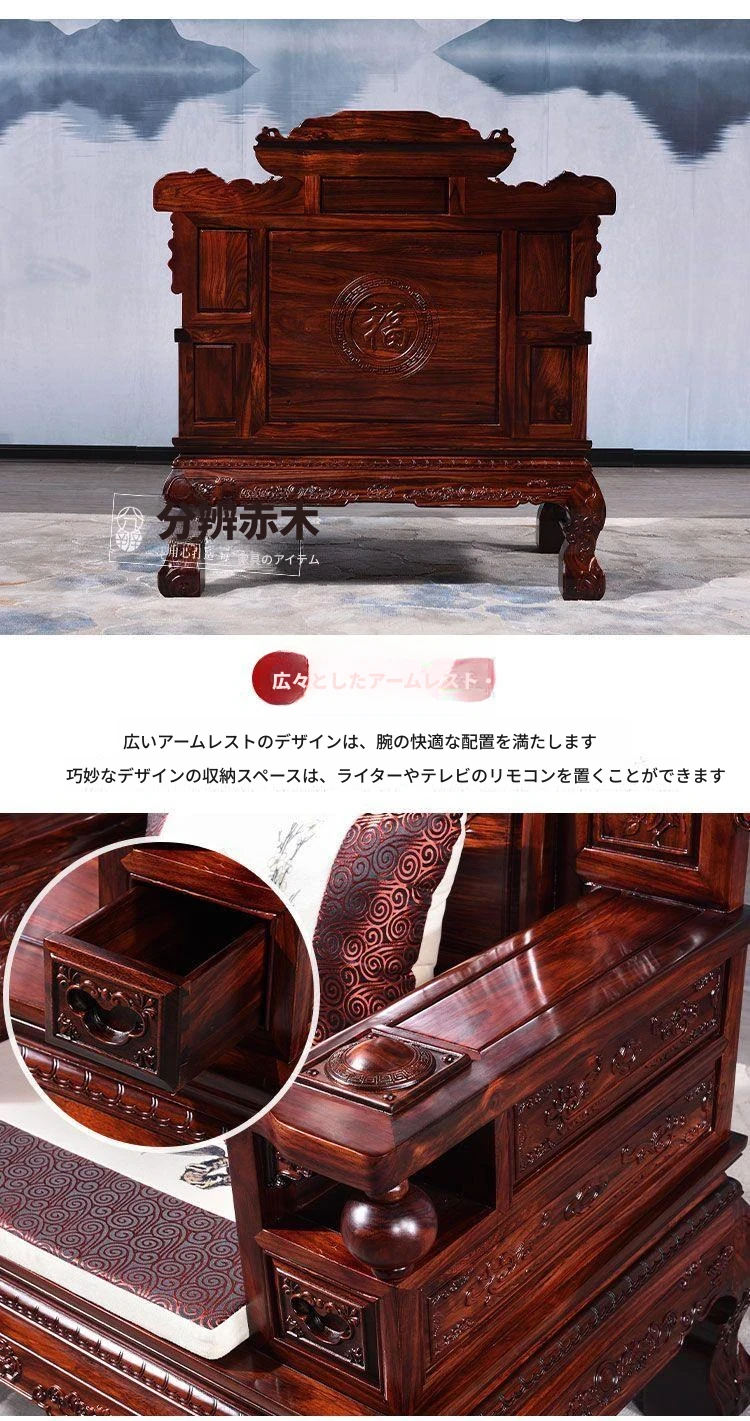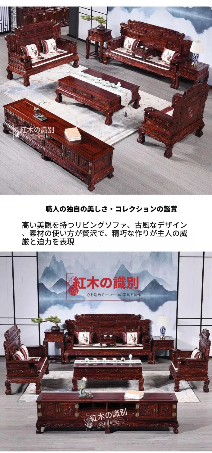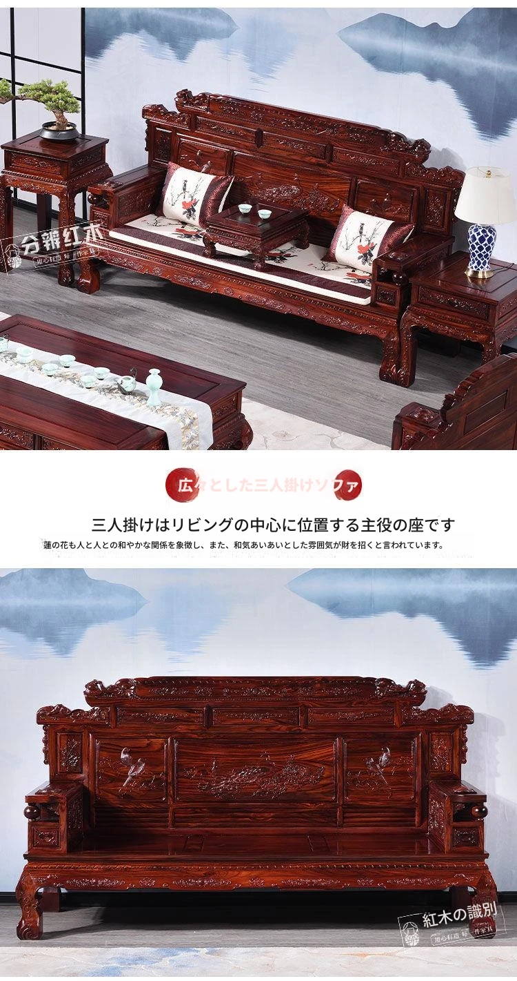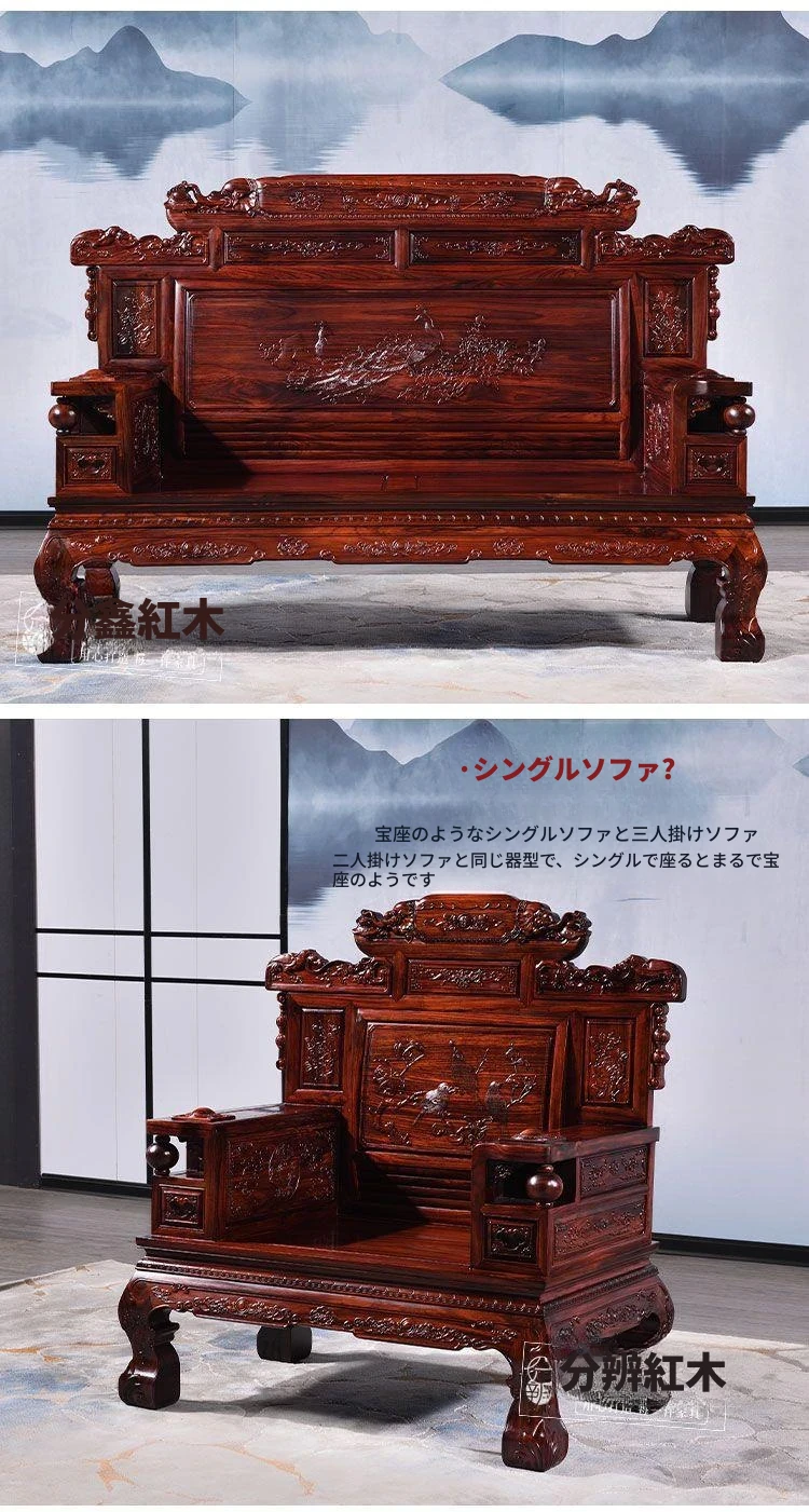 人気の紅木ソファ!広葉黄檀製のアフリカ酸枝木を使用した豪華なソファセット。財運を呼び込む古典的デザインで、あなたの家をスタイリッシュに演出します。