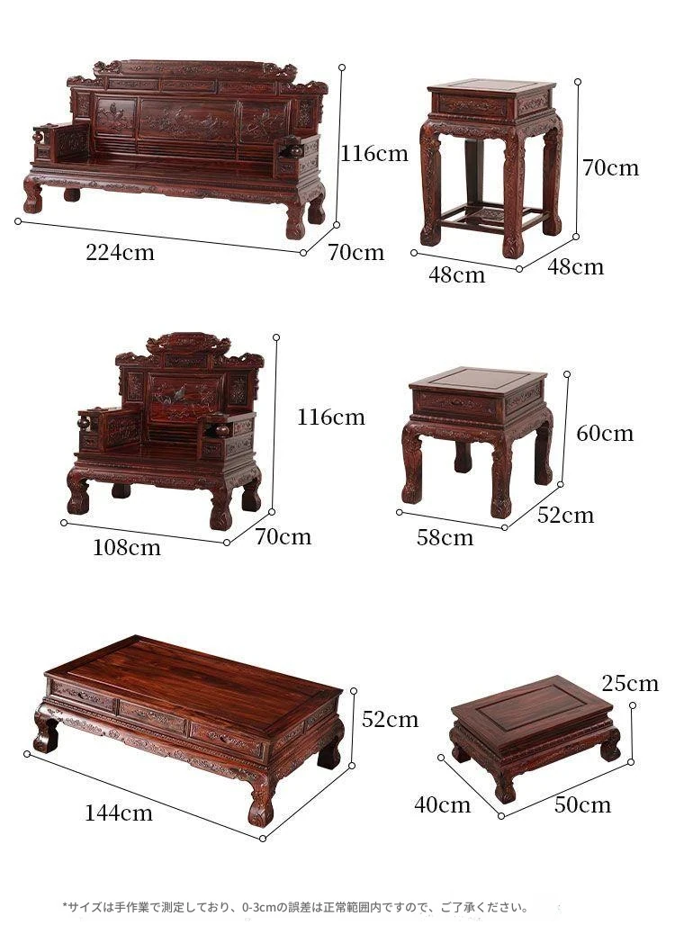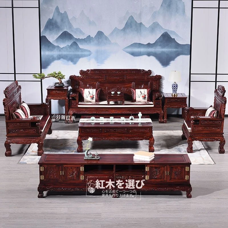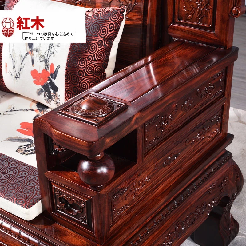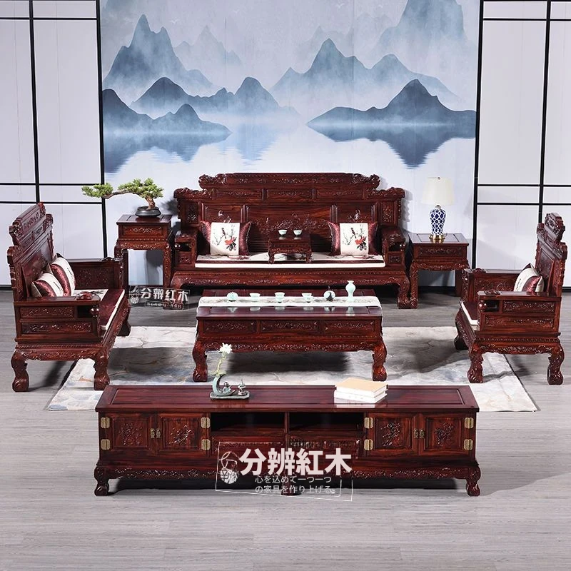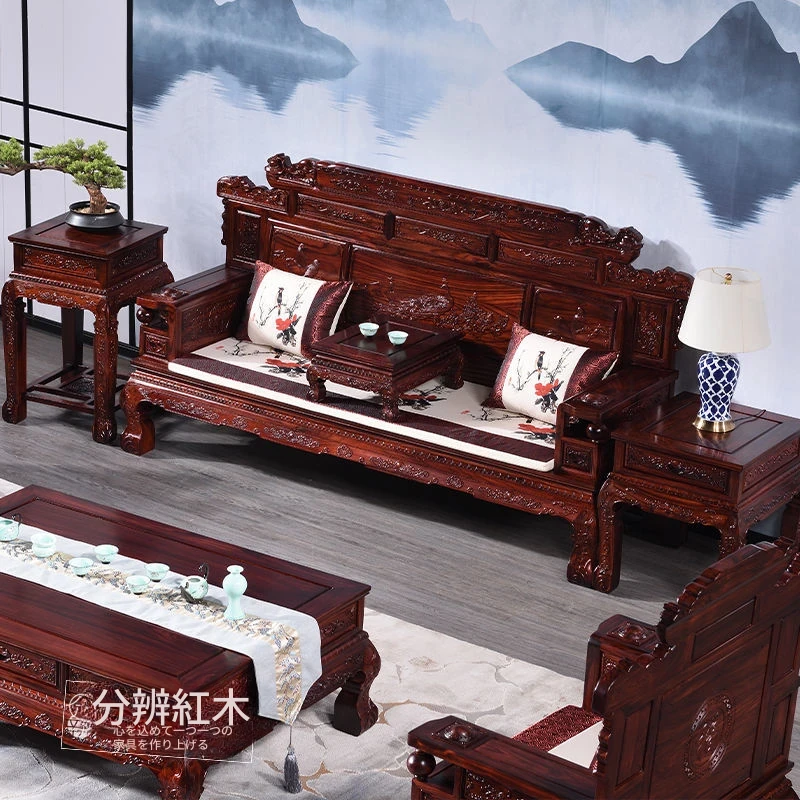人気の紅木ソファ!広葉黄檀製のアフリカ酸枝木を使用した豪華なソファセット。財運を呼び込む古典的デザインで、あなたの家をスタイリッシュに演出します。
