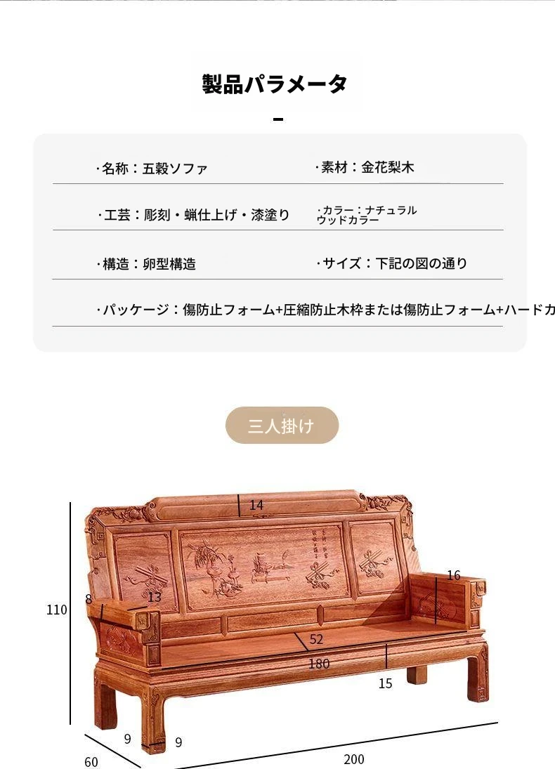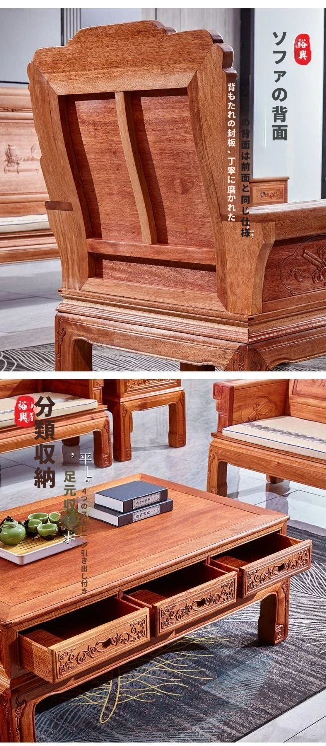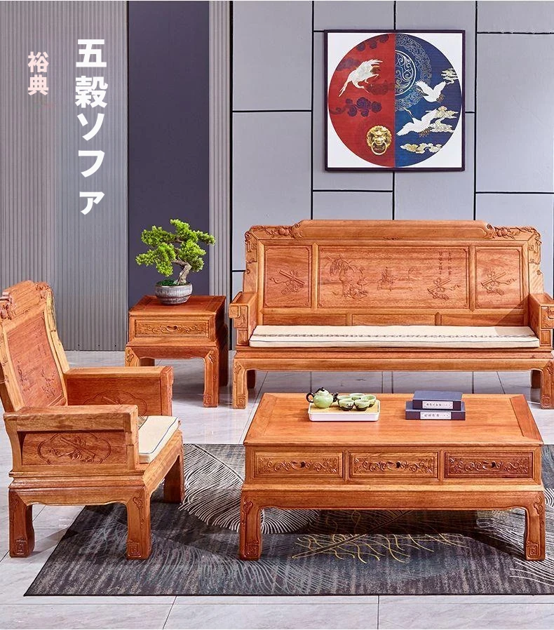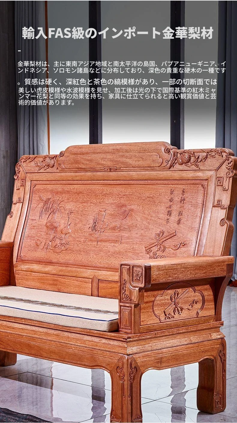 人気の金華梨木製全実木ソファー!中式アンティークスタイルで、明清時代を彷彿とさせる高級感。小型住宅にもピッタリな洗練されたリビングルームの組み合わせ家具です。