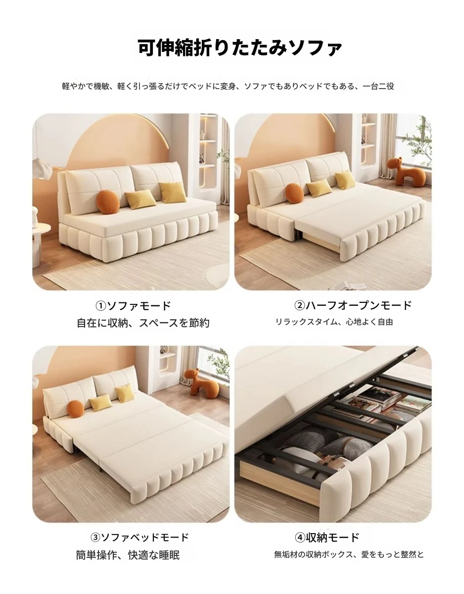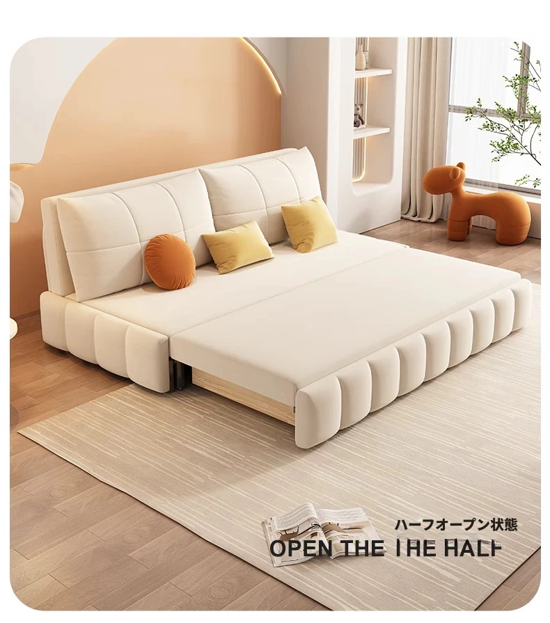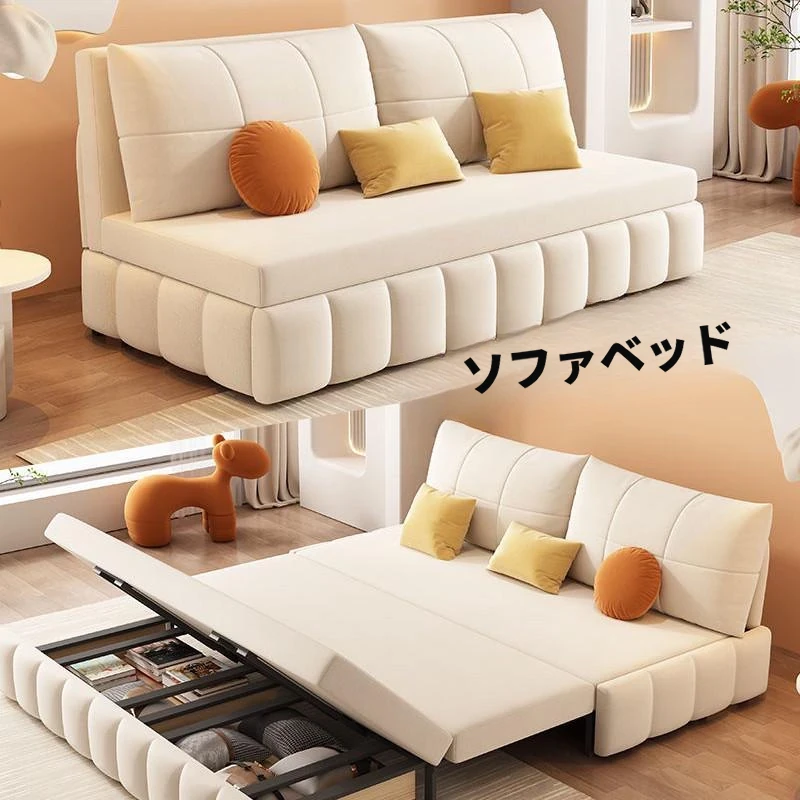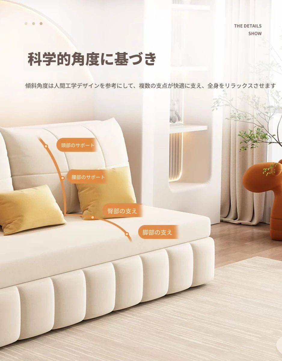 キャットグラブフリース折りたたみソファベッド|小型スペースに最適なクリーム風多機能伸縮型|アームレストなしで自由自在に使える!リビングや書斎にぴったり!