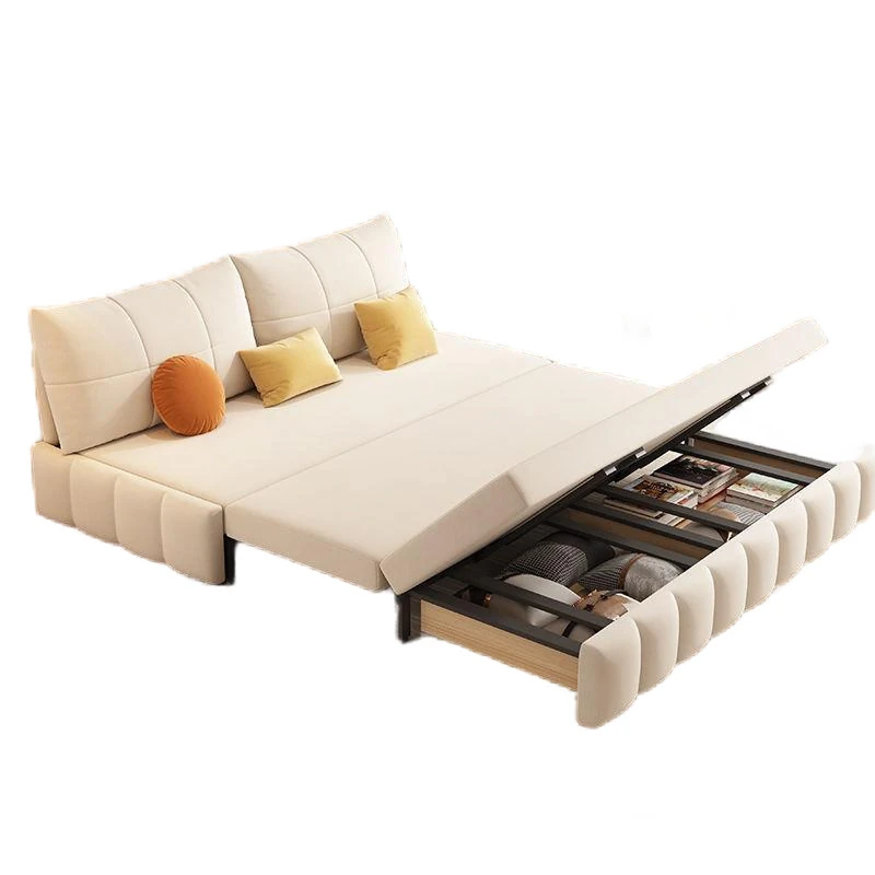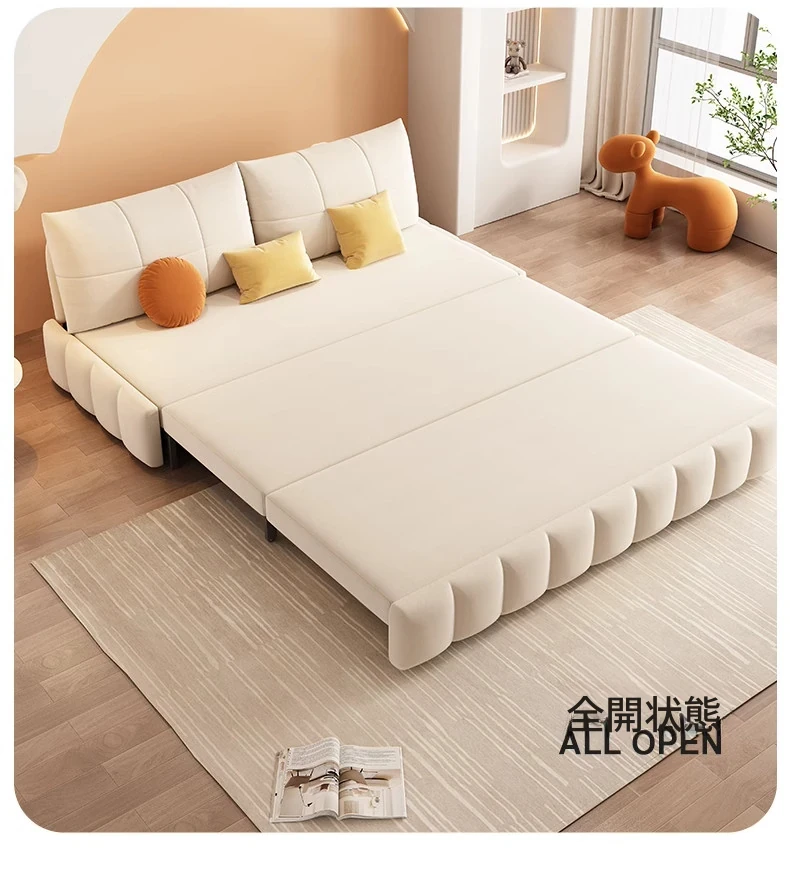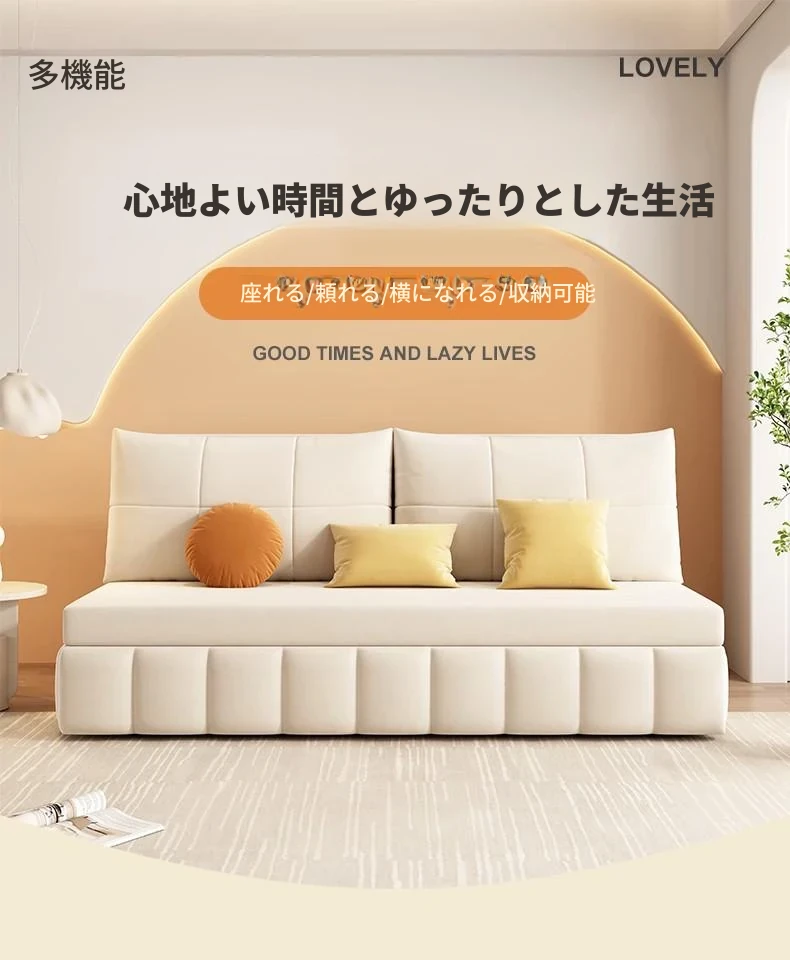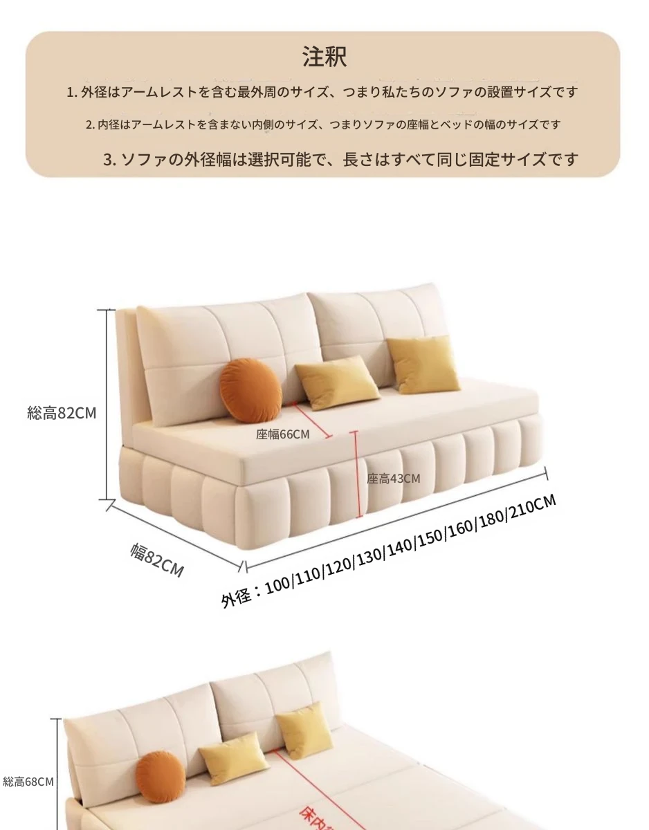 キャットグラブフリース折りたたみソファベッド|小型スペースに最適なクリーム風多機能伸縮型|アームレストなしで自由自在に使える!リビングや書斎にぴったり!