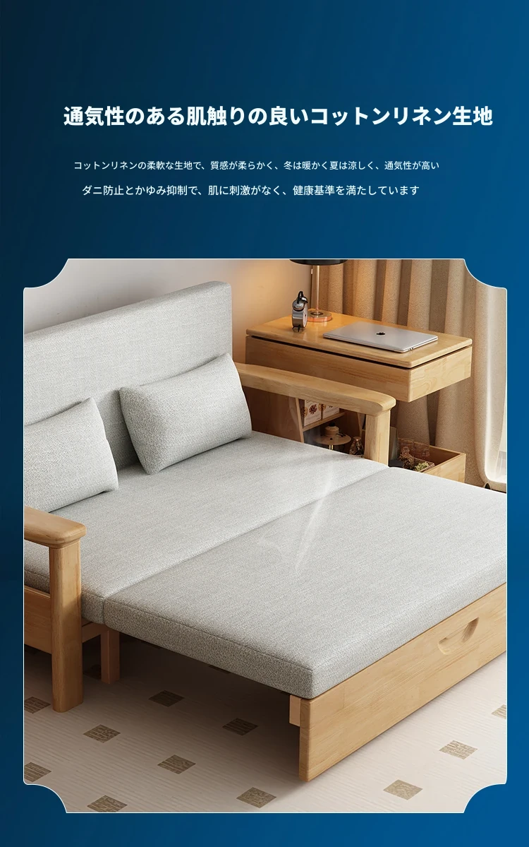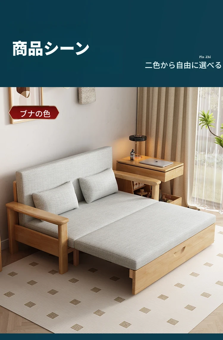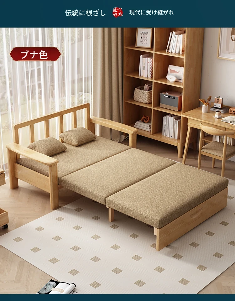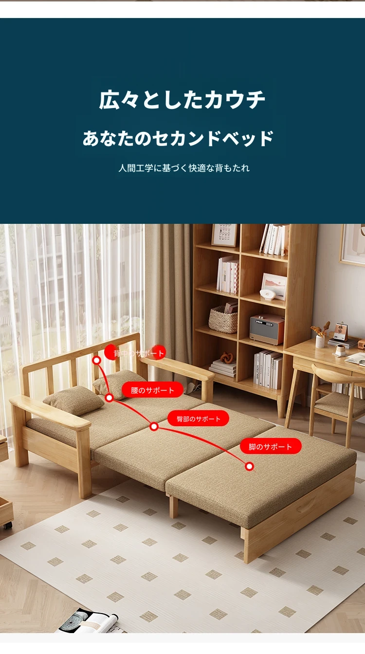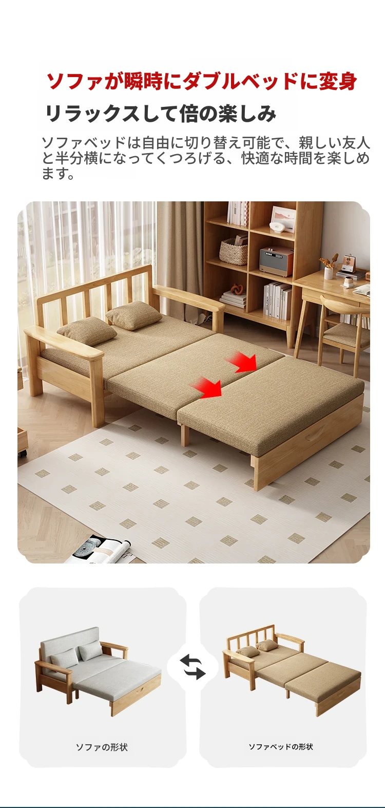 折りたたみ式無垢材シンプルソファベッド - マルチ機能、コンパクトなリビングに最適!簡単に折りたためる二用途デザインで、スペースを有効活用。伸縮式で使い勝手抜群、居心地の良い空間を提供します。