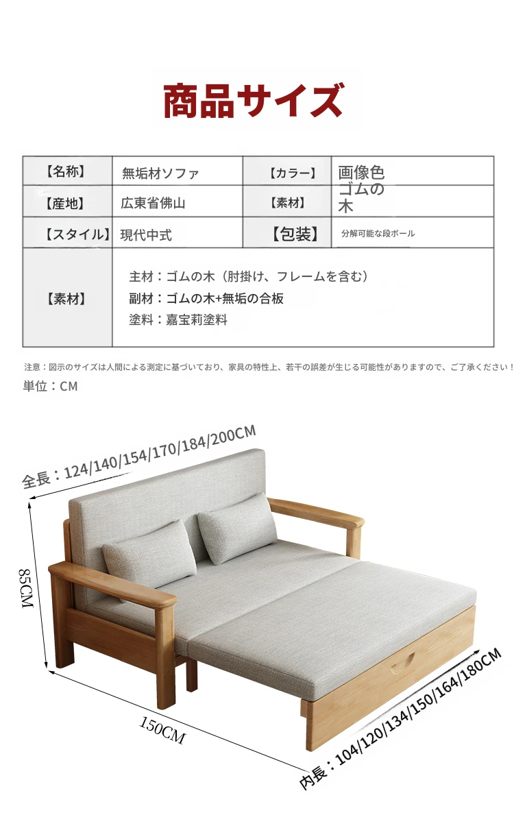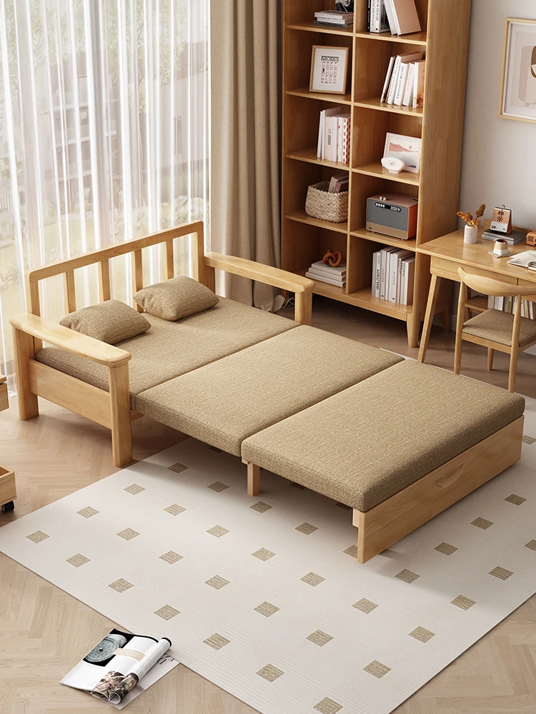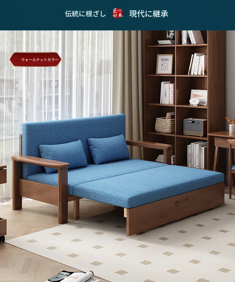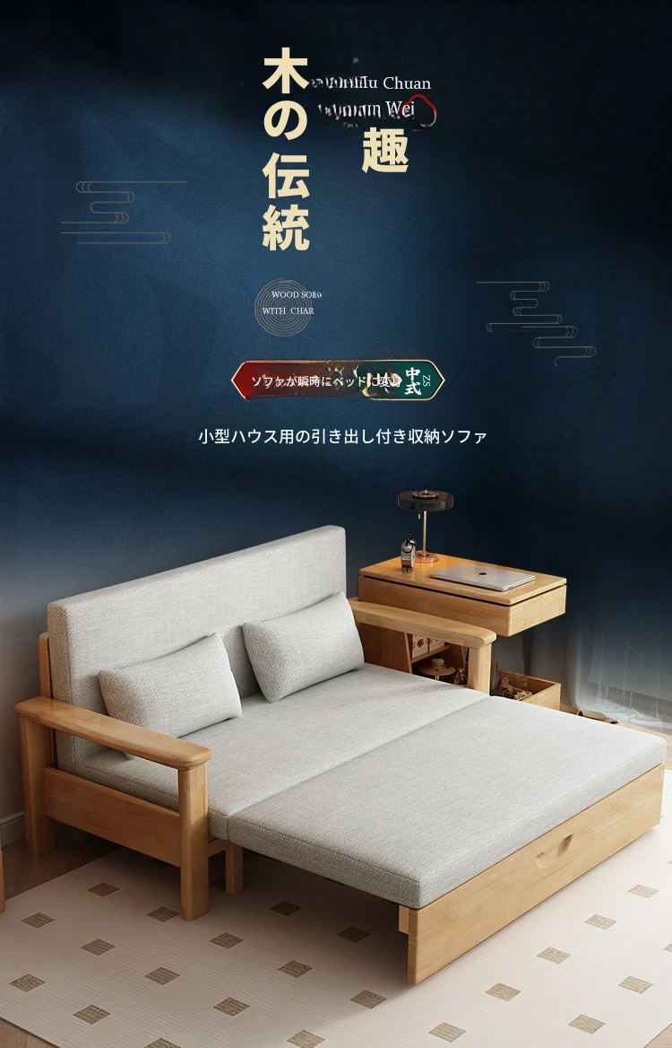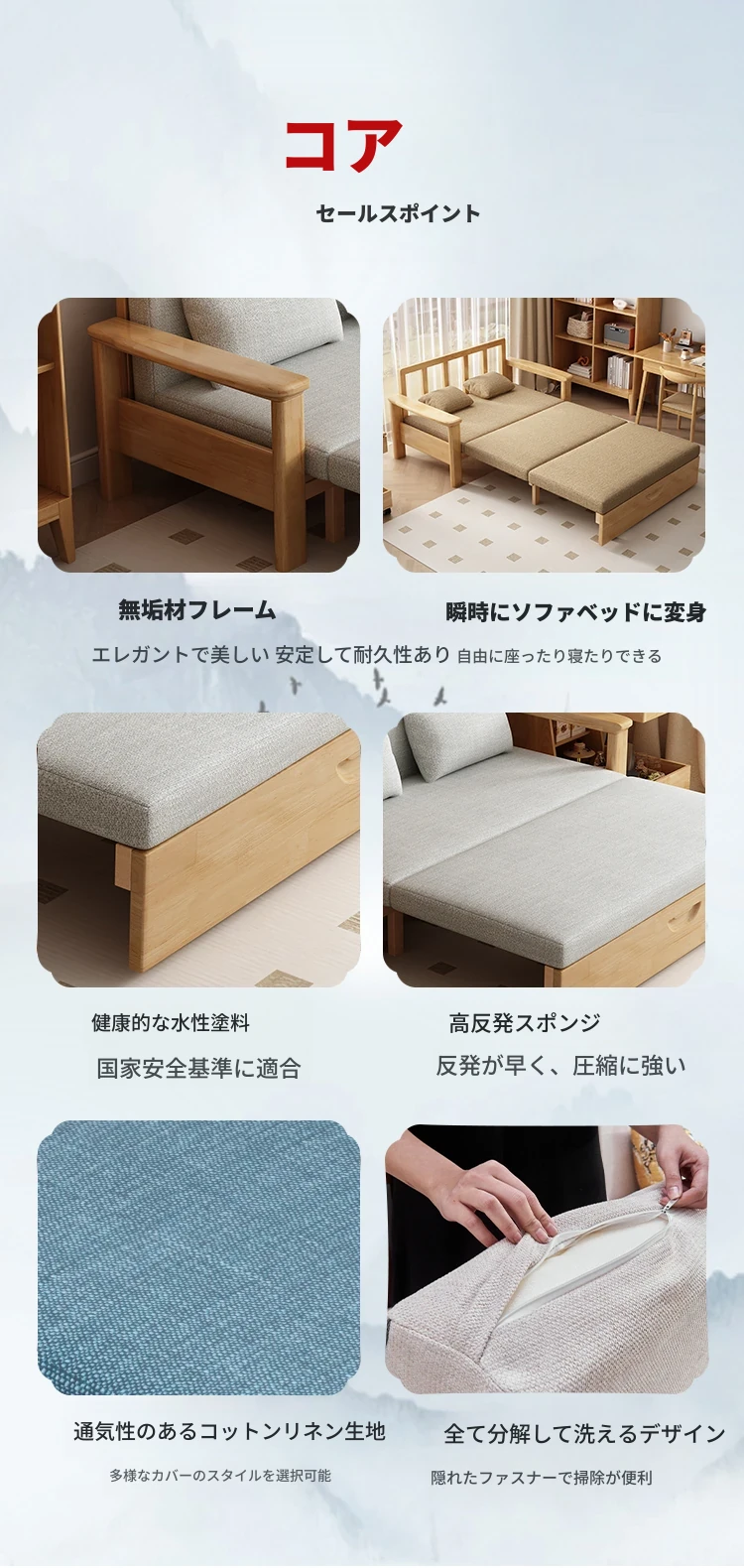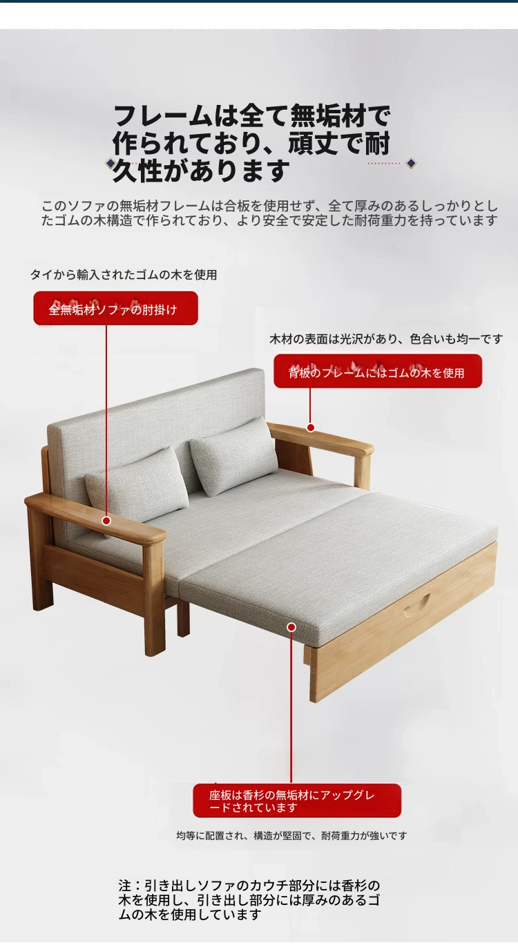 折りたたみ式無垢材シンプルソファベッド - マルチ機能、コンパクトなリビングに最適!簡単に折りたためる二用途デザインで、スペースを有効活用。伸縮式で使い勝手抜群、居心地の良い空間を提供します。