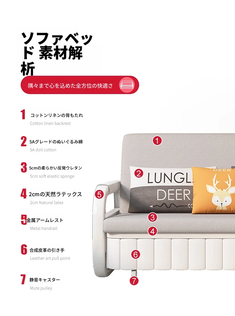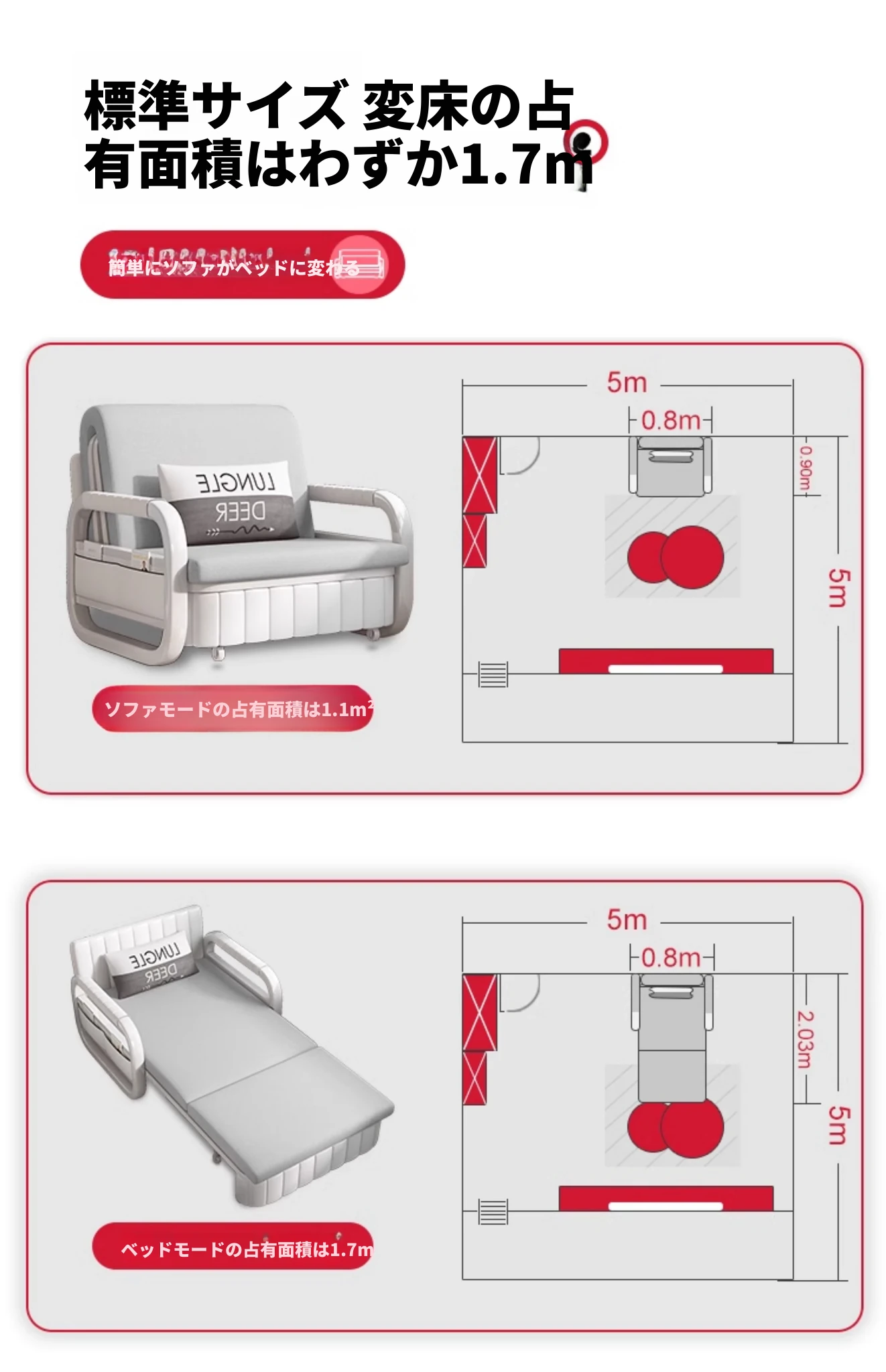 【香港送料無料】多機能ソファベッド!伸縮式・折りたたみ可能なシングル&ダブル対応、小スペースに最適なデザイン。快適な眠りをお届けします!
