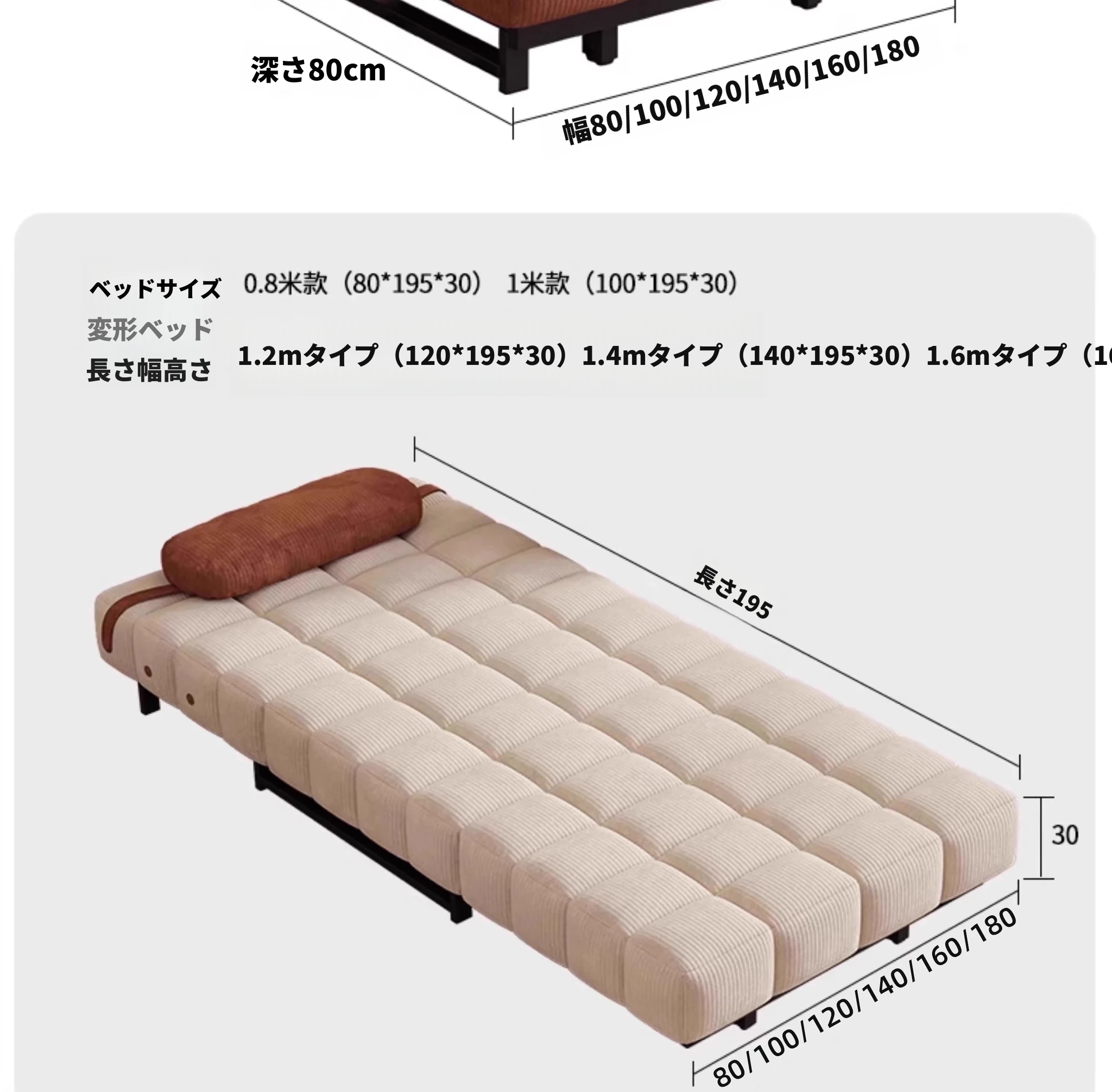 0.8メートル折りたたみソファベッド【ラテックスタイプ】