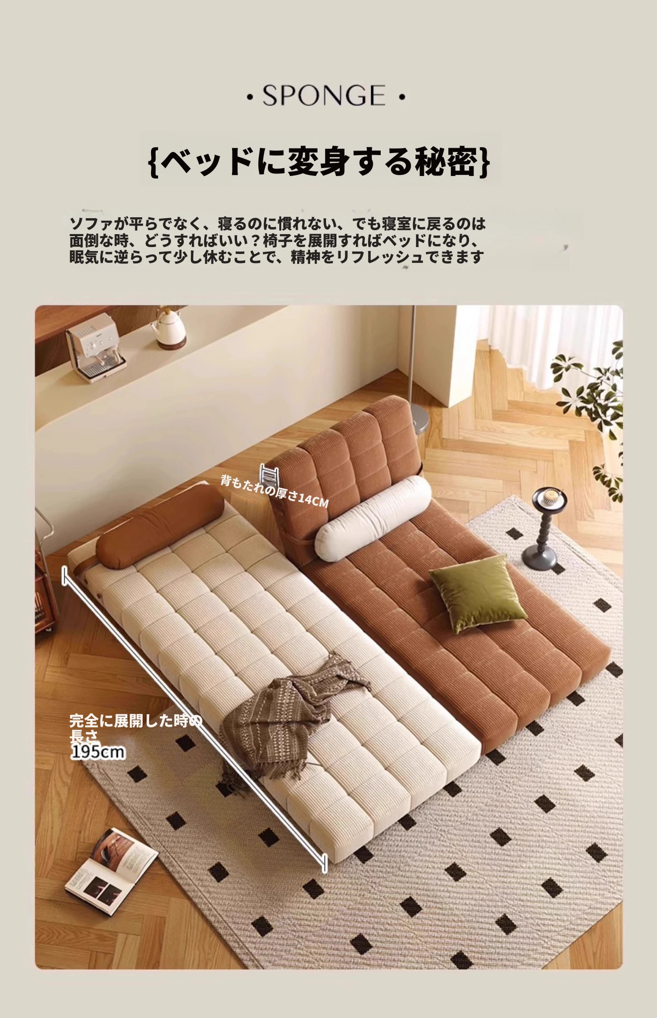 【香港送料無料】おしゃれなレトロデザイン!折りたたみ式ソファベッド・多機能・調節可能な小型住宅向け・引き出し付き家庭用ソファ!快適な空間を実現します!