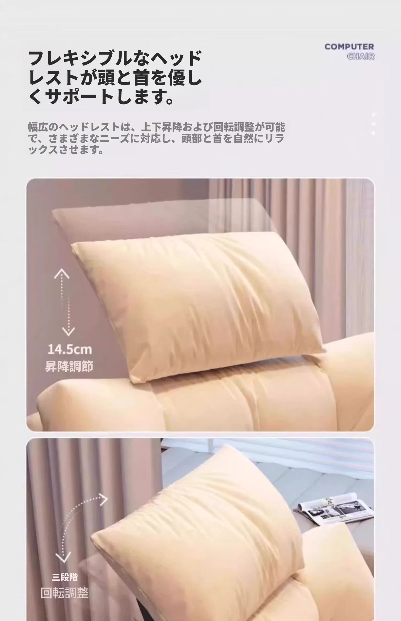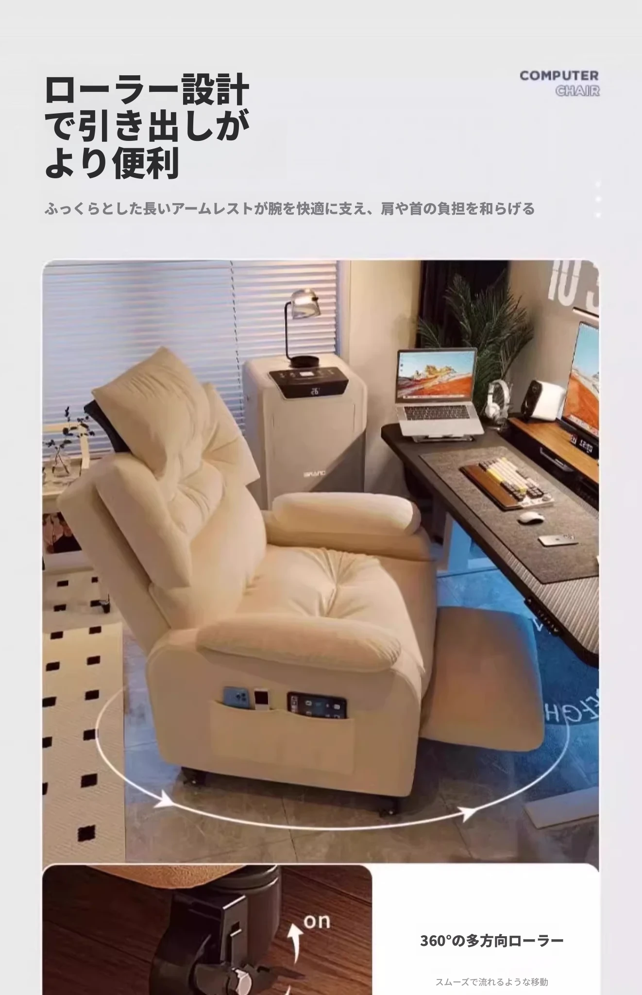 ⭐20元引き⭐加大版【キャスタータイプ】パールホワイト+ヘッドレスト+フットレスト