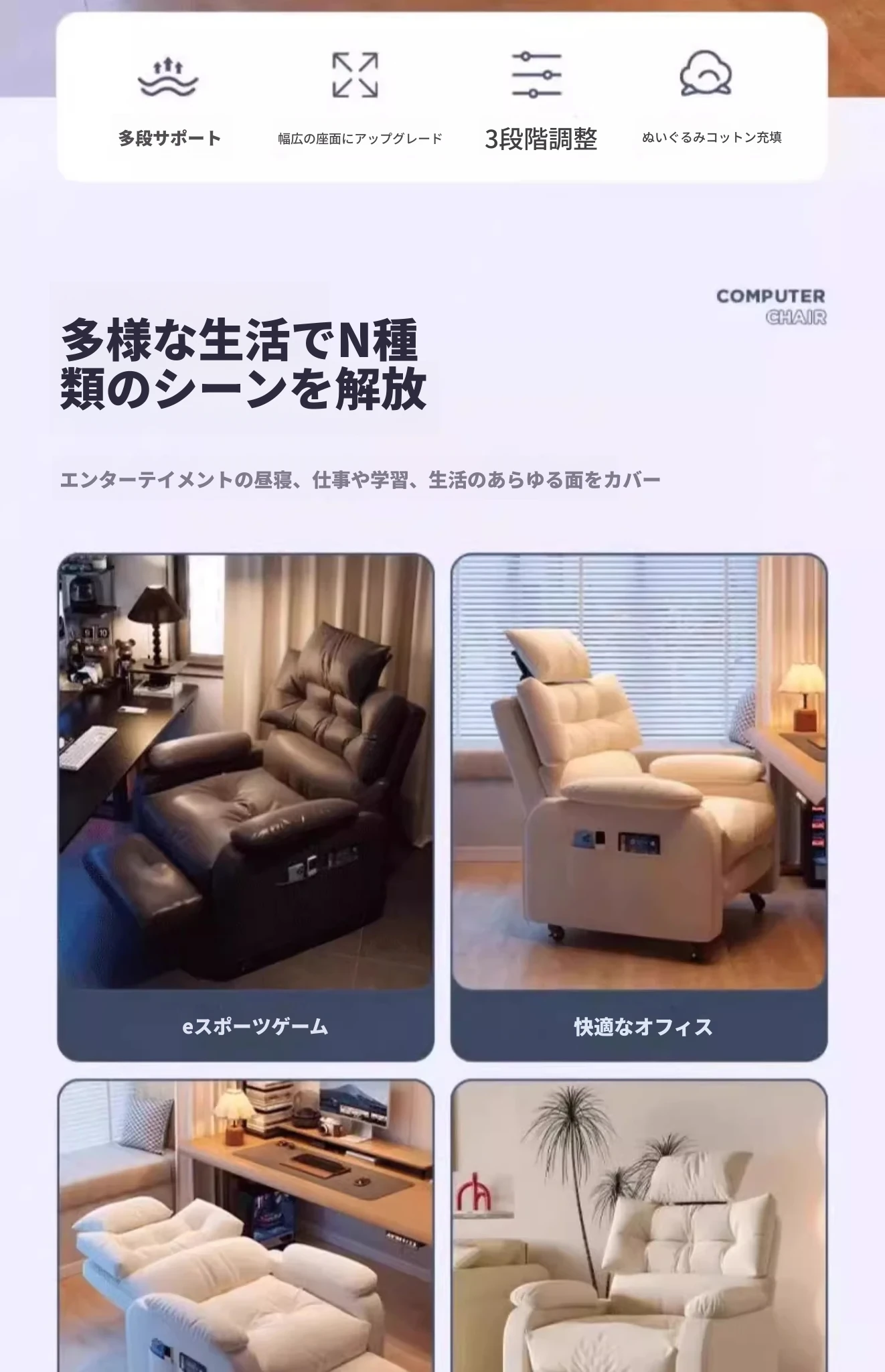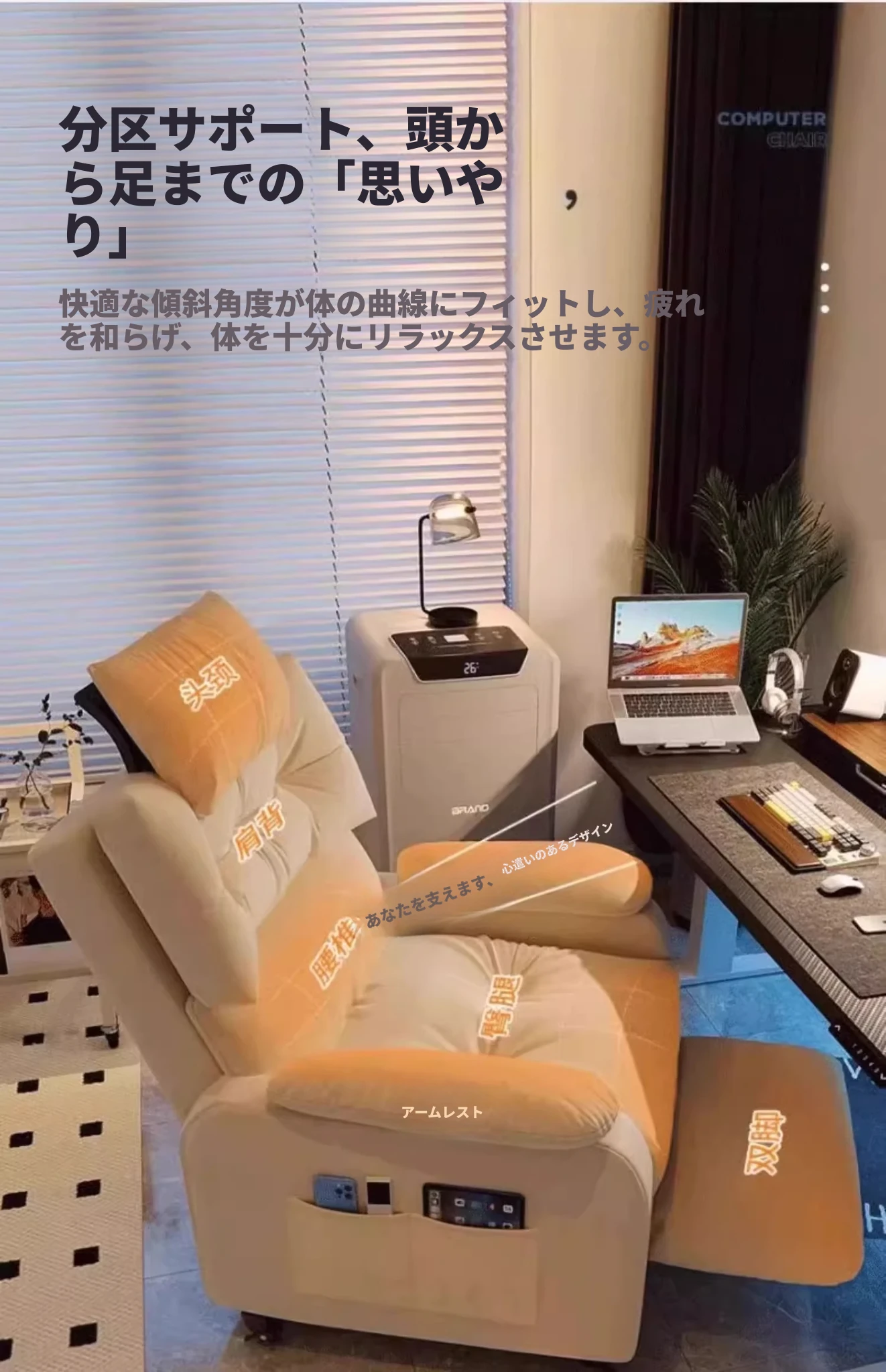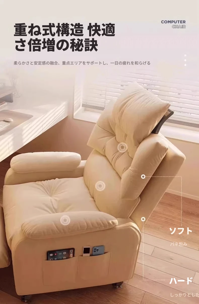 【香港送料無料】リクライニングソファ!快適な一人用サロンチェア、寝転んでもOK!自宅や学生寮に最適なコンピューターチェアで、リラックスした時間をお楽しみください!