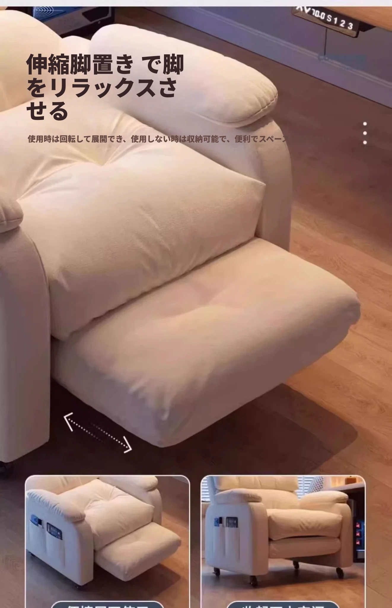 加大版【固定脚】パールホワイト+ヘッドレスト+フットレスト(配送サービス)