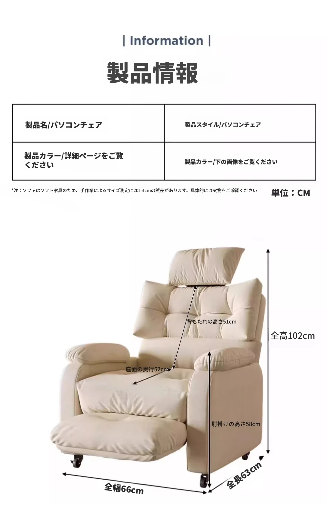 加大版【キャスタータイプ】パールホワイト+ヘッドレスト+フットレスト(配送サービス)