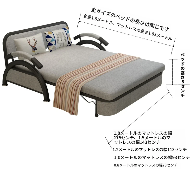 【香港送料無料】折りたたみ式ソファベッド!小型住宅に最適な多機能デザイン、収納もできるプルアウト式ダブルベッド。限られたスペースでも快適に!