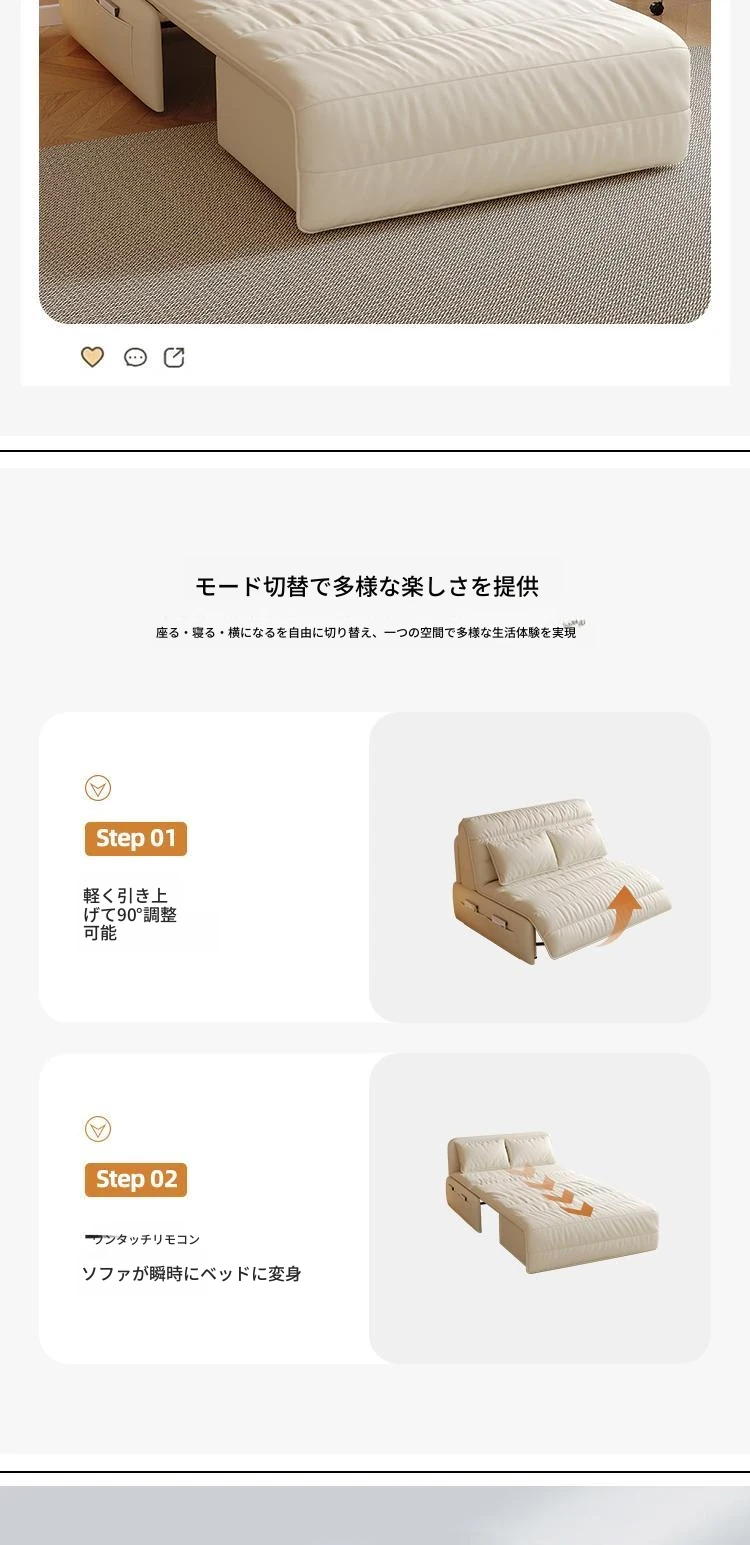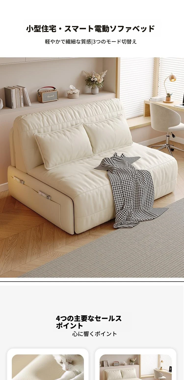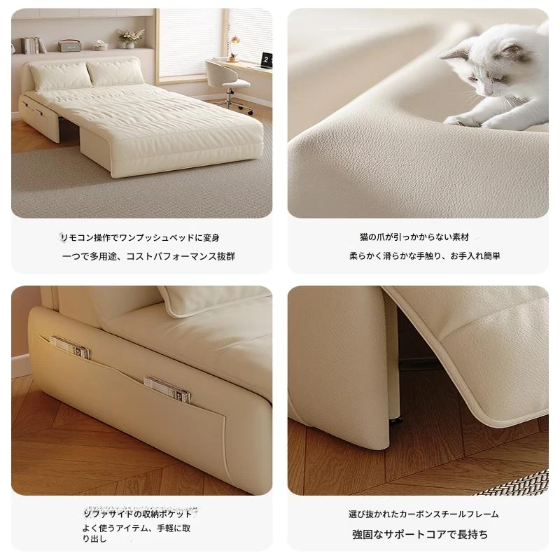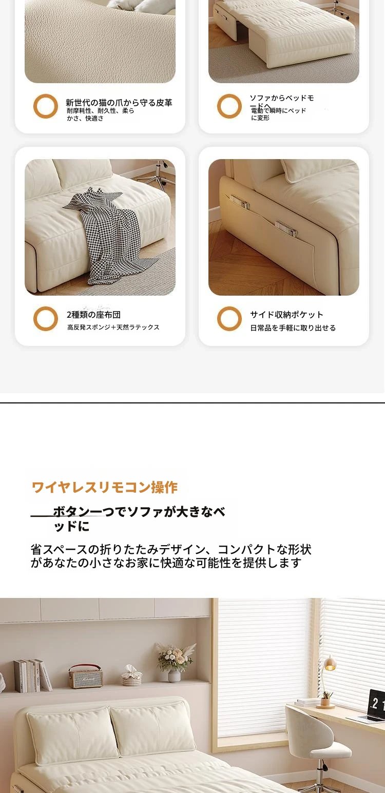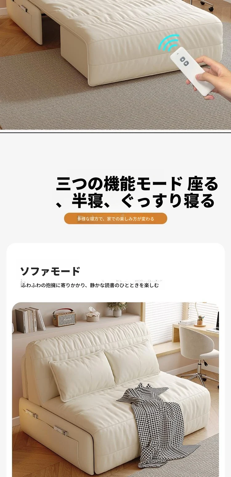 【香港送料無料】スマート電動リクライニングベッド!本革ソファベッド、2WAY多機能で小型住宅に最適、折りたたみ可能!快適な睡眠とリラックス空間を実現!