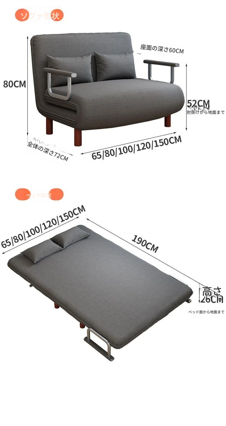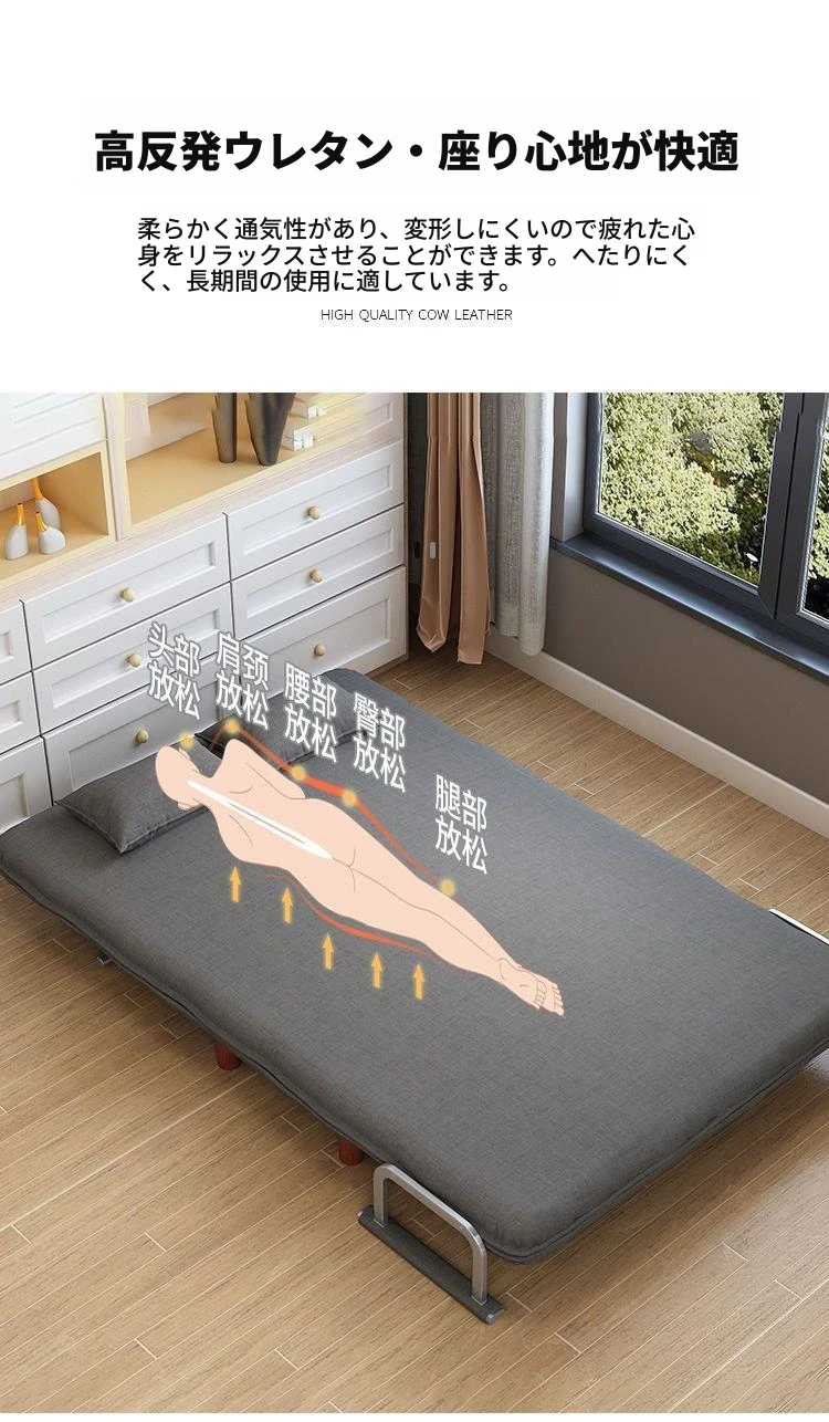 【香港送料無料】折りたたみソファベッド - 多機能リビング用、昼寝に最適な省スペースの一人用ソファ!ゆったりくつろげるレイジーライフを実現!