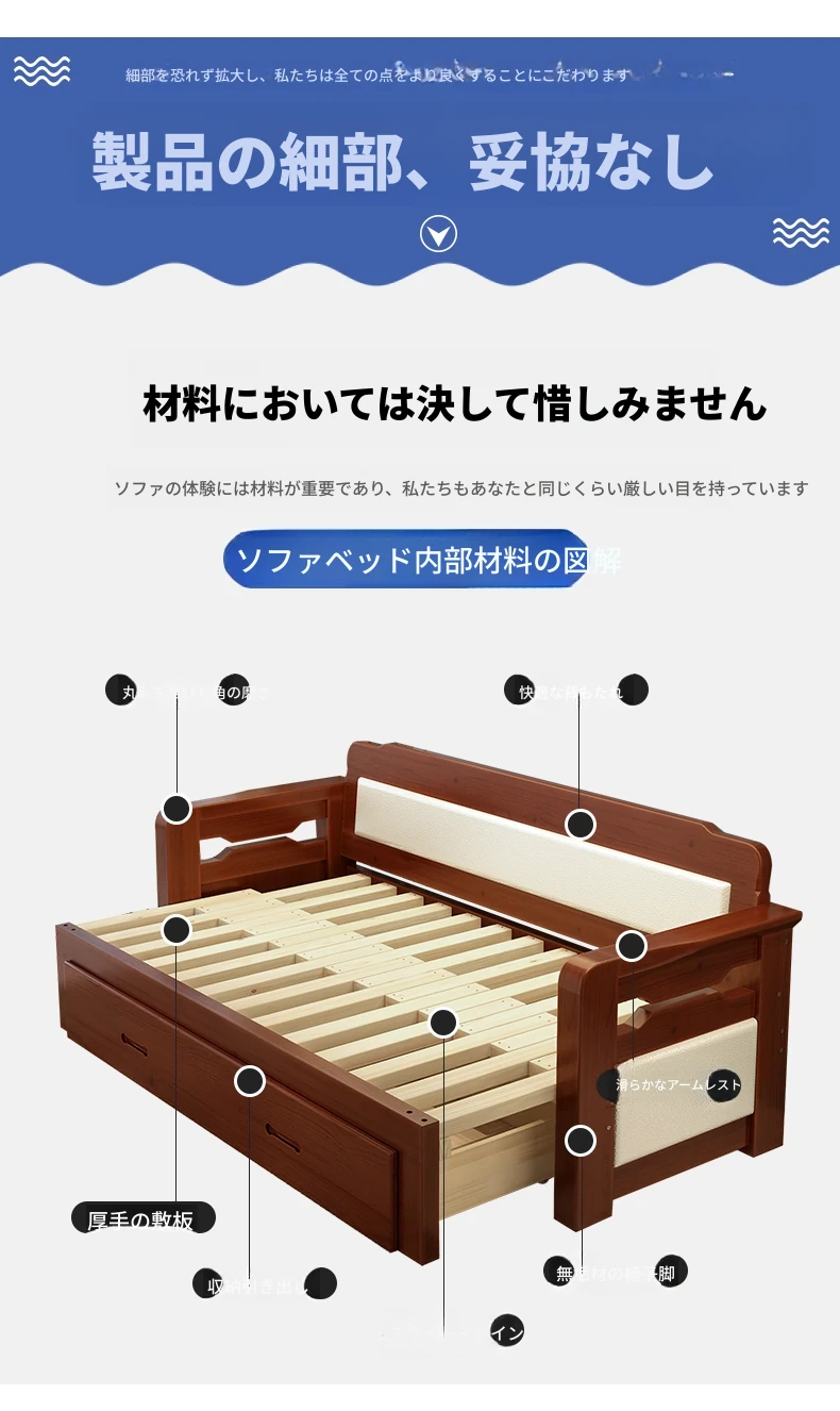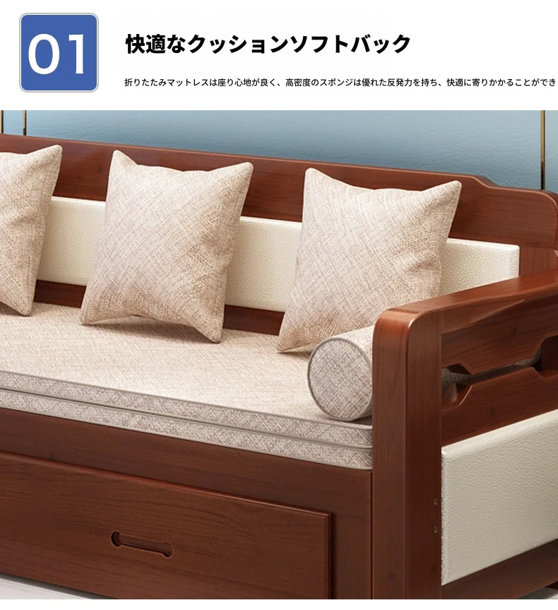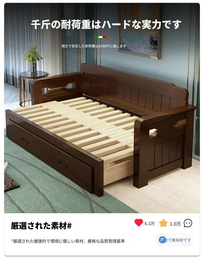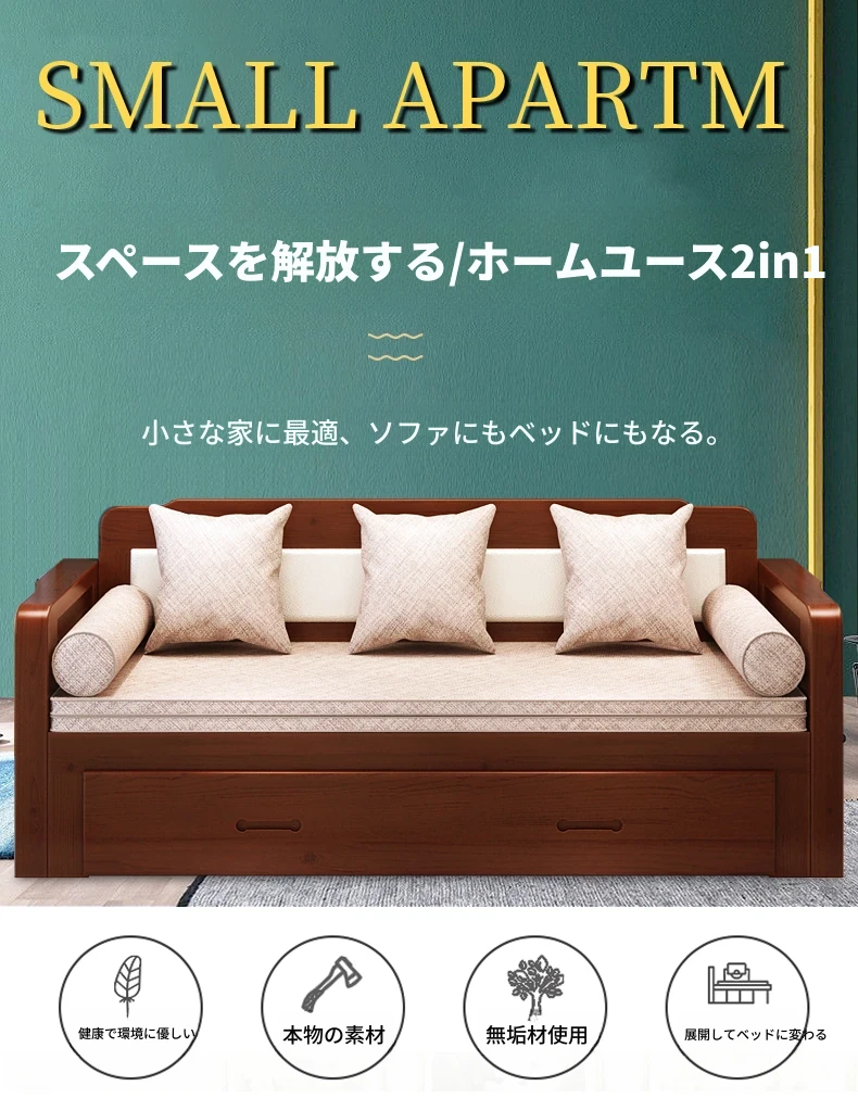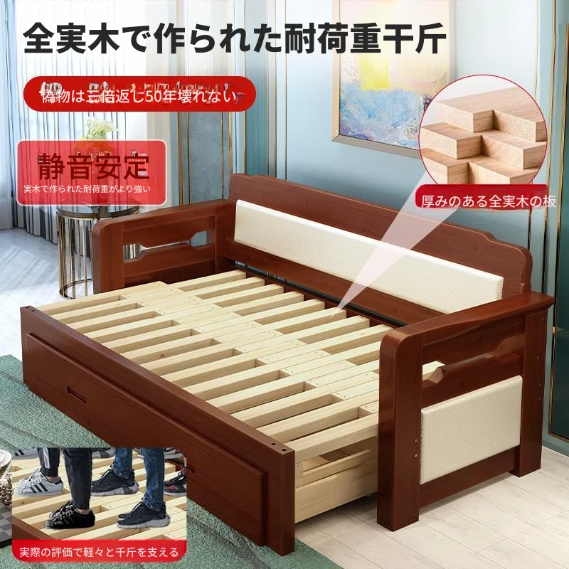 [香港送料無料] 折りたたみ可能な天然木製ソファベッド!小型住宅に最適なダブルサイズ、リビングルームにぴったりな多機能1.5メートル!快適さとスタイルを両立した一品です!
