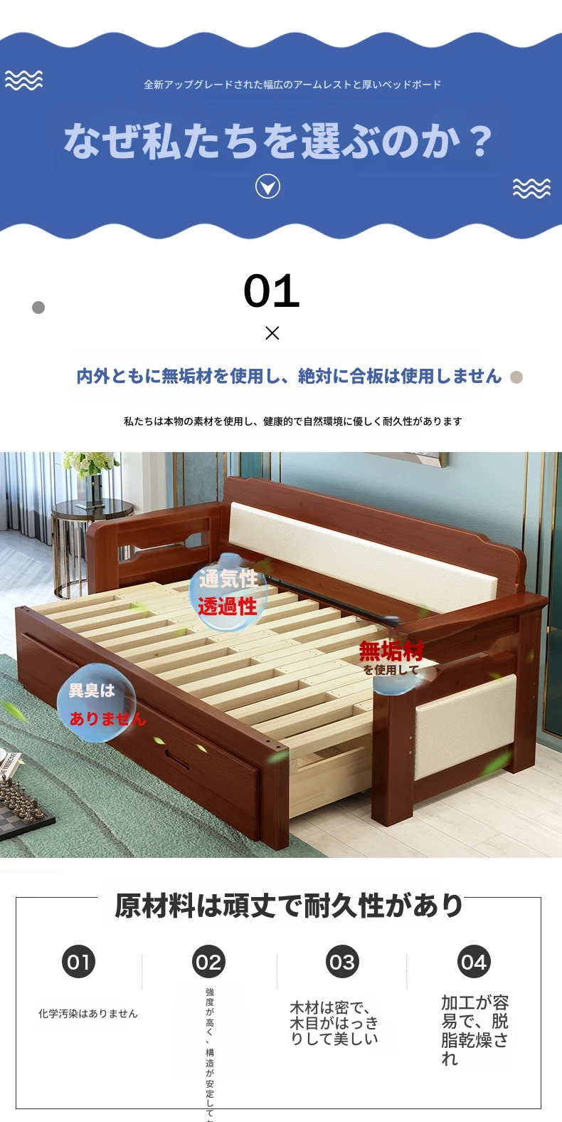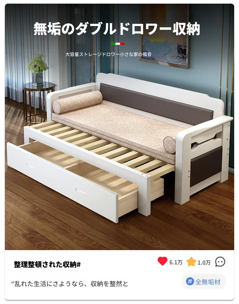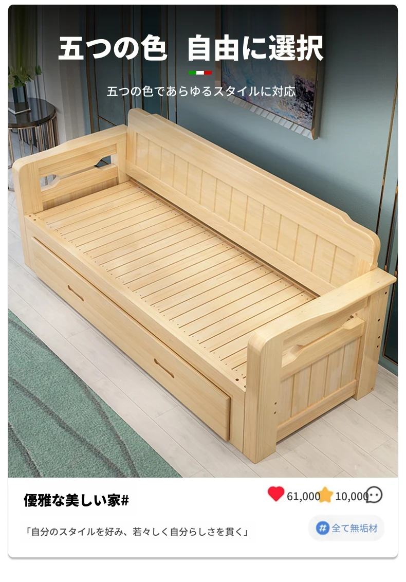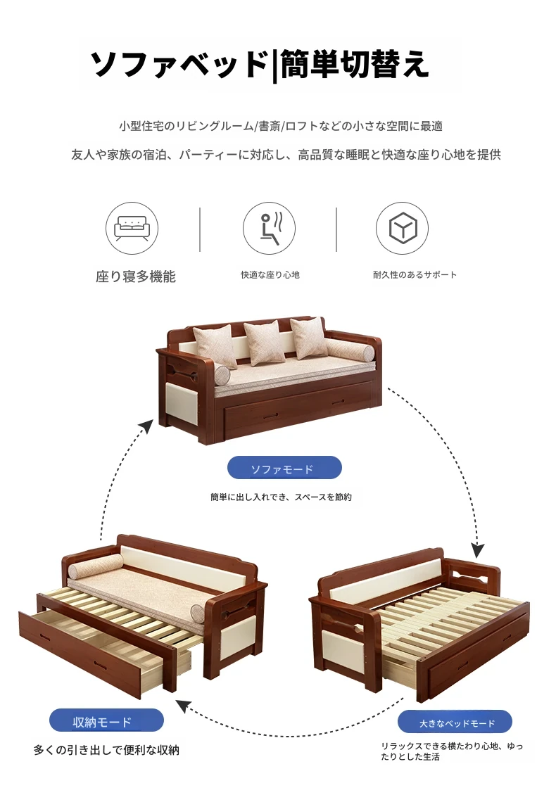 [香港送料無料] 折りたたみ可能な天然木製ソファベッド!小型住宅に最適なダブルサイズ、リビングルームにぴったりな多機能1.5メートル!快適さとスタイルを両立した一品です!