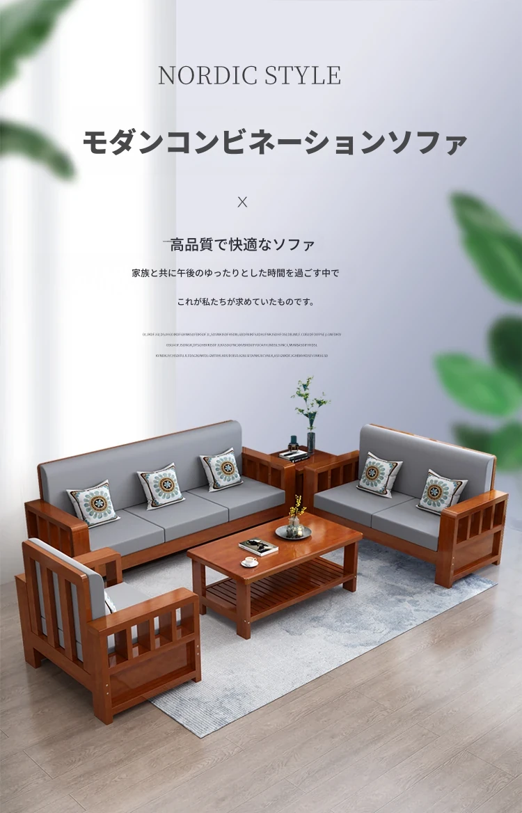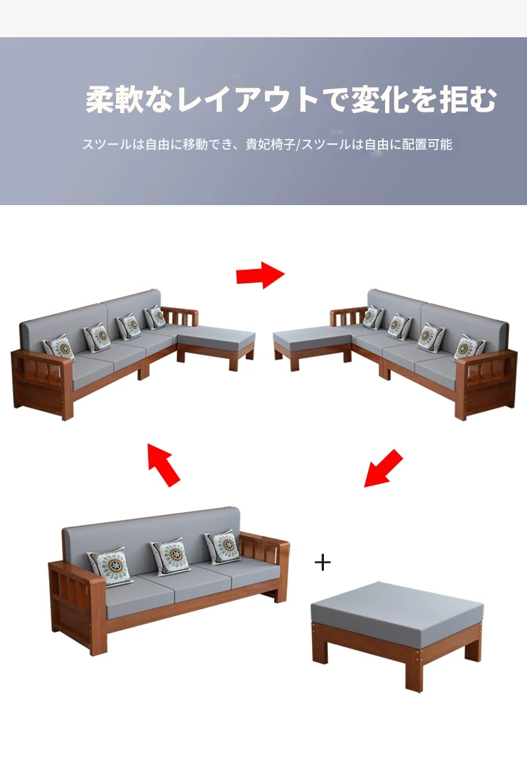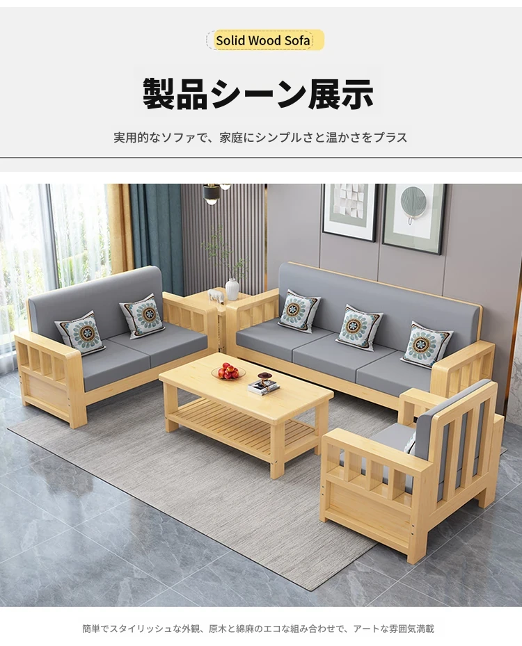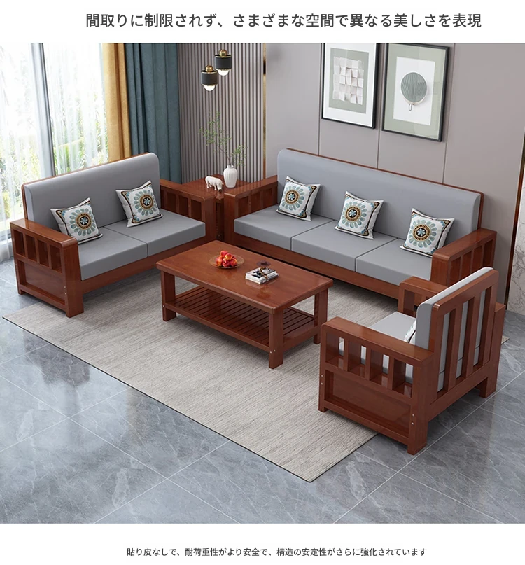 【香港送料無料】中華風の無垢材ソファセット!小型スペースにぴったりのモダンでシンプルなデザイン。冬も夏も快適に過ごせる、リビングに最適なアイテムです!