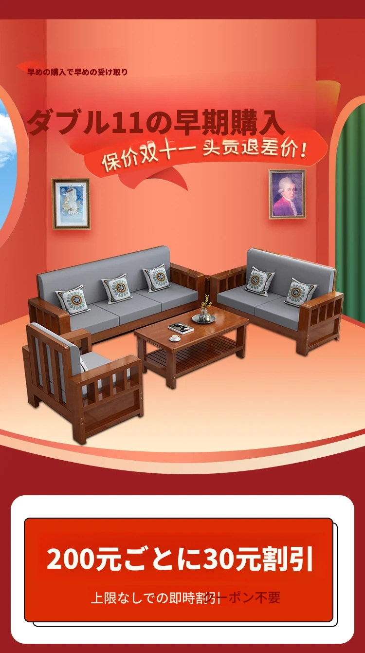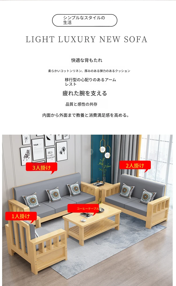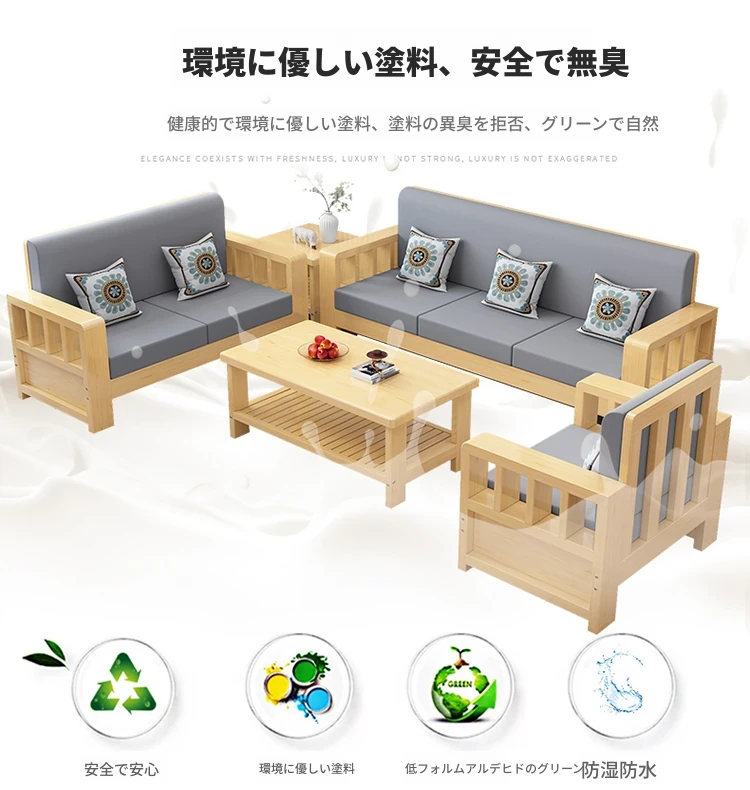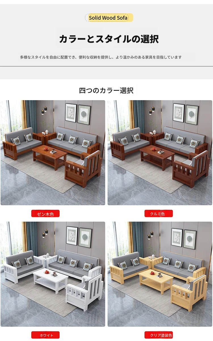 【香港送料無料】中華風の無垢材ソファセット!小型スペースにぴったりのモダンでシンプルなデザイン。冬も夏も快適に過ごせる、リビングに最適なアイテムです!