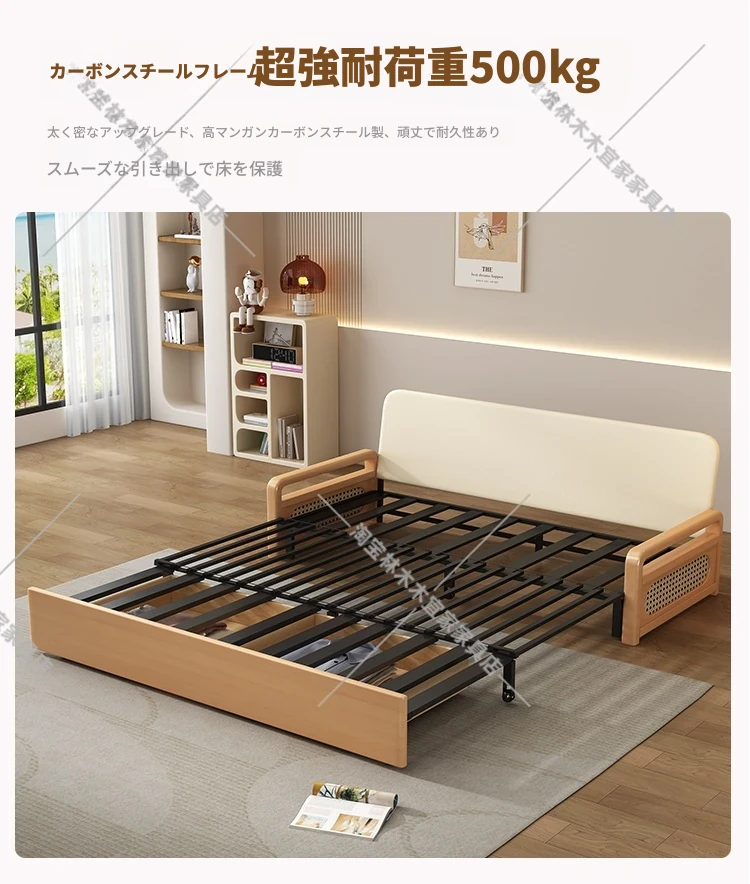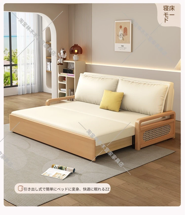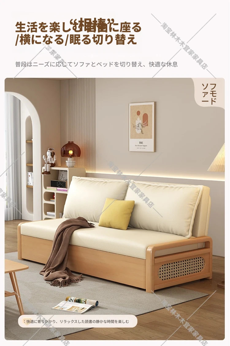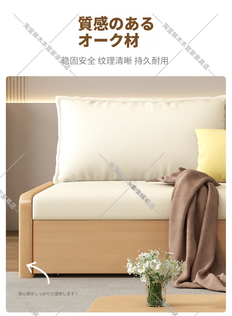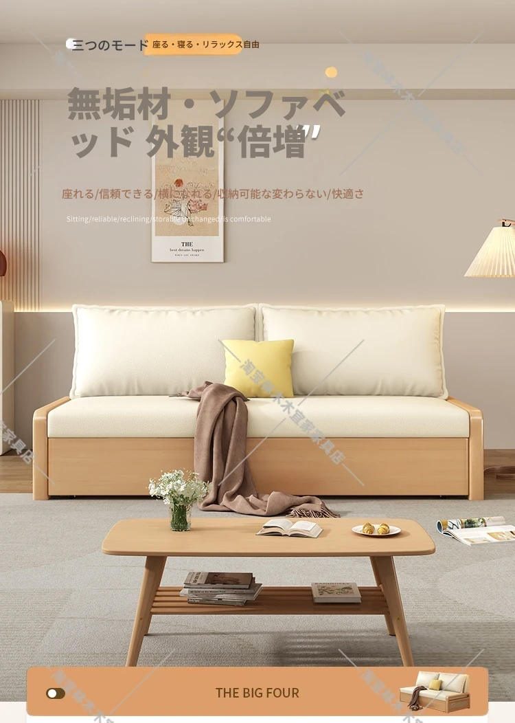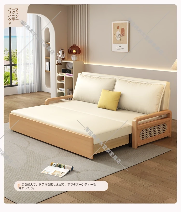[香港送料無料] 2025年新作!高級感あふれる無垢材ソファベッド - 折りたたみ式で小型リビングにも最適!スライド機能付きで便利さ抜群!