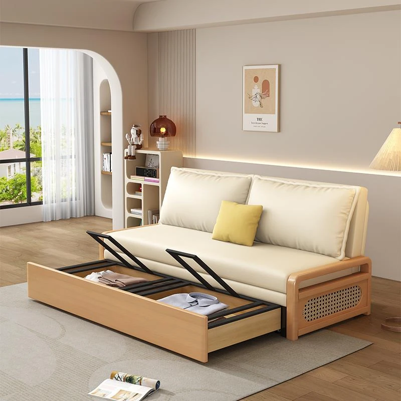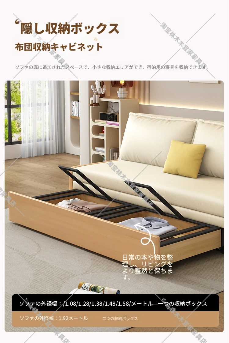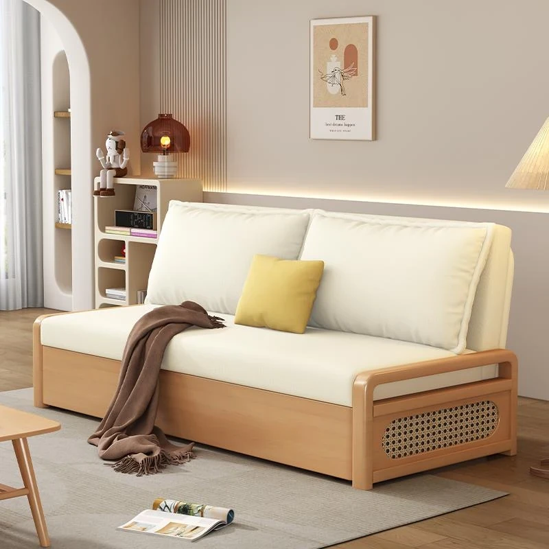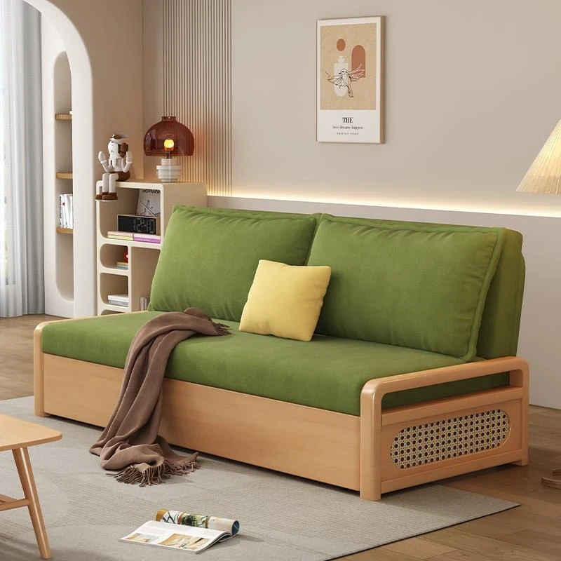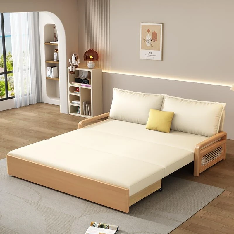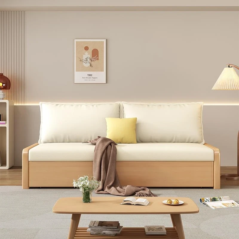 [香港送料無料] 2025年新作!高級感あふれる無垢材ソファベッド - 折りたたみ式で小型リビングにも最適!スライド機能付きで便利さ抜群!