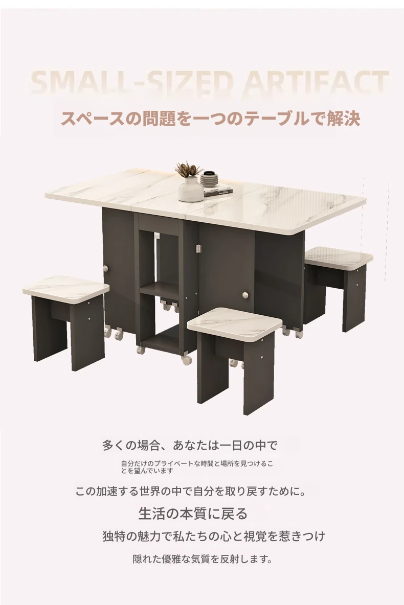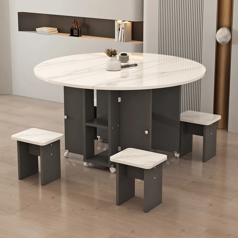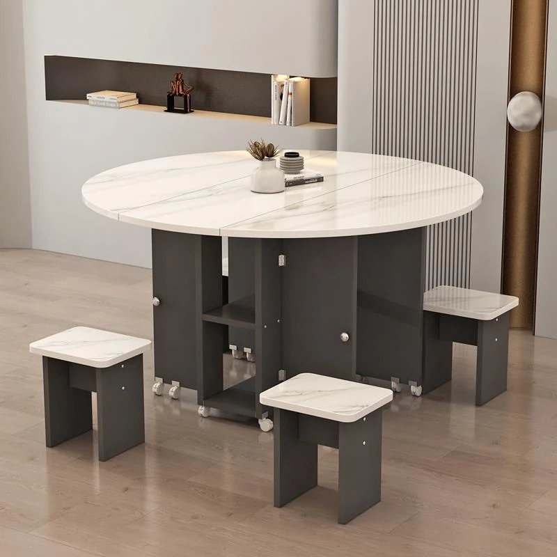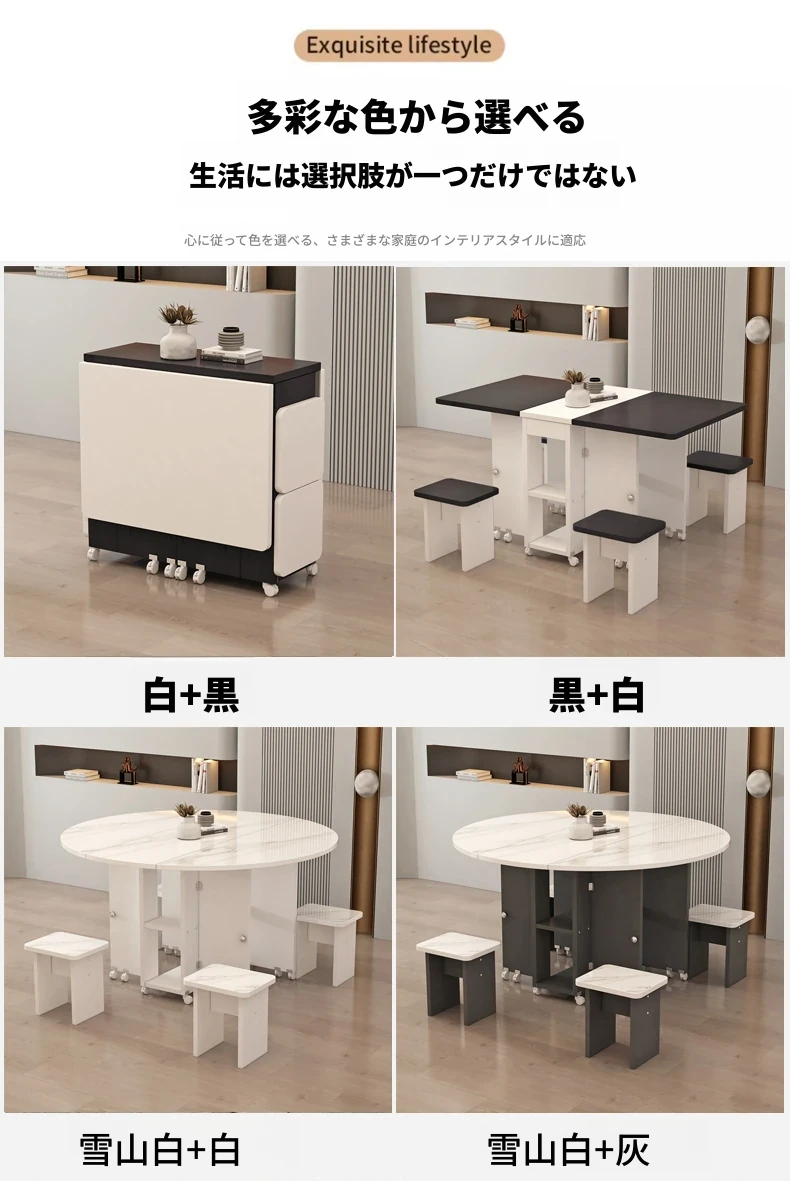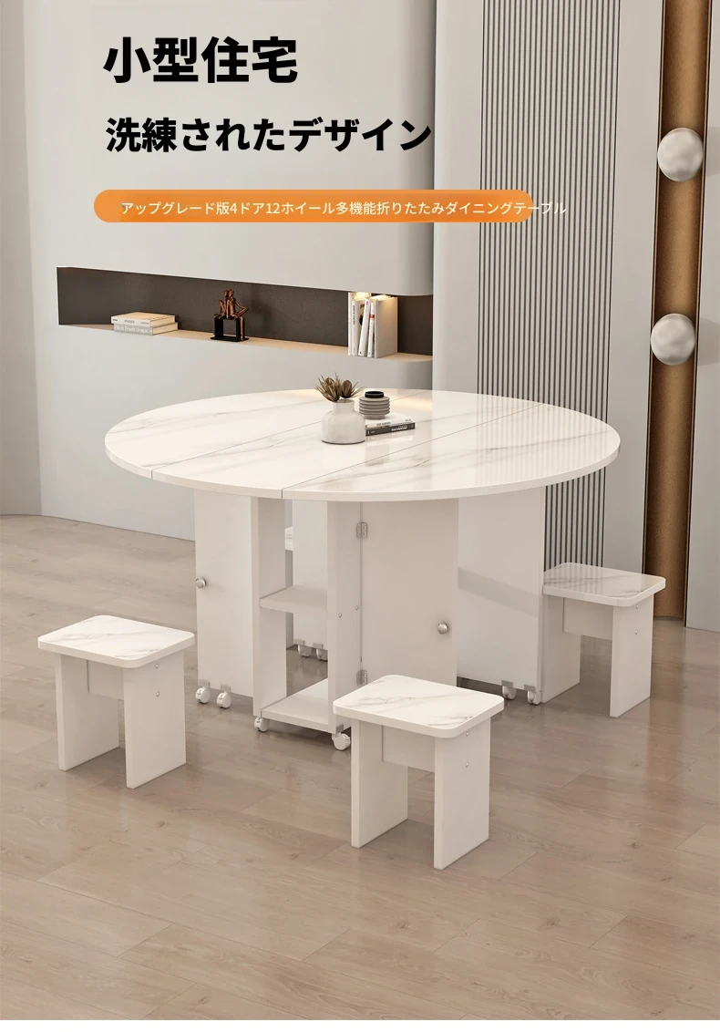[香港送料無料] 家庭用折りたたみテーブル&チェアセット 移動可能・伸縮式 長方形・丸型 小型住宅に最適な多機能デザイン!