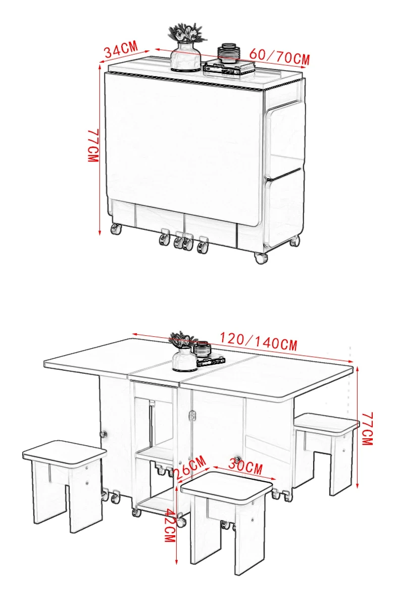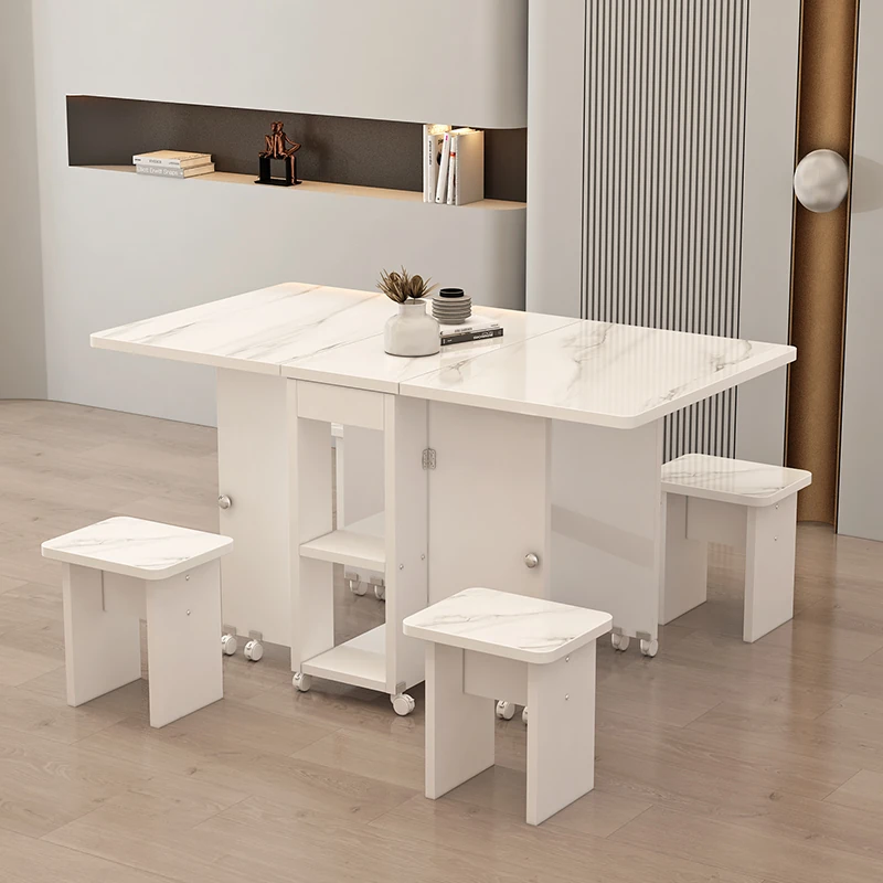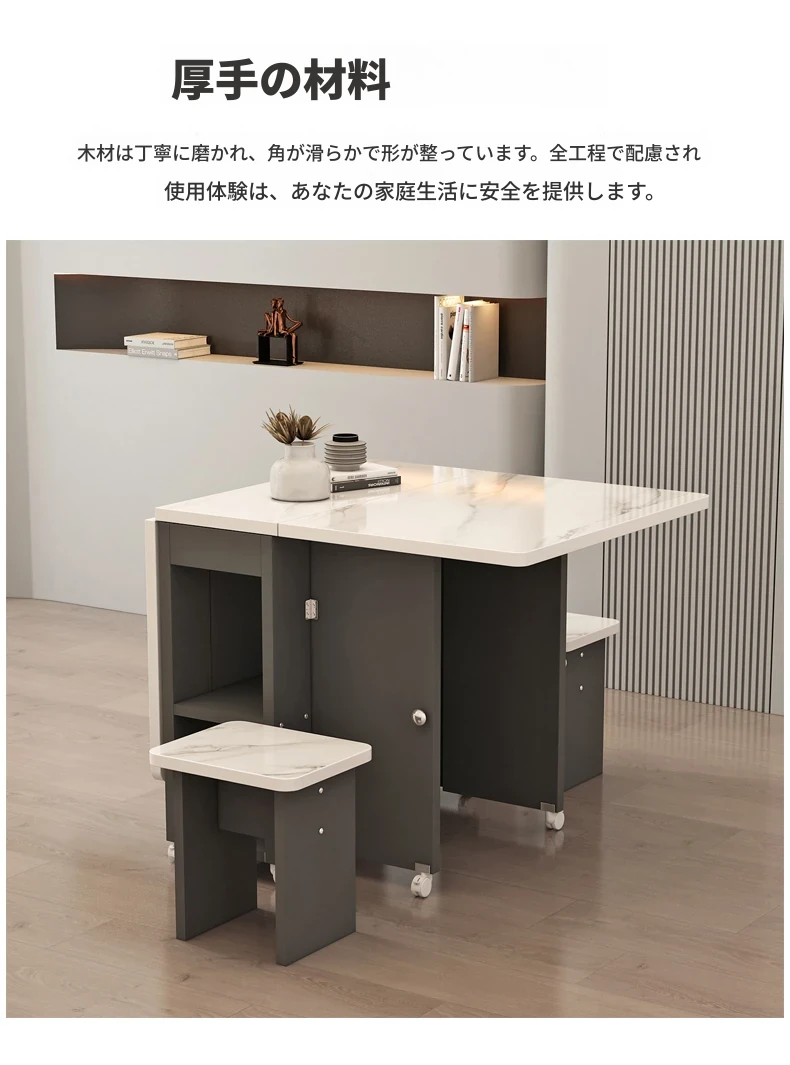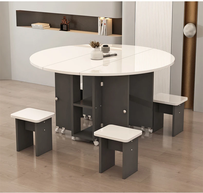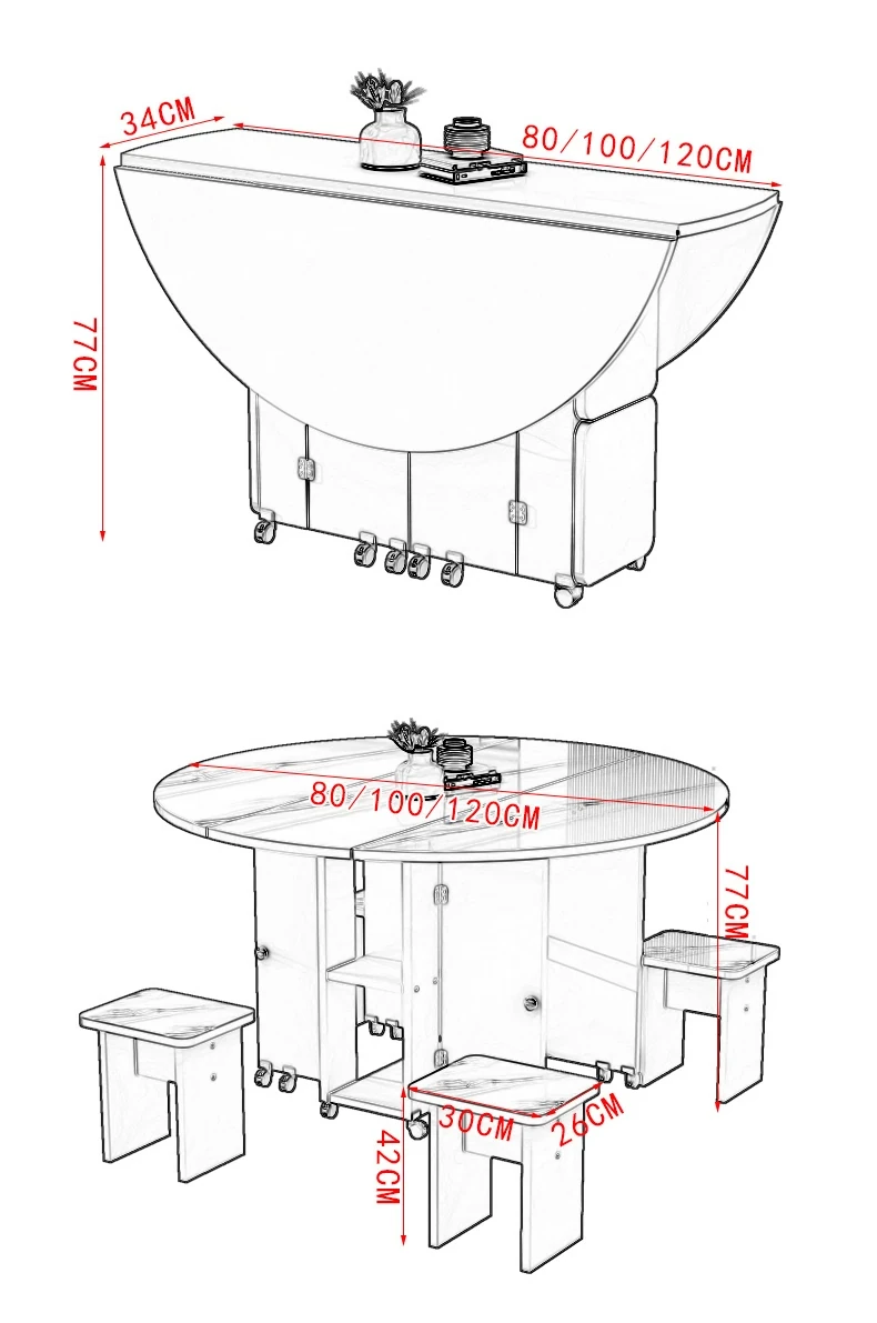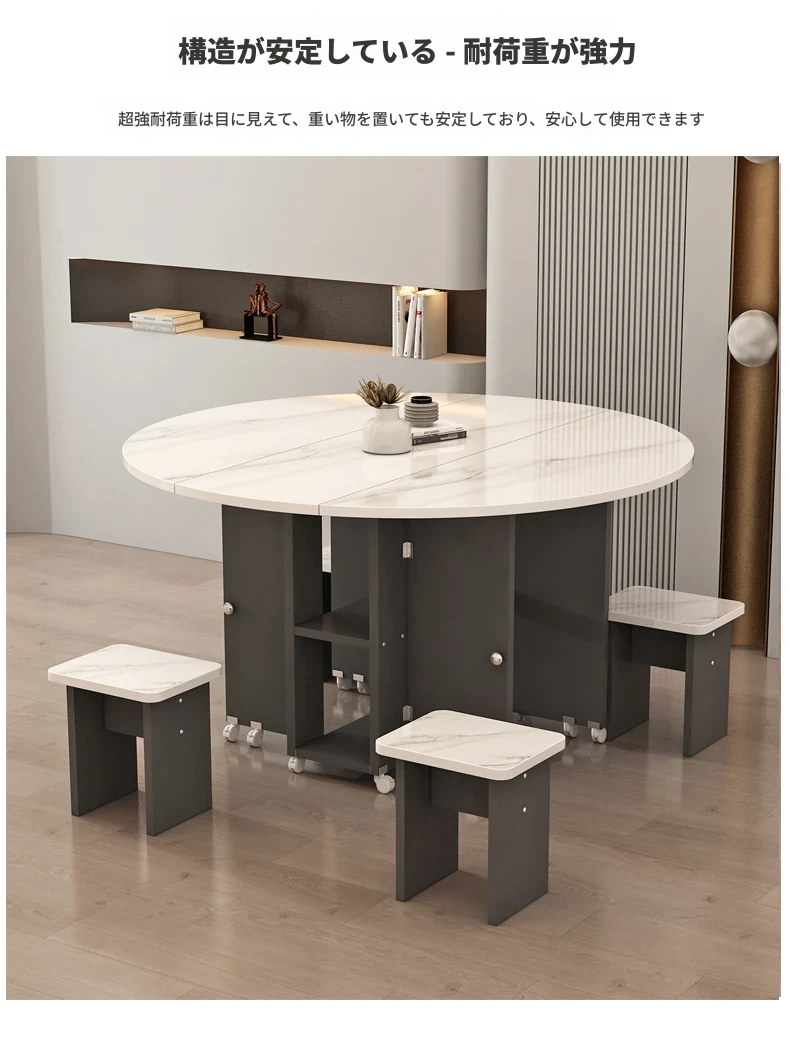 [香港送料無料] 家庭用折りたたみテーブル&チェアセット 移動可能・伸縮式 長方形・丸型 小型住宅に最適な多機能デザイン!
