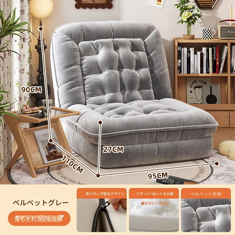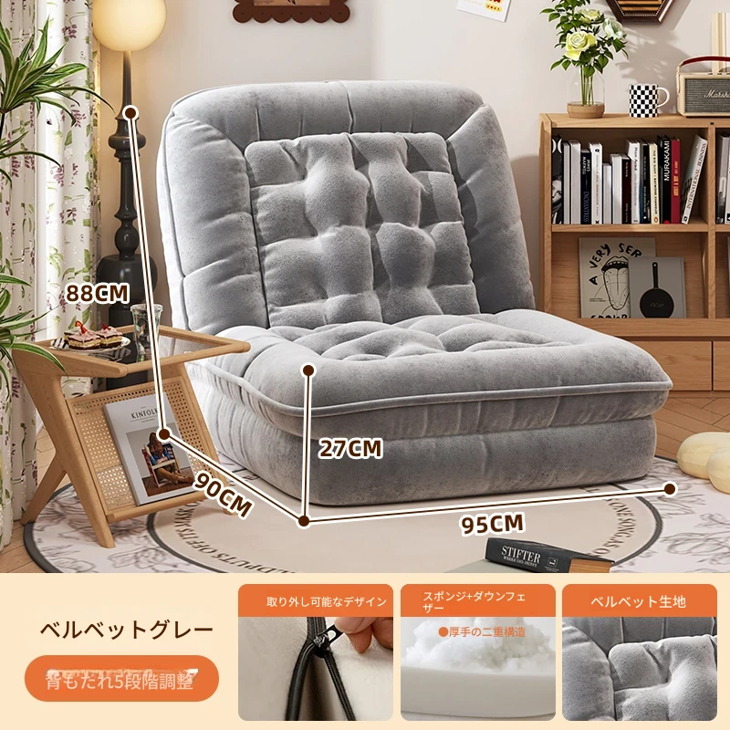 【展開200CM*95CM】肌触りの良いスエード生地-グレー【クッション+背もたれ付き】